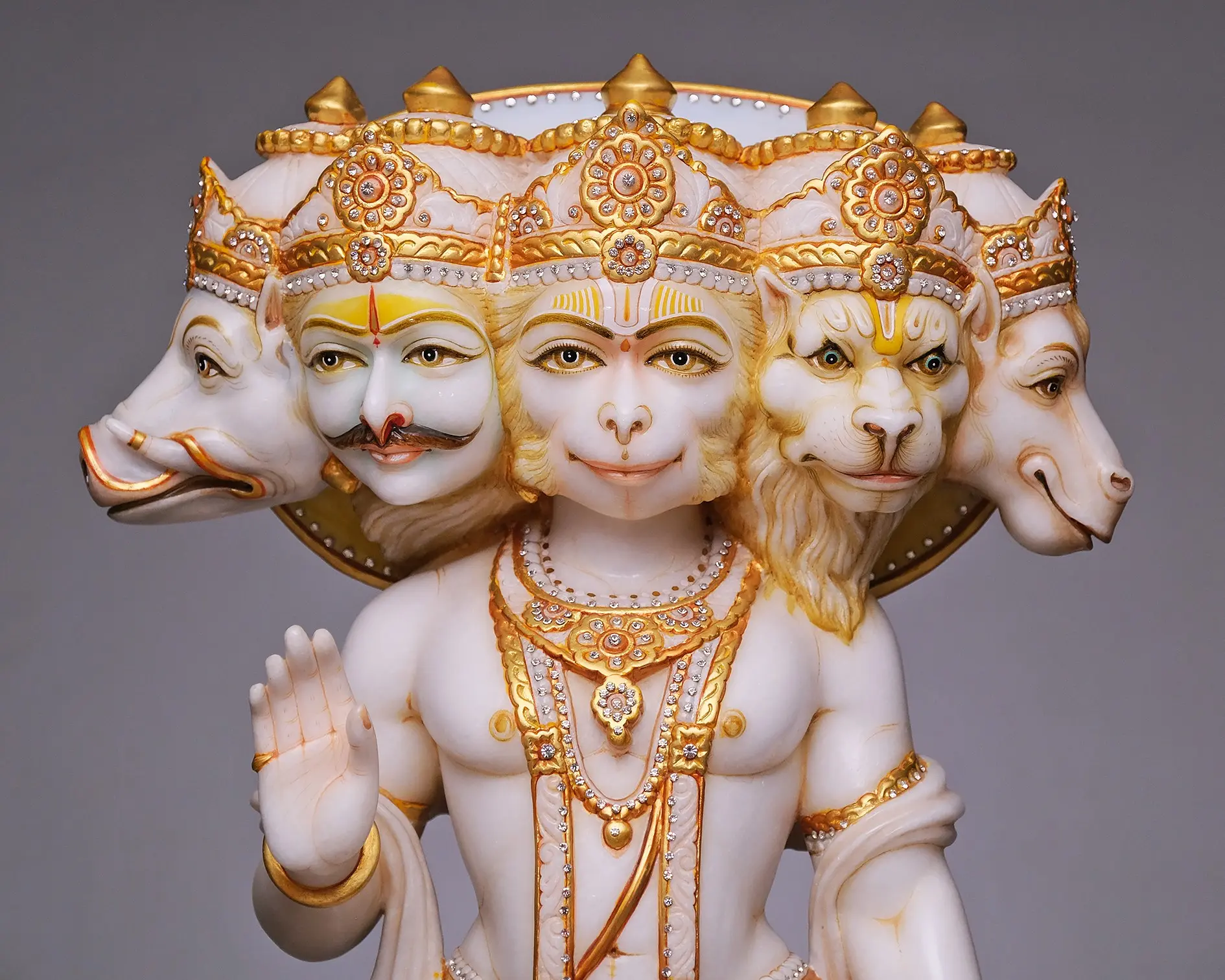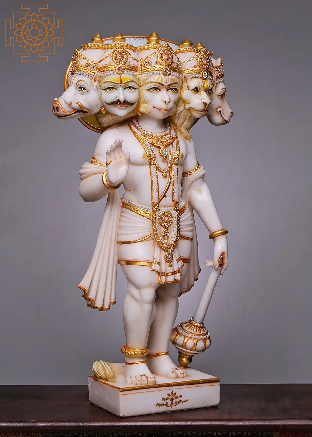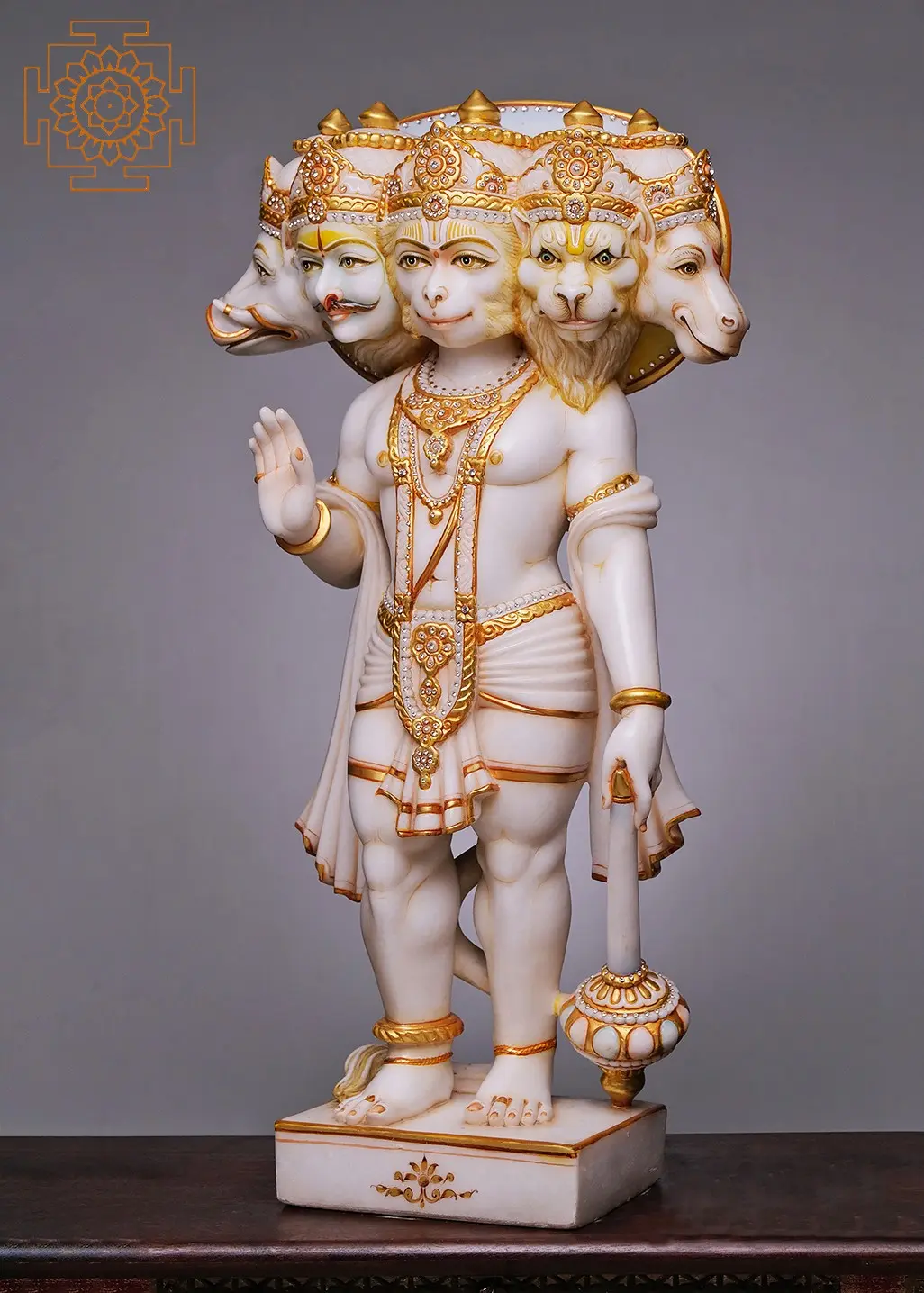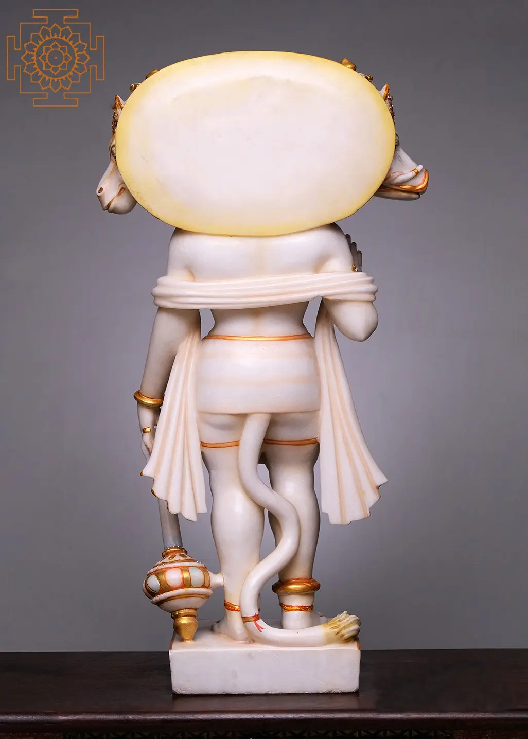 36" Large Panchamukhi Hanuman White Marble Statue for Home | Handmade
