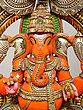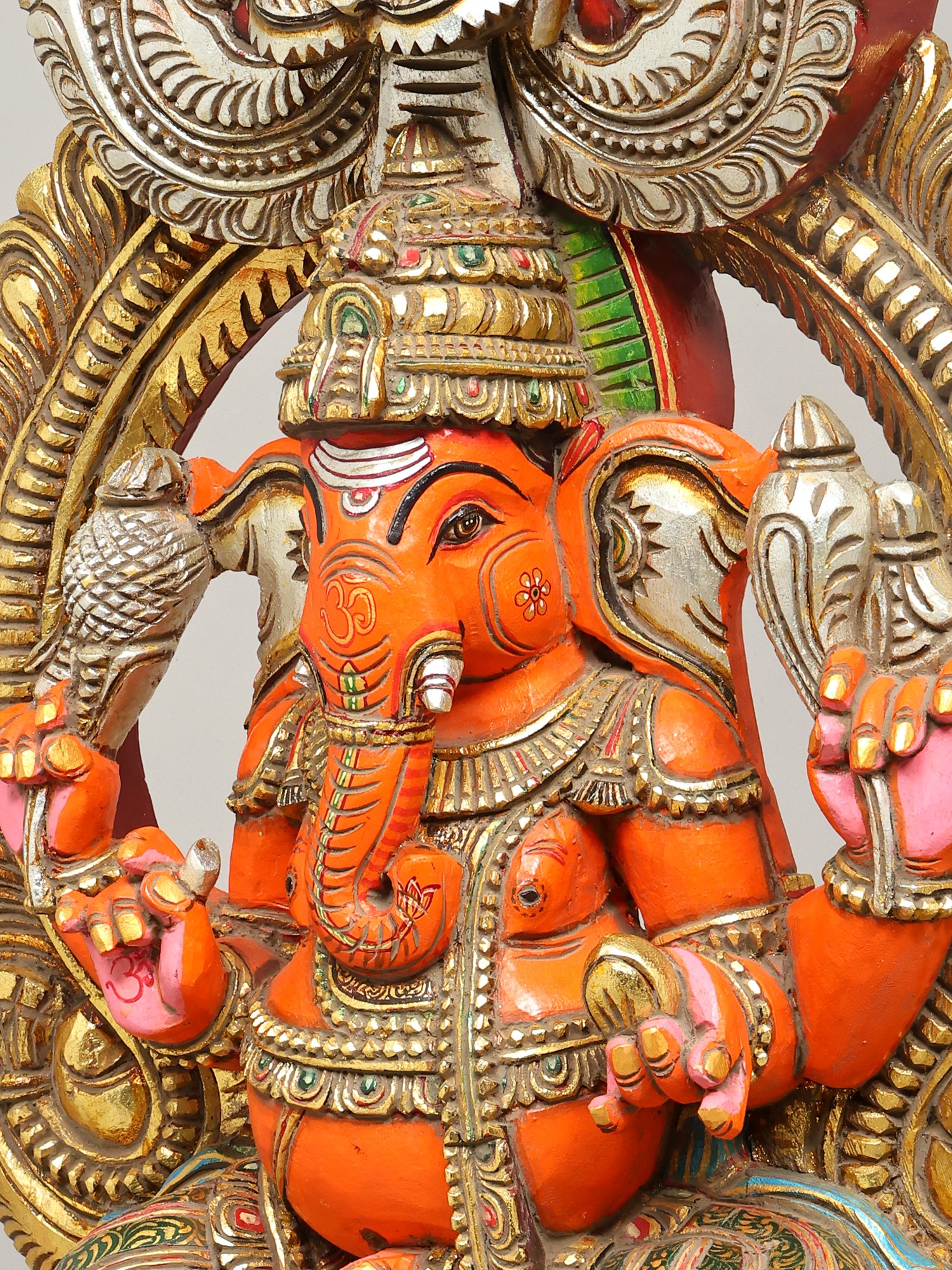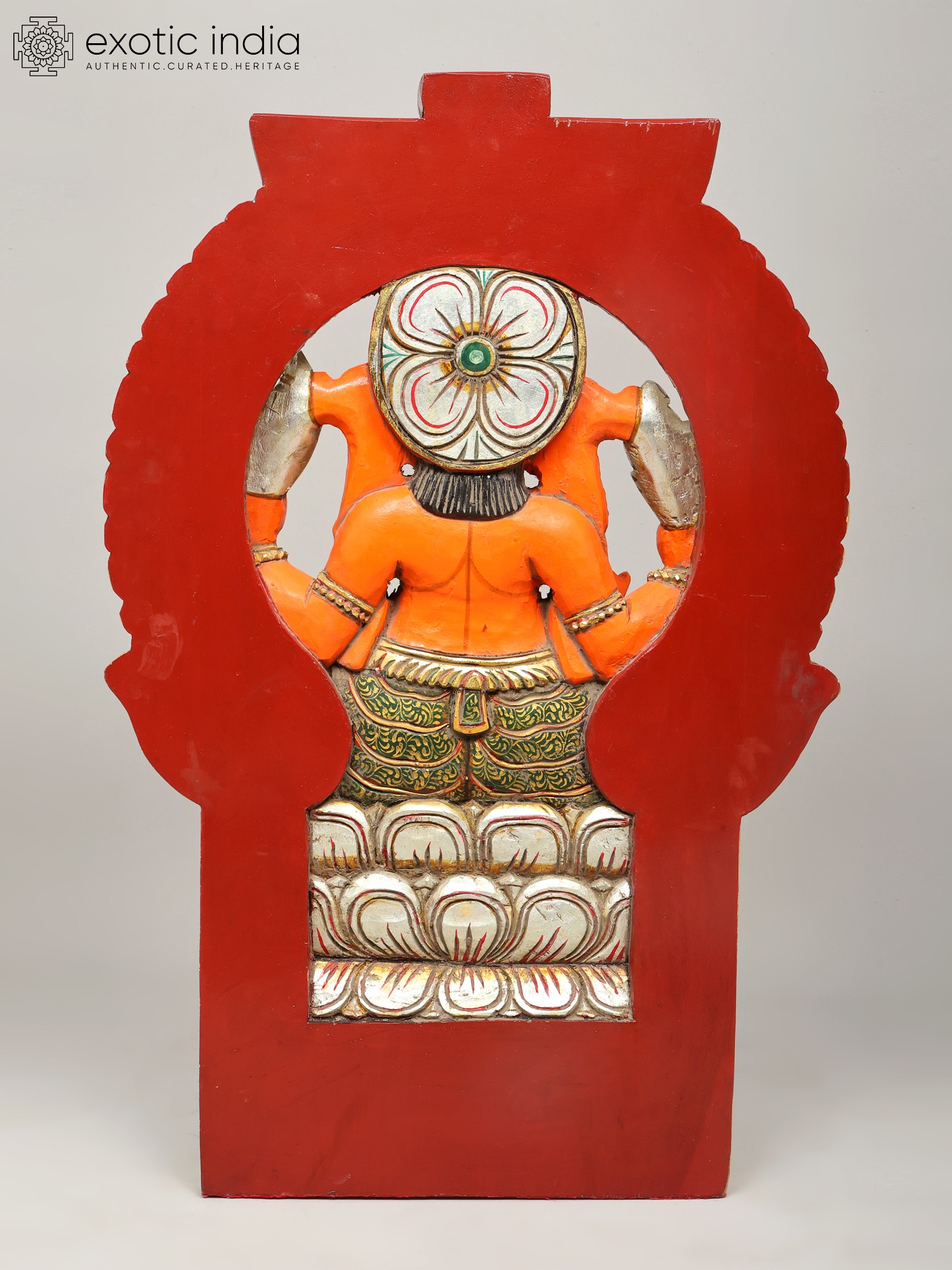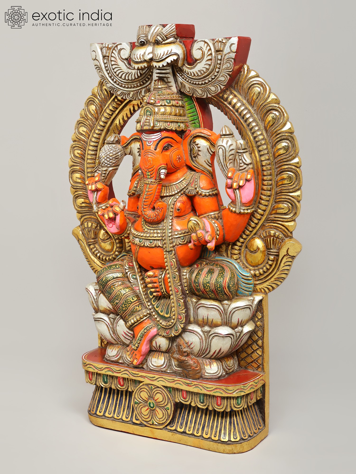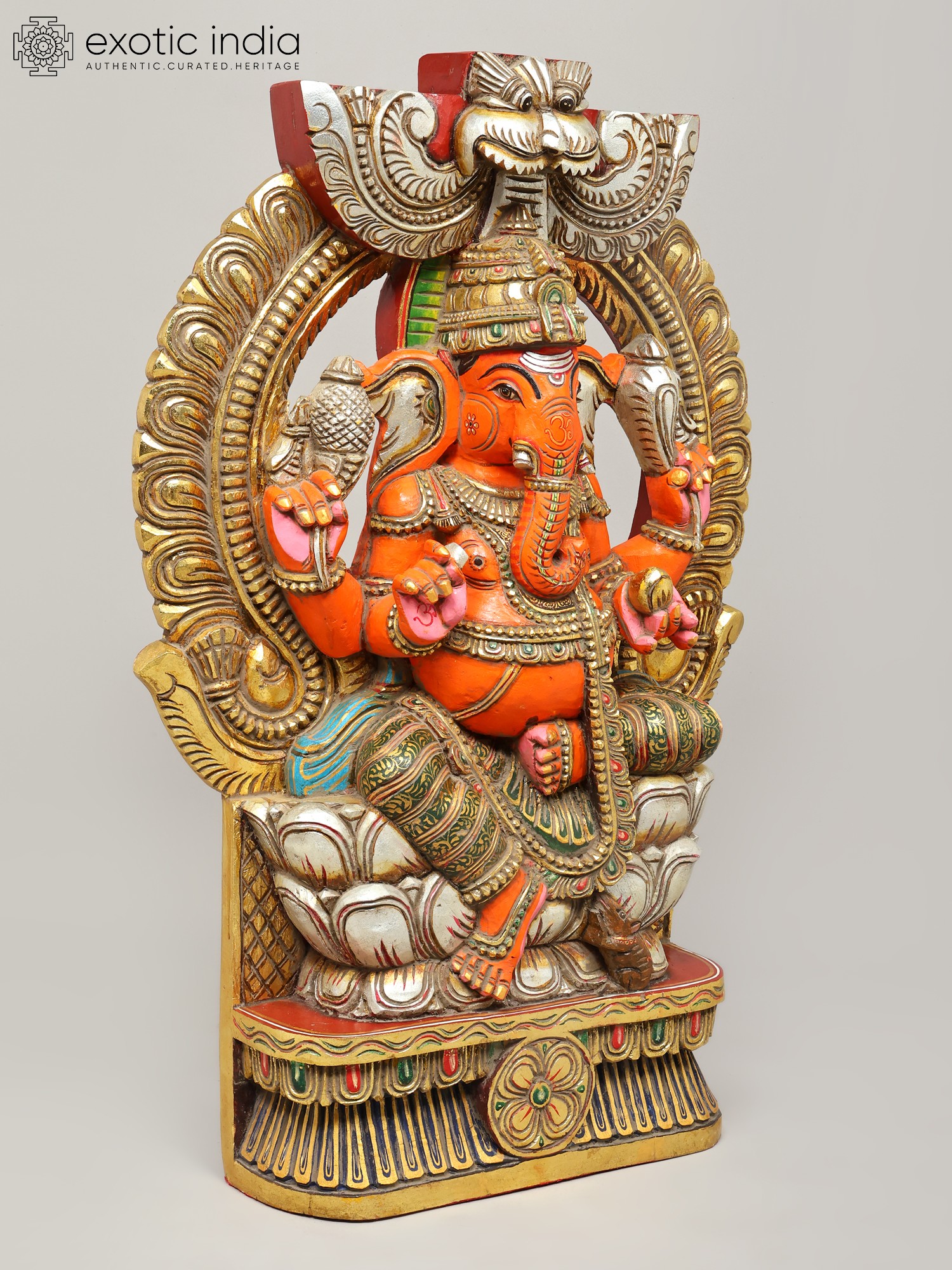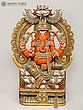 36" Large Sindoori Lord Ganesha Seated on Kirtimukha Throne | Wood Carving