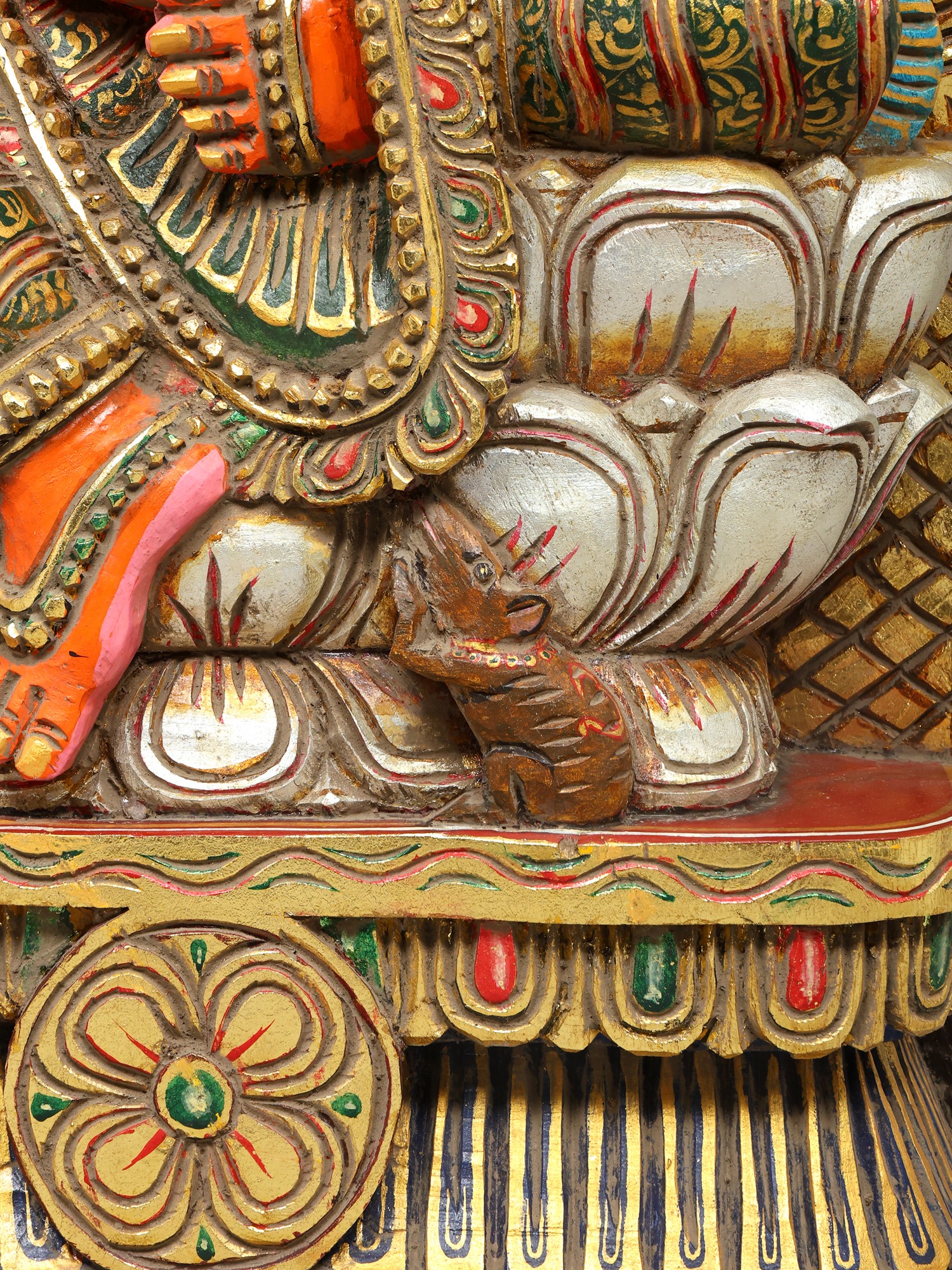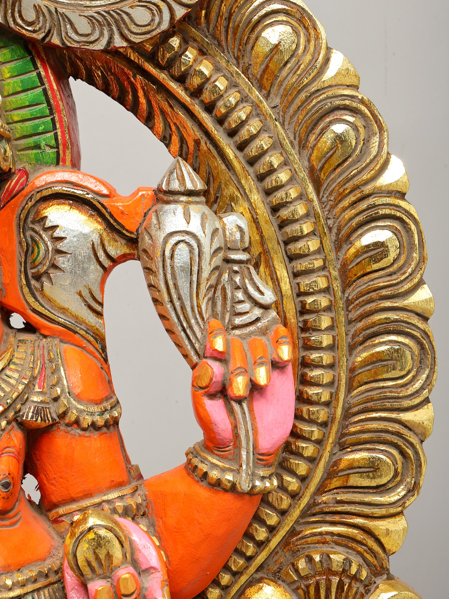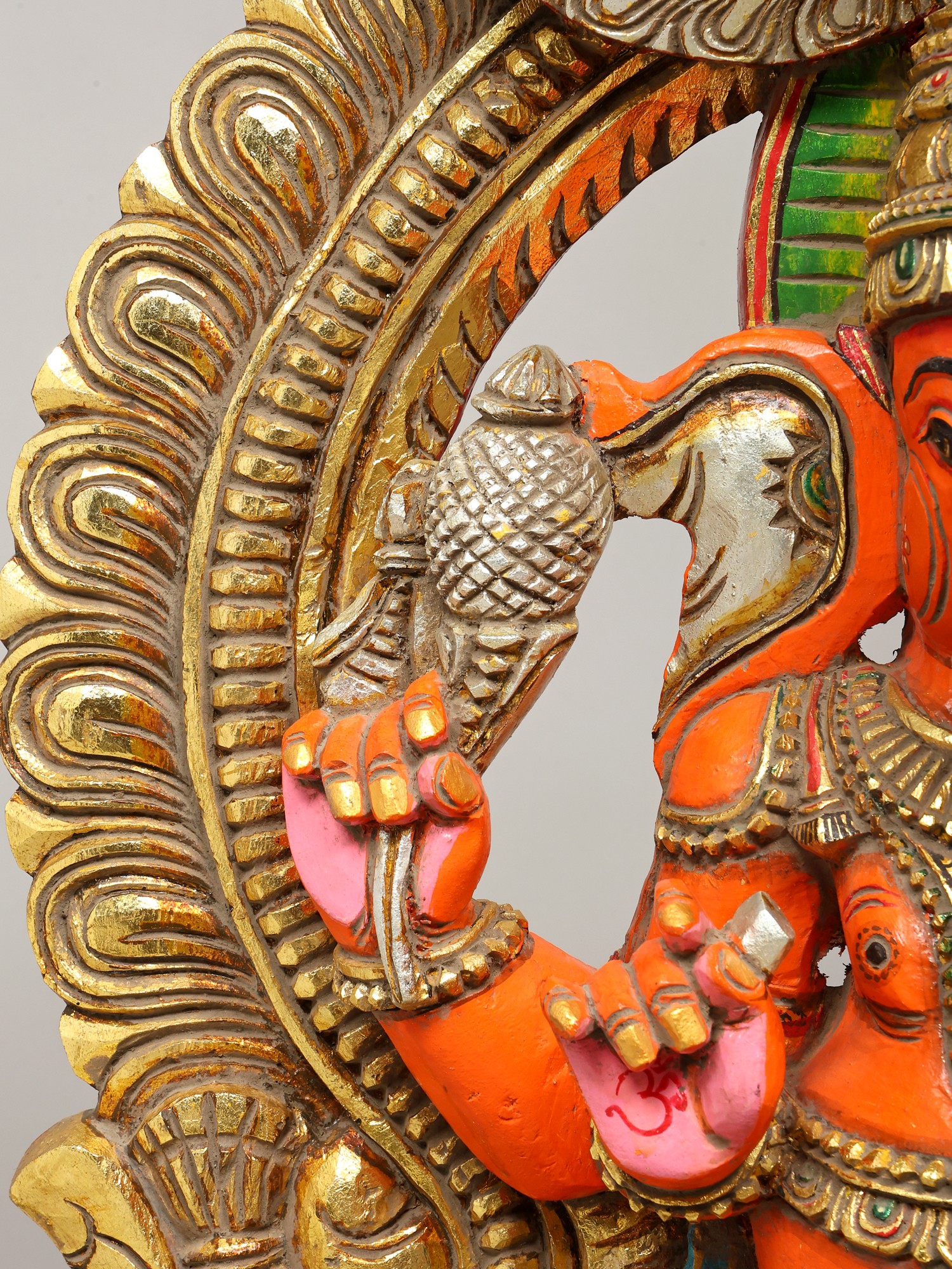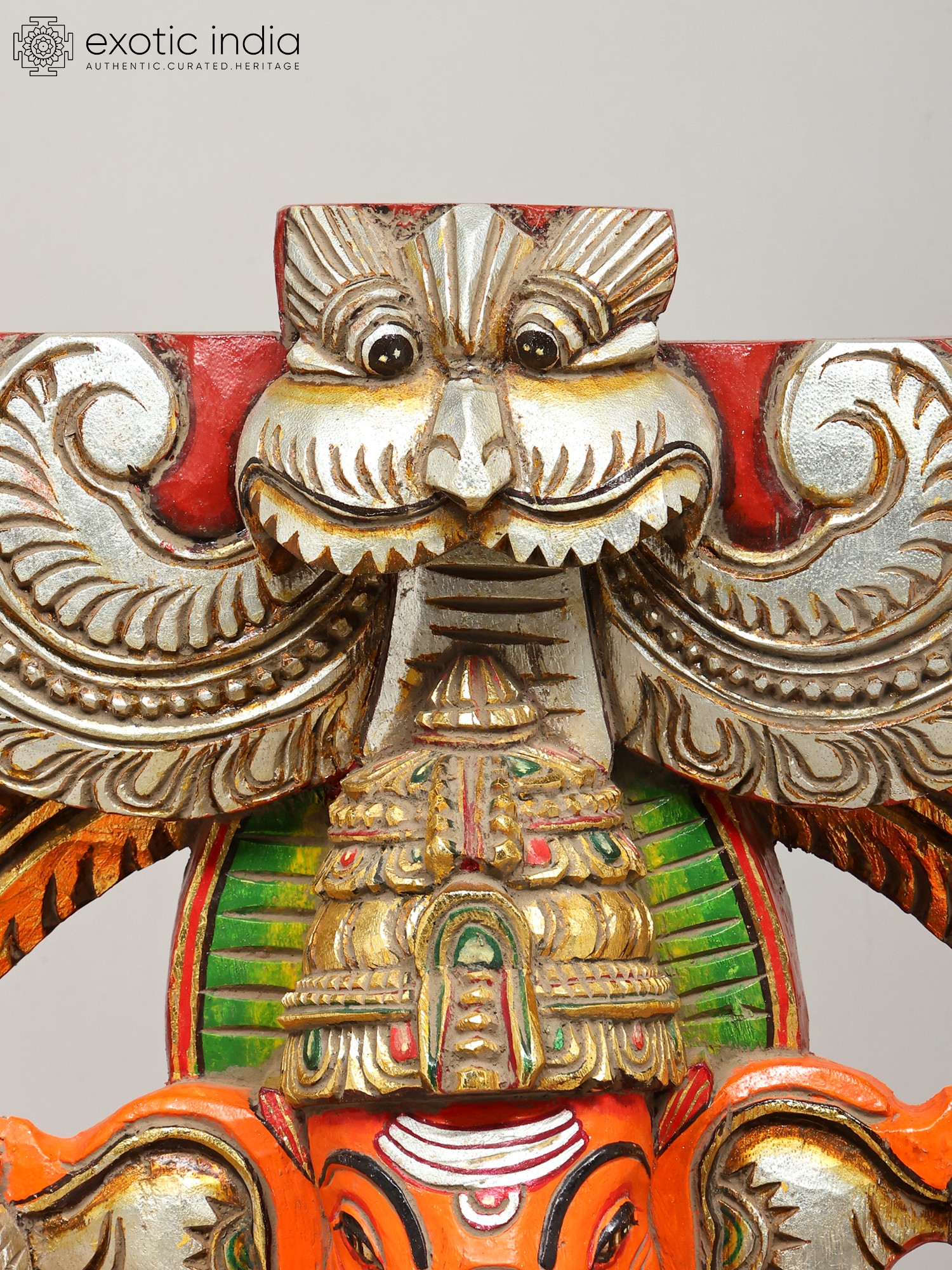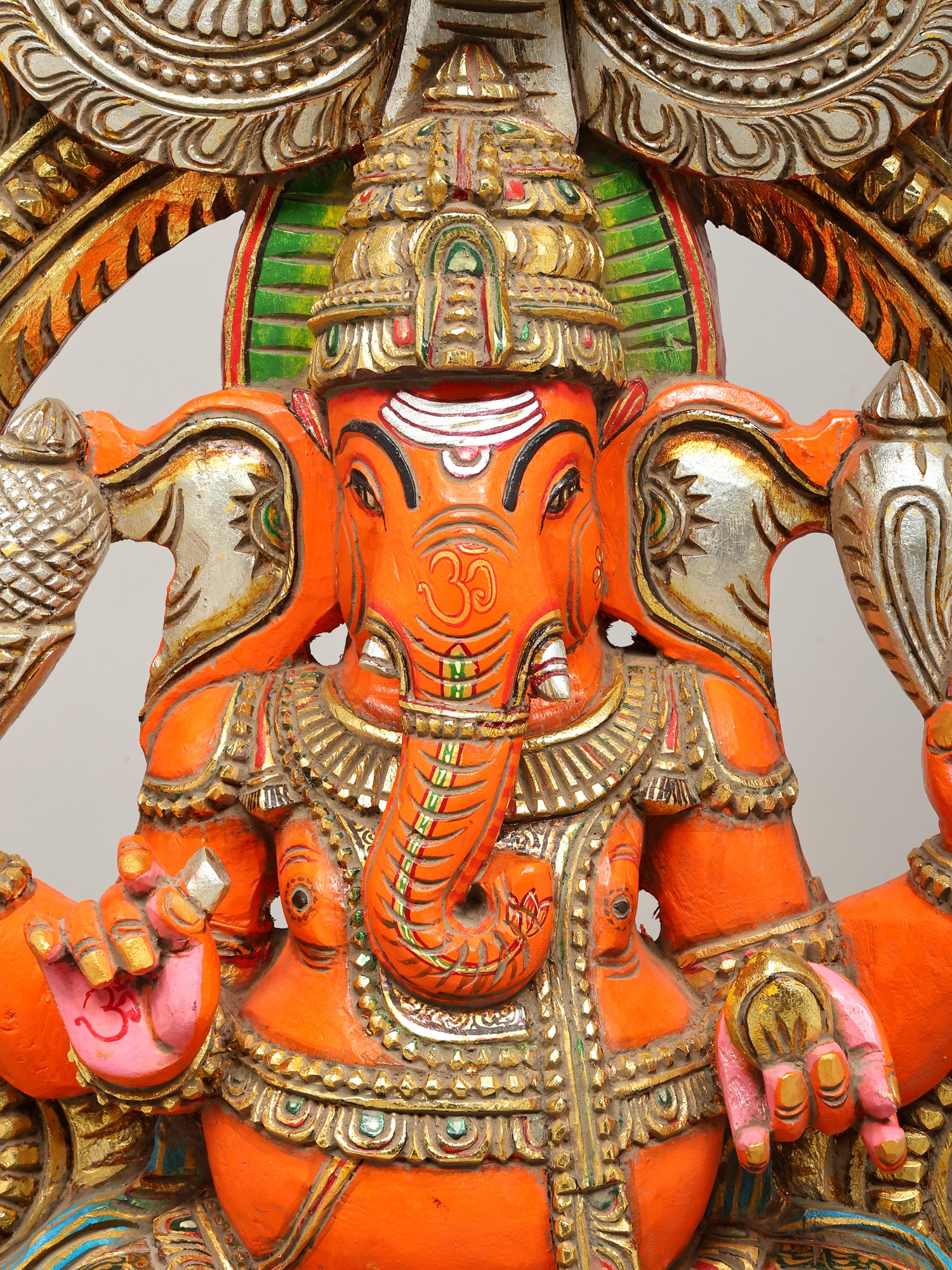 36" Large Sindoori Lord Ganesha Seated on Kirtimukha Throne | Wood Carving