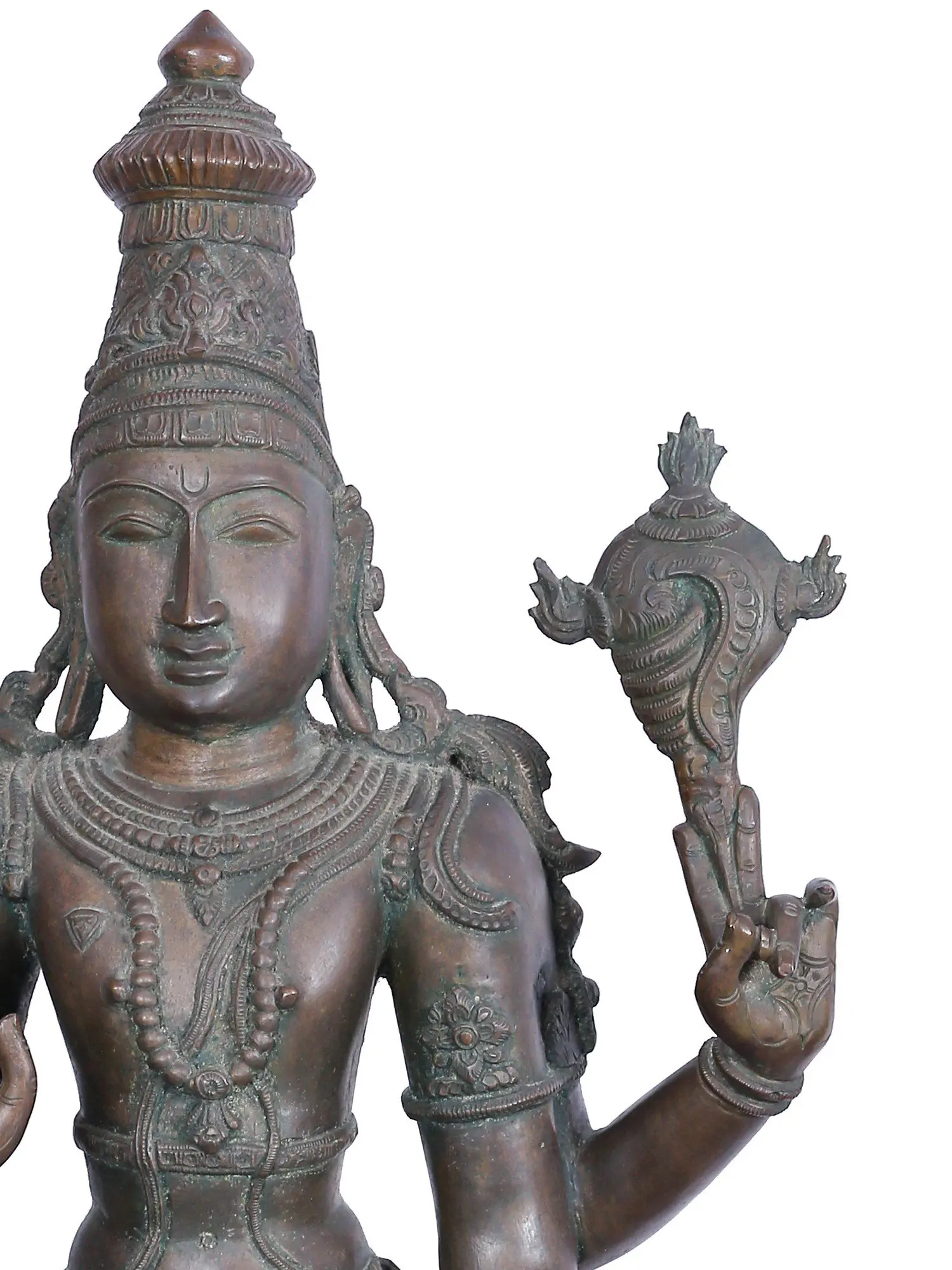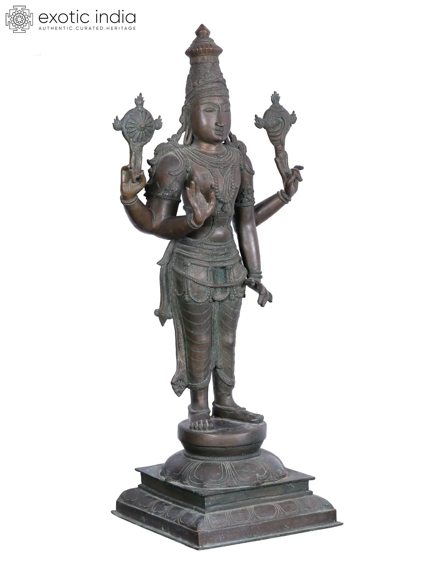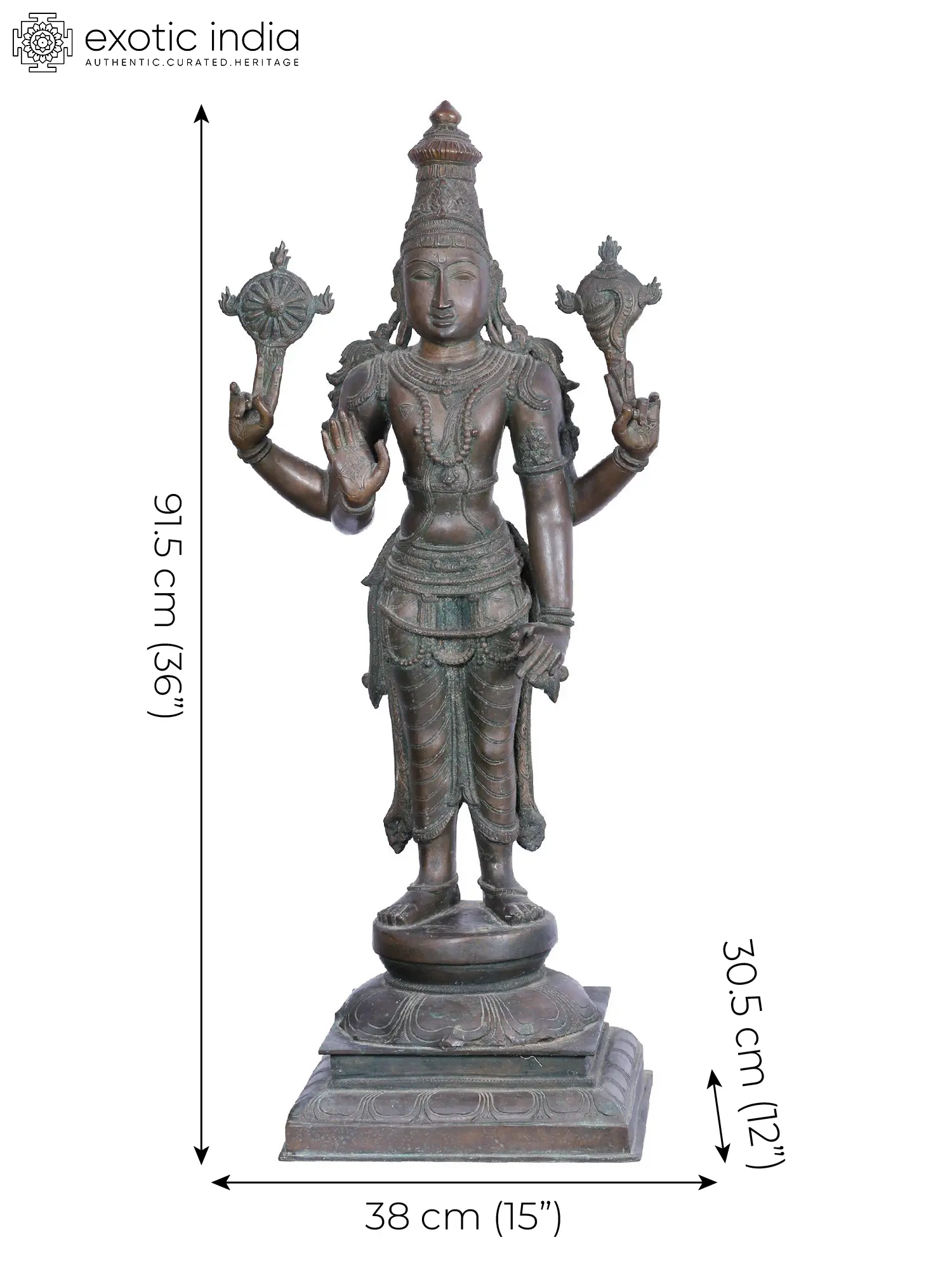 36'' Large Standing Lord Perumal Sculpture (Vishnu) | Madhuchista Vidhana (Lost-Wax) | Panchaloha Bronze from Swamimalai