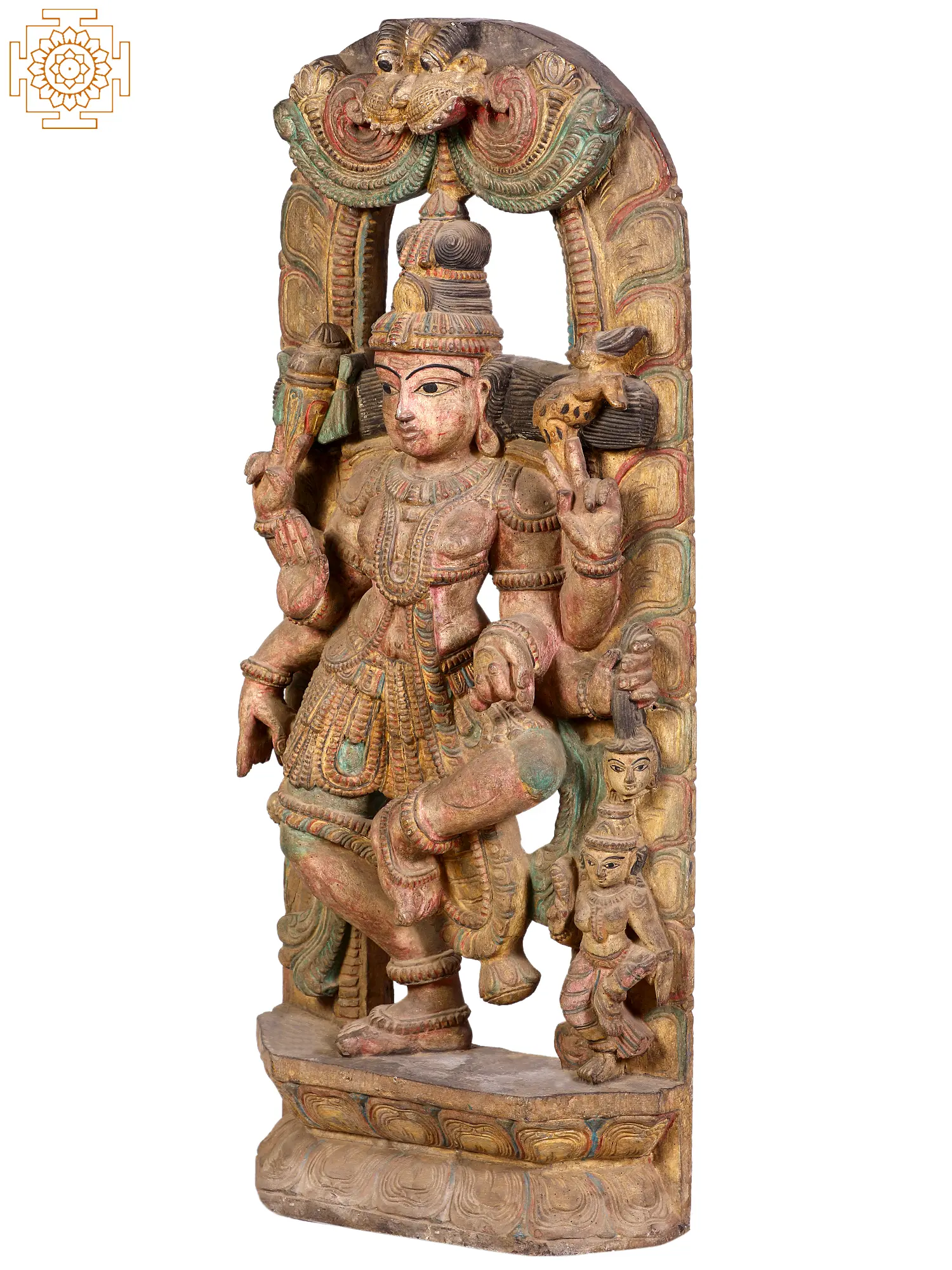 36" Large Wooden Dancing Lord Shiva with Kirtimukha