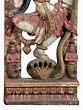 This magnificent wooden carving captures a pivotal moment from Hindu mythology, depicting Lord Krishna's triumphant dance upon the serpent Kaliya. Standing tall at 36 inches, this artwork is a testament to the skill of traditional wood carving, radiating an aura of divinity and power. The intricate details, from the playful expression on Krishna's face to the menacing coils of the serpent, tell a story of courage and divine intervention. The legend of Krishna subduing Kaliya, the multi-headed serpent king who poisoned the waters of the Yamuna River, is a beloved tale illustrating Krishna's divine authority and his role as a protector. Krishna, as the embodiment of joy and divine playfulness, is shown in a dynamic dance pose, symbolizing his victory over adversity and the restoration of peace and purity. The vibrant, yet subtly aged, painted finish enhances the visual appeal, bringing to life the rich cultural heritage from which this piece originates. The base of the carving is adorned with symbolic motifs, further enriching its spiritual and artistic significance.
