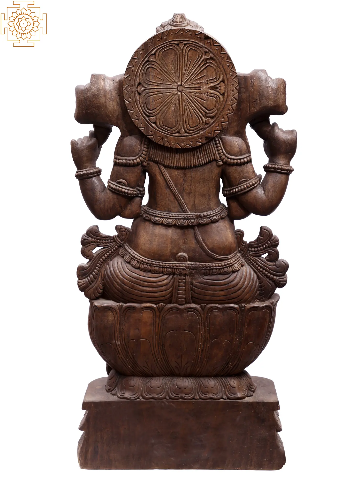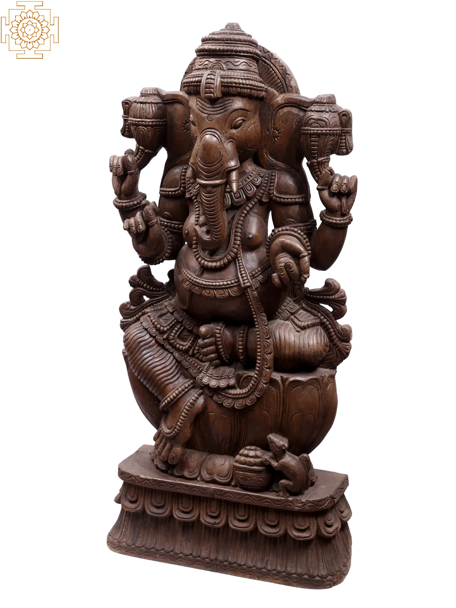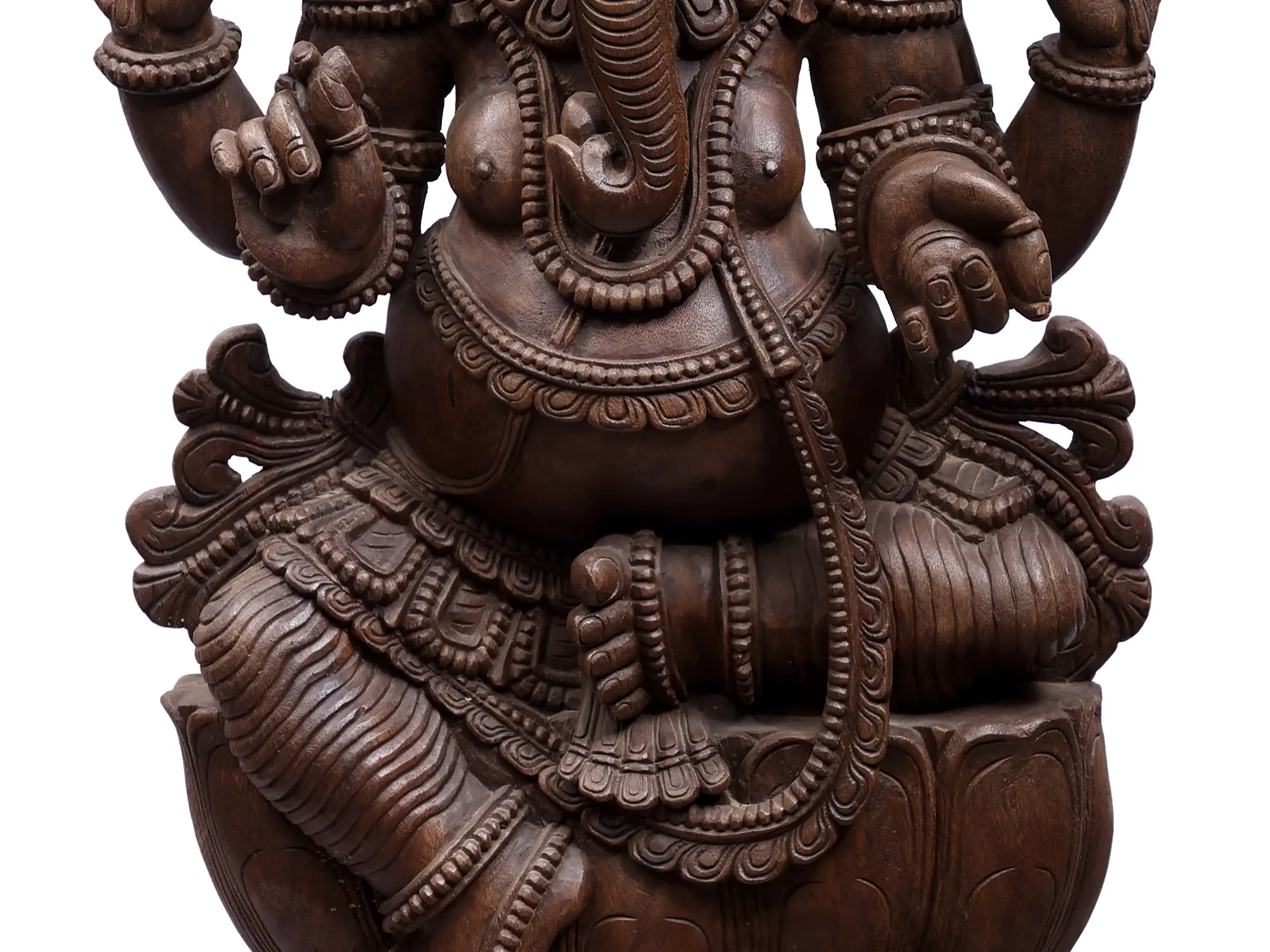 The ornamentation of Ganesha in this wooden artwork presents the brilliance of the artists, who with precision have created exquisite jewelry and attire of the Lord. With a steady gaze, Tripunda on his forehead, Ganesha emanates a sacred aura, filling the atmosphere with his auspicious energies.