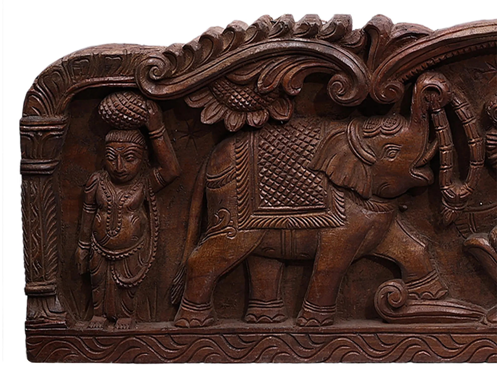 With its spiritual significance and artistic beauty, this wooden panel serves as a powerful focal point in any space, inviting blessings of wisdom, abundance, and protection into your home or sacred area. Embrace the divine presence of Lord Ganesha and the auspicious energy of the elephants with this exquisite wooden panel, enriching your surroundings with grace and harmony.