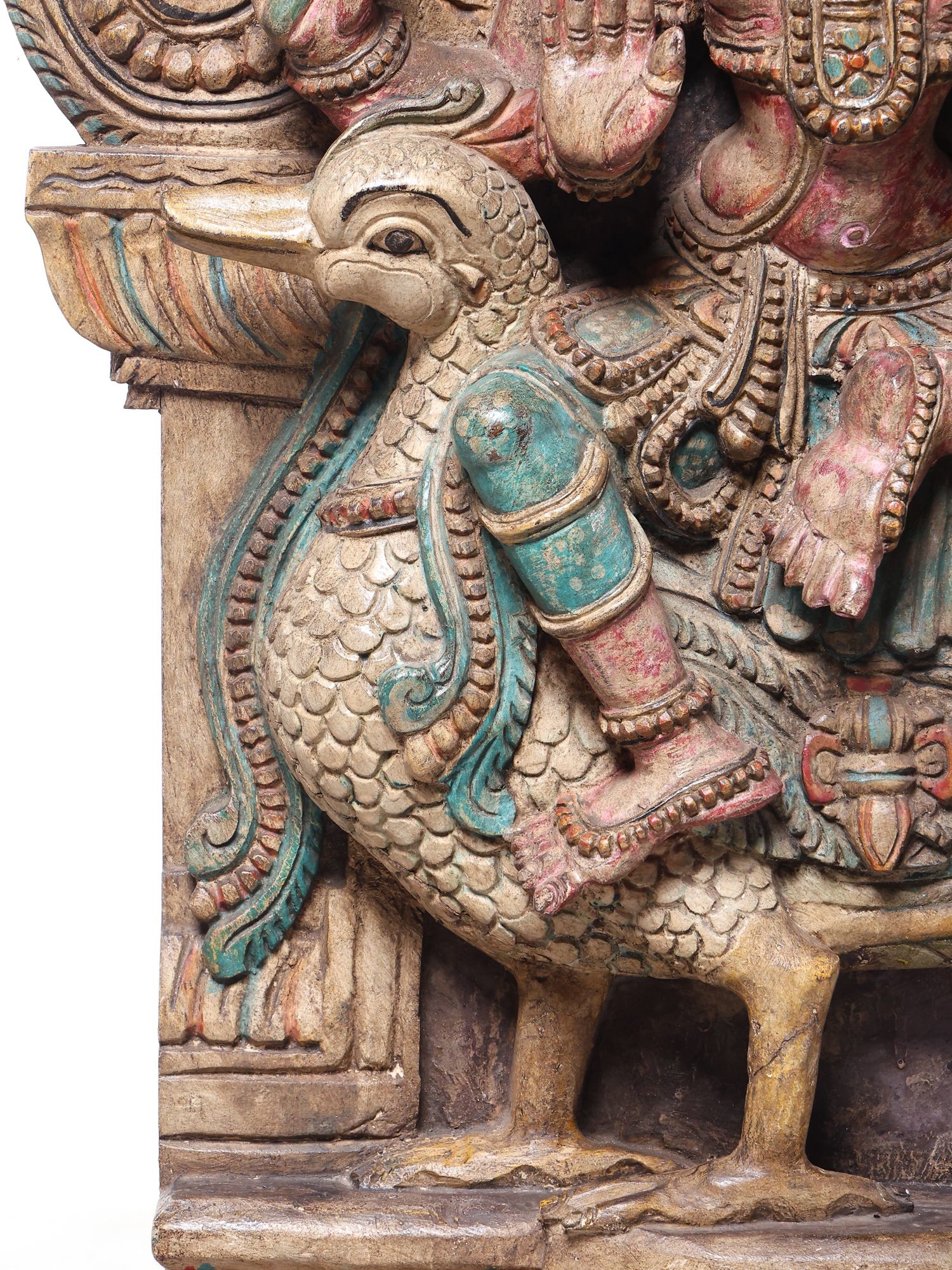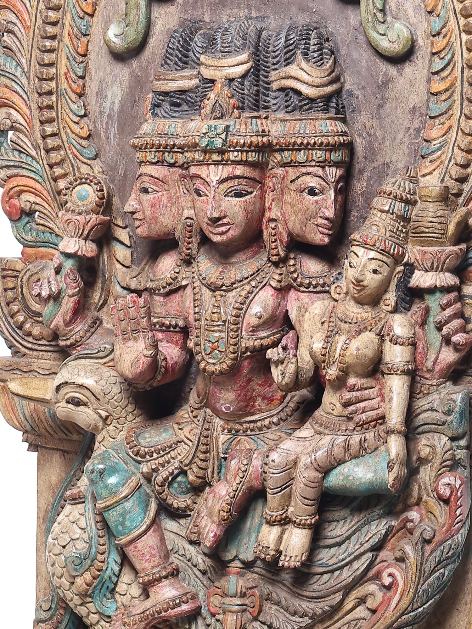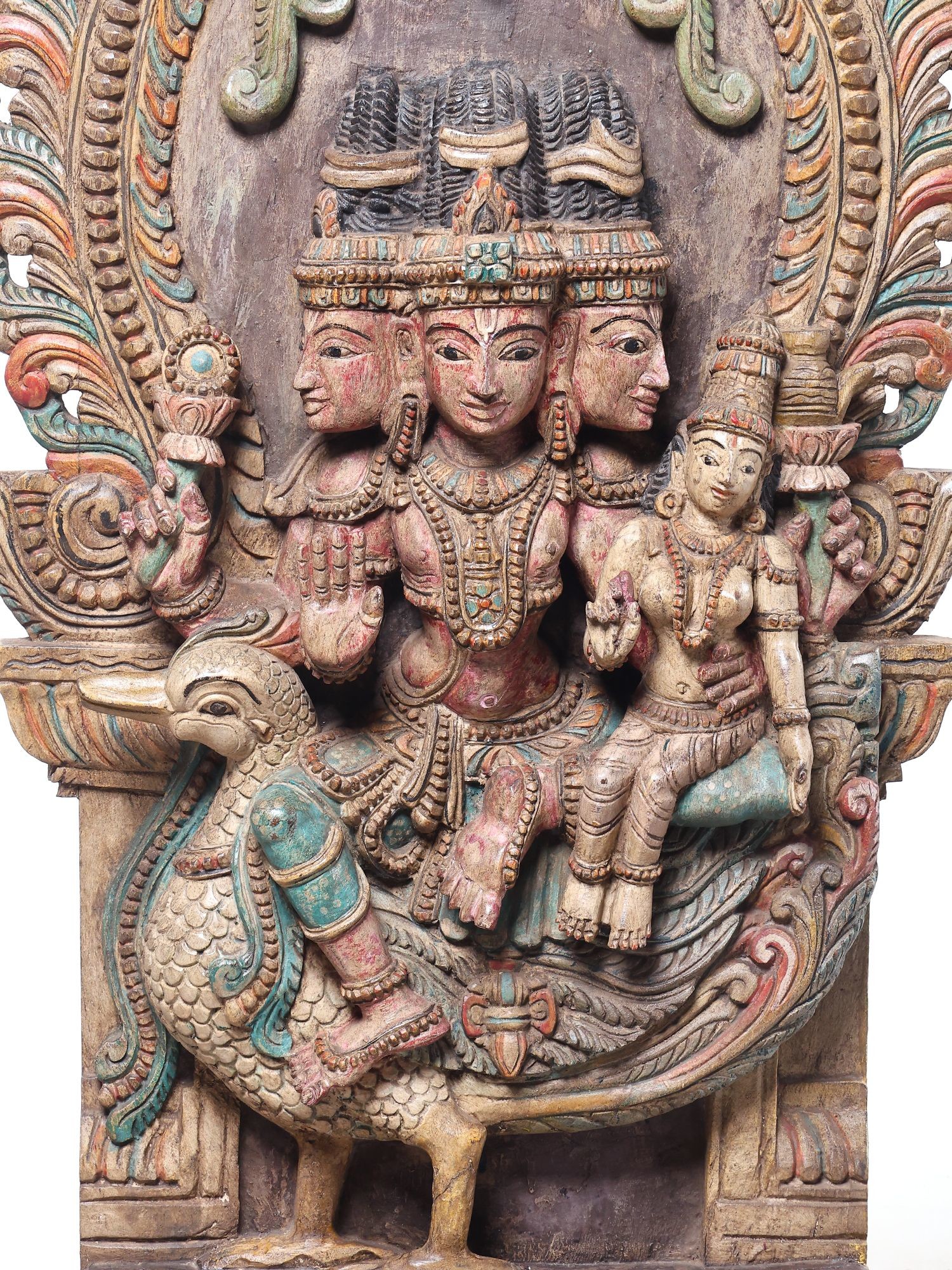 • Features Lord Murugan (Kartikeya) with his consort Valli, seated on a majestic peacock.