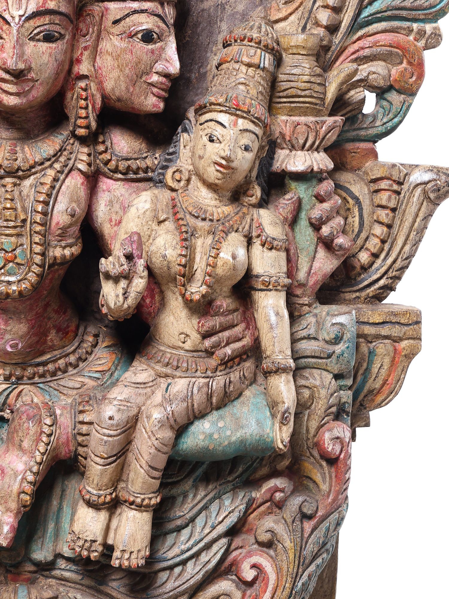 • The central figures and their mount are brought to life through meticulous carving techniques.