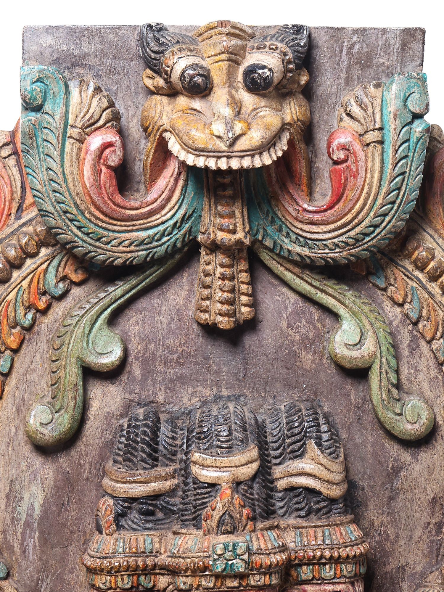 • Crafted from wood with intricate detailing in a traditional South Indian style.