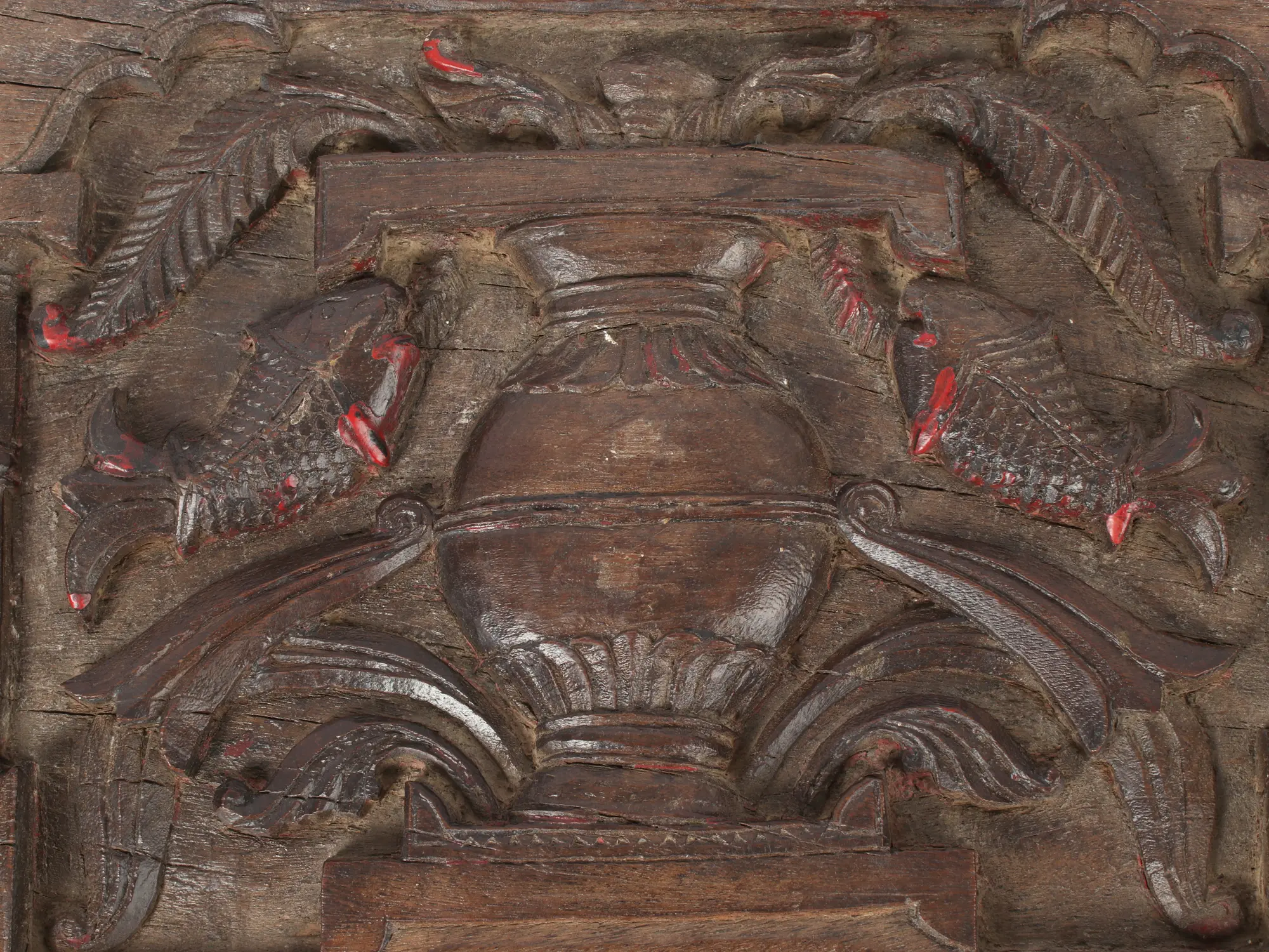 The craftsmanship evident in this piece is a testament to a bygone era. The intricate carving, the subtle yet powerful depiction of the peacocks' forms, and the framing details speak to the dedication and skill of the artisan. The weathered texture of the wood itself adds to its allure, hinting at a long history and countless stories. The rich, dark tones of the wood are a result of age and exposure, giving the panel an organic warmth that would complement any interior design. This is not merely a decorative item; it is a piece of history, a tangible link to the artistic traditions and cultural narratives that have shaped civilizations.