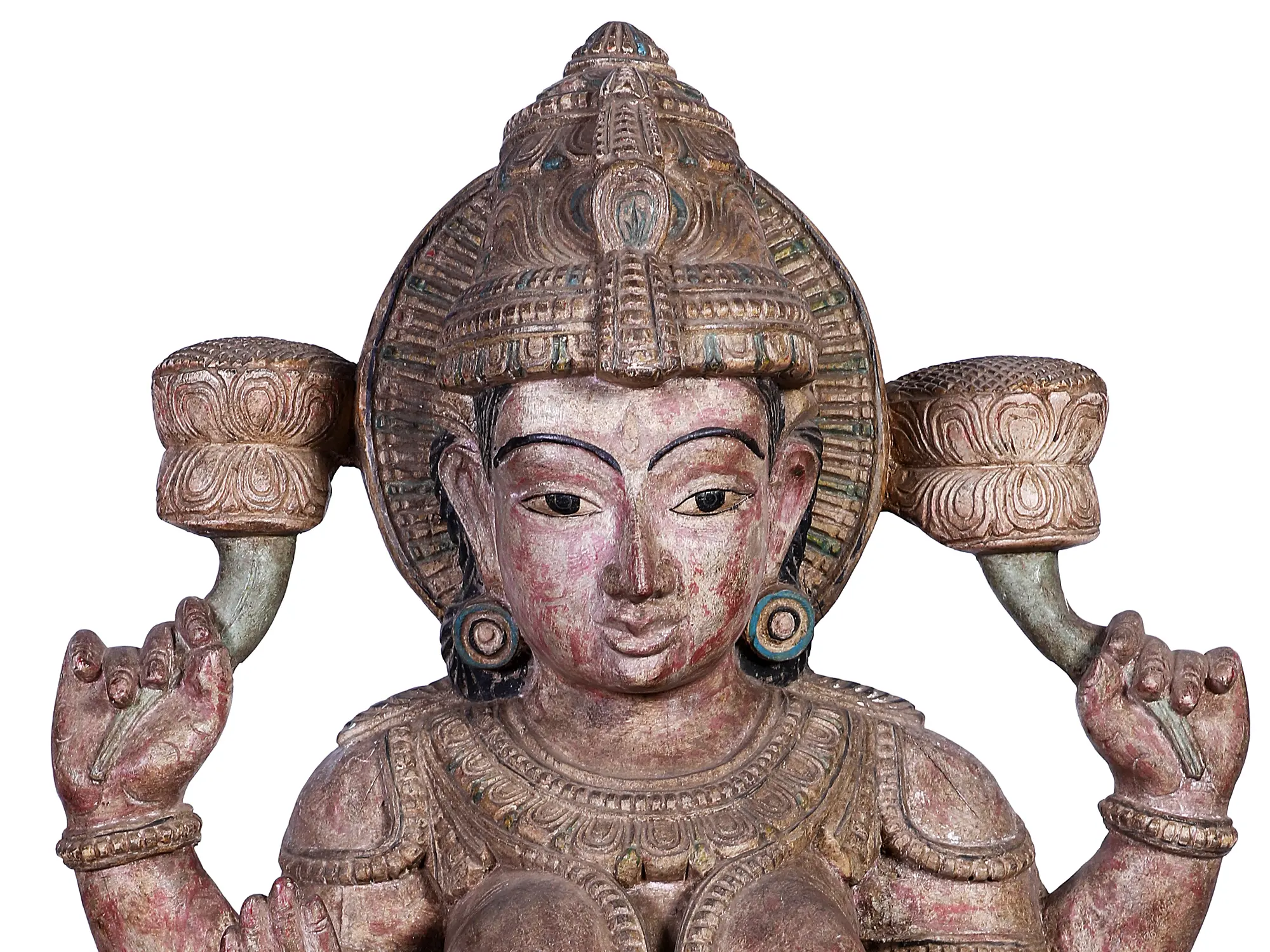 The colour palette is made up of soft, unassuming pastels, which look great against the natural, highly textured medium of wood. Such a murti would bring into your space the auspiciousness of a bygone era.