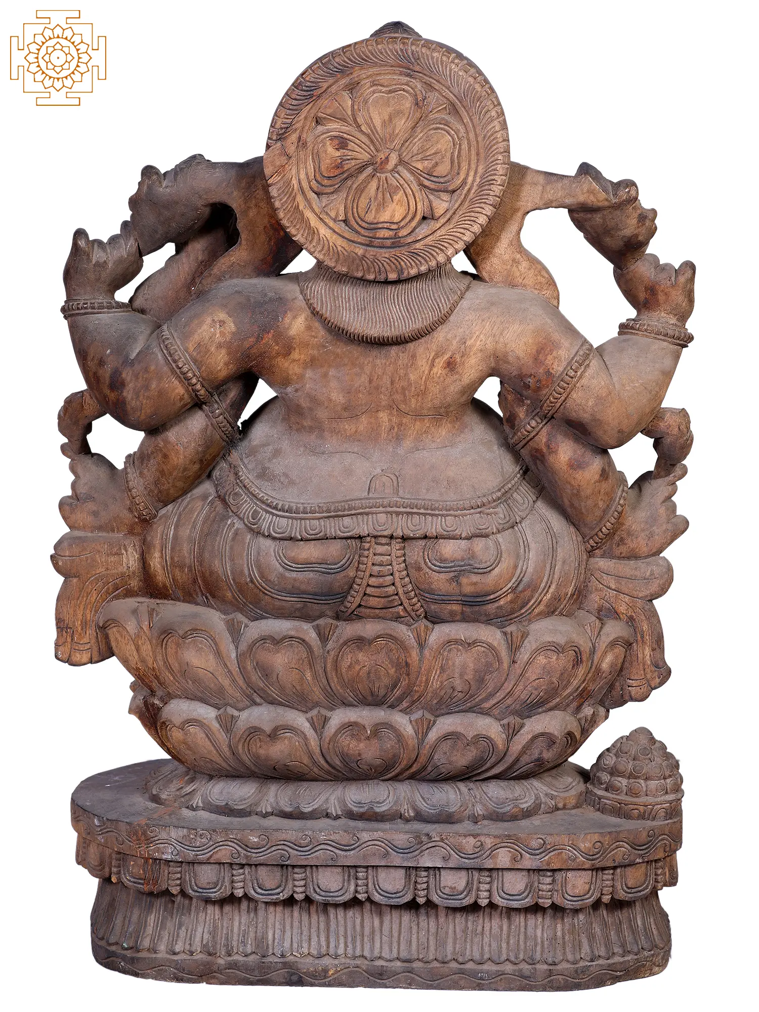 72" Large Wooden Ten Hands Sitting Lord Ganesha Idol