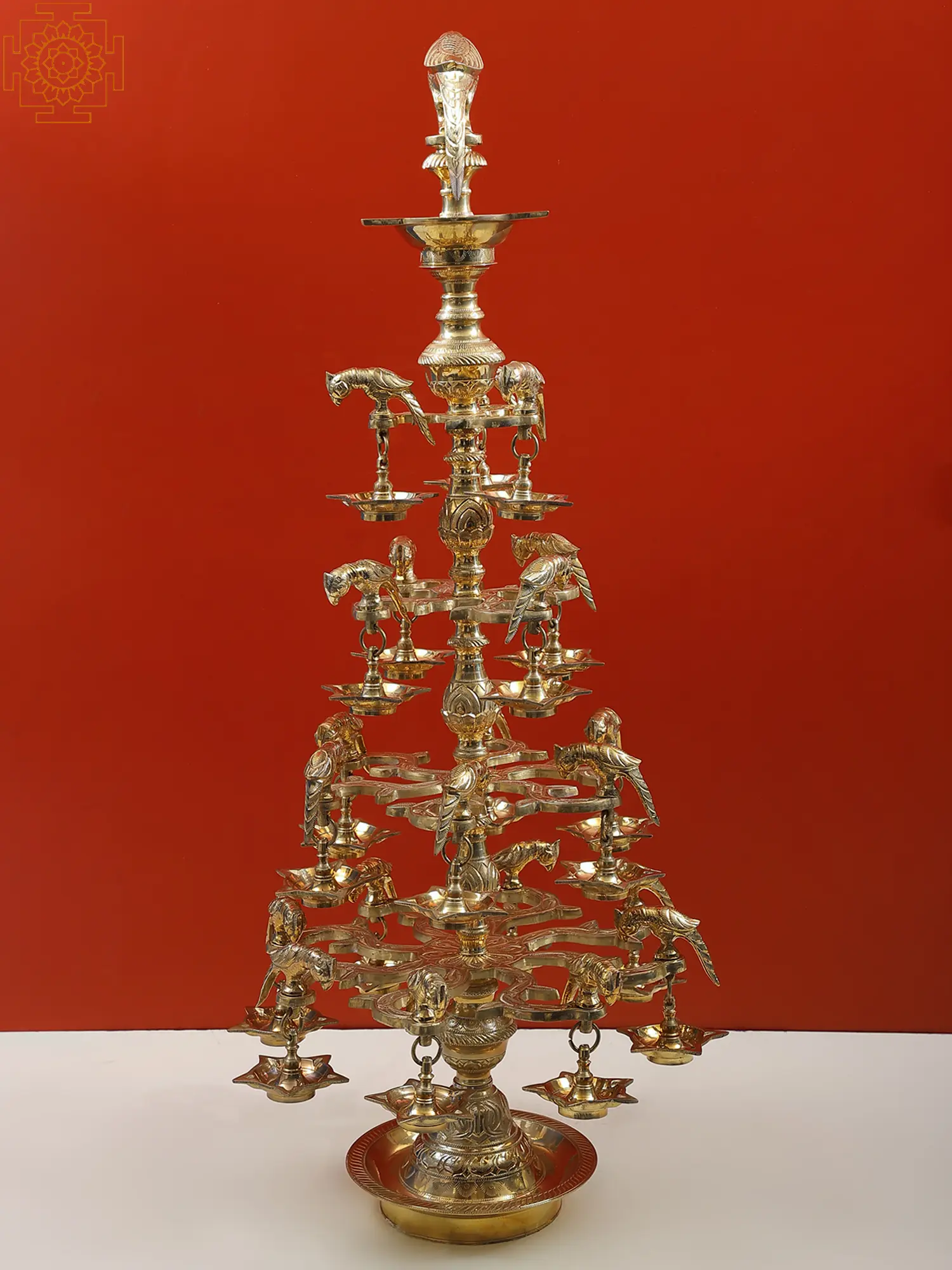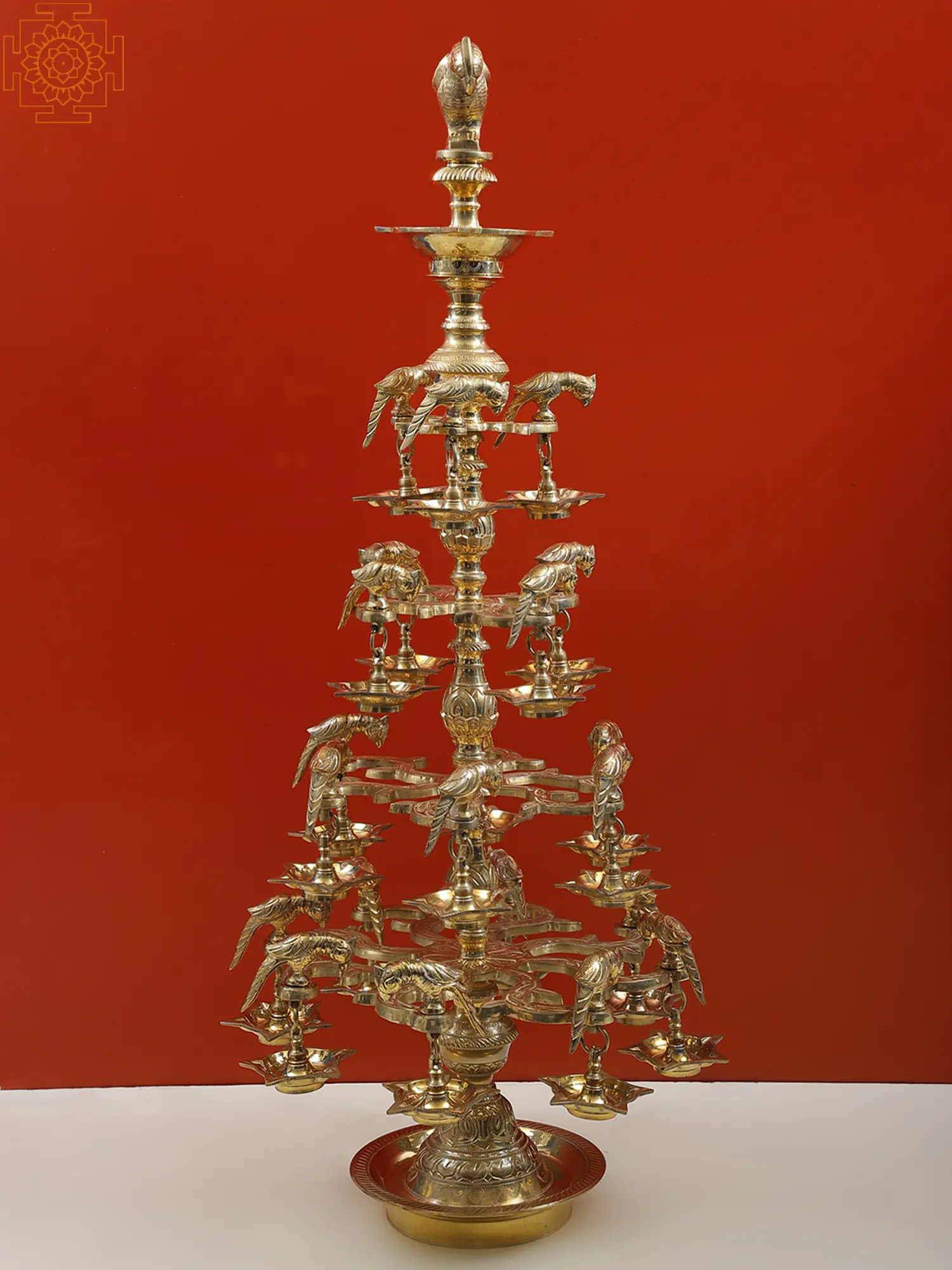 Illuminate your sacred space with the resplendent Large Size Twenty-Two Parrots Lamp in Brass. This remarkable piece is a testament to the artistry of Indian craftsmen. Made with exquisite detail, the lamp features twenty-two parrots, each symbolizing grace, beauty, and spirituality. The glow it emits enhances the ambiance of your rituals, creating a divine atmosphere. Embrace tradition and elegance in one with this handcrafted masterpiece. Let the light guide you on your spiritual journey, and may the parrots symbolize the ever-present wisdom of the divine.