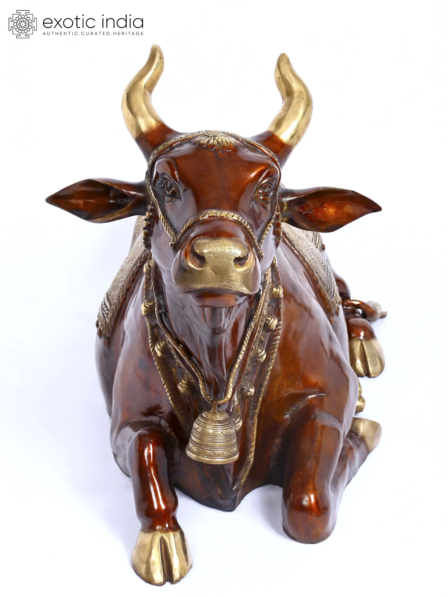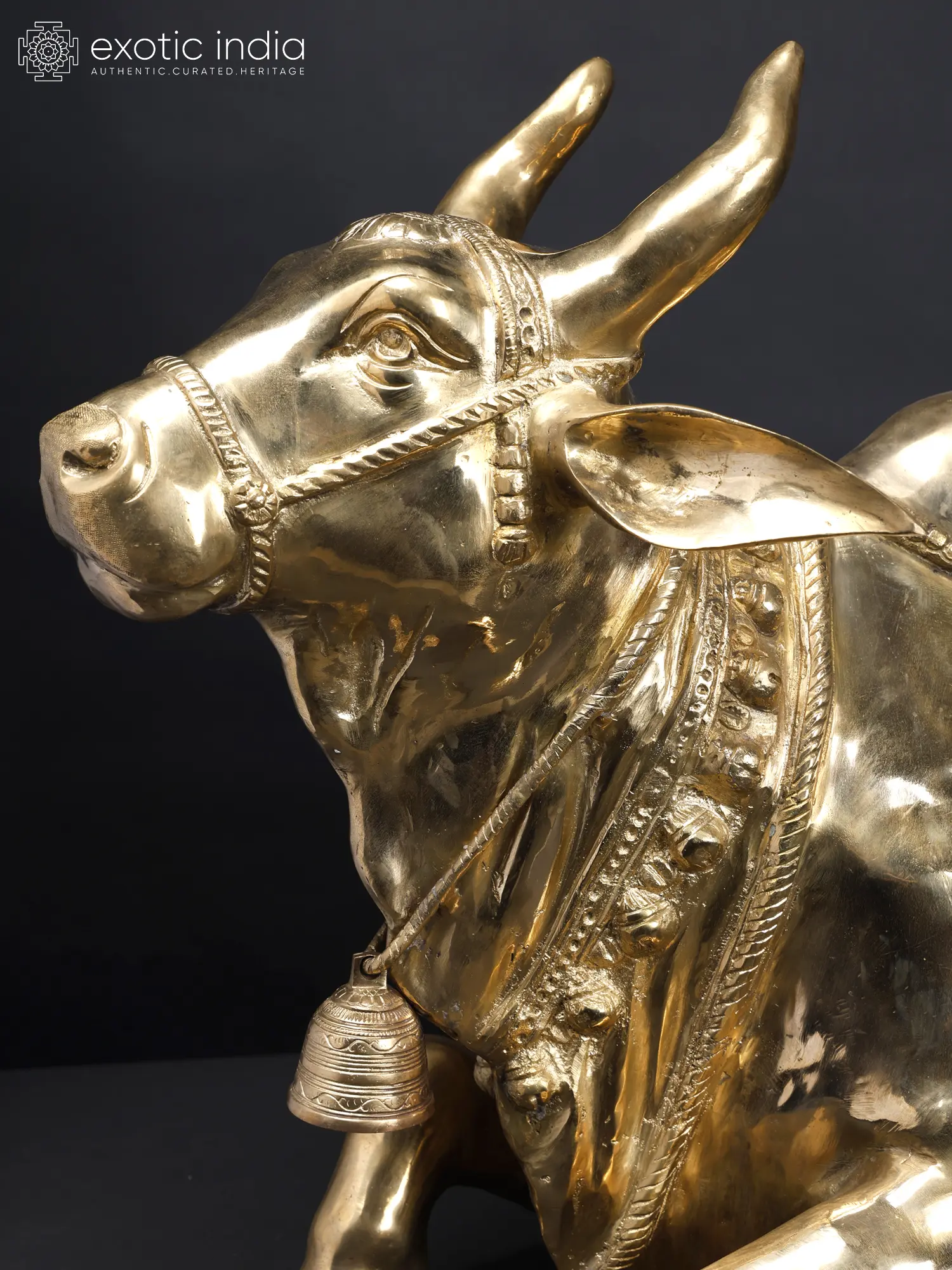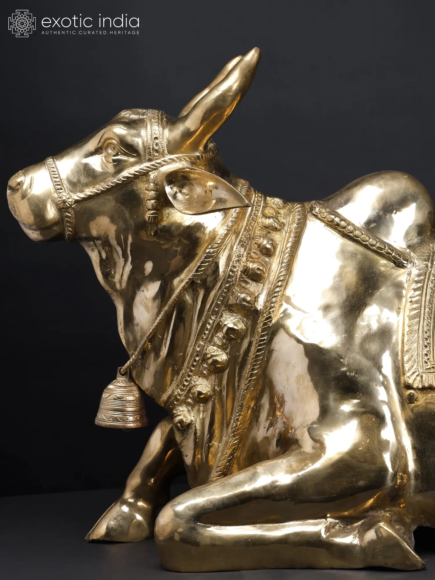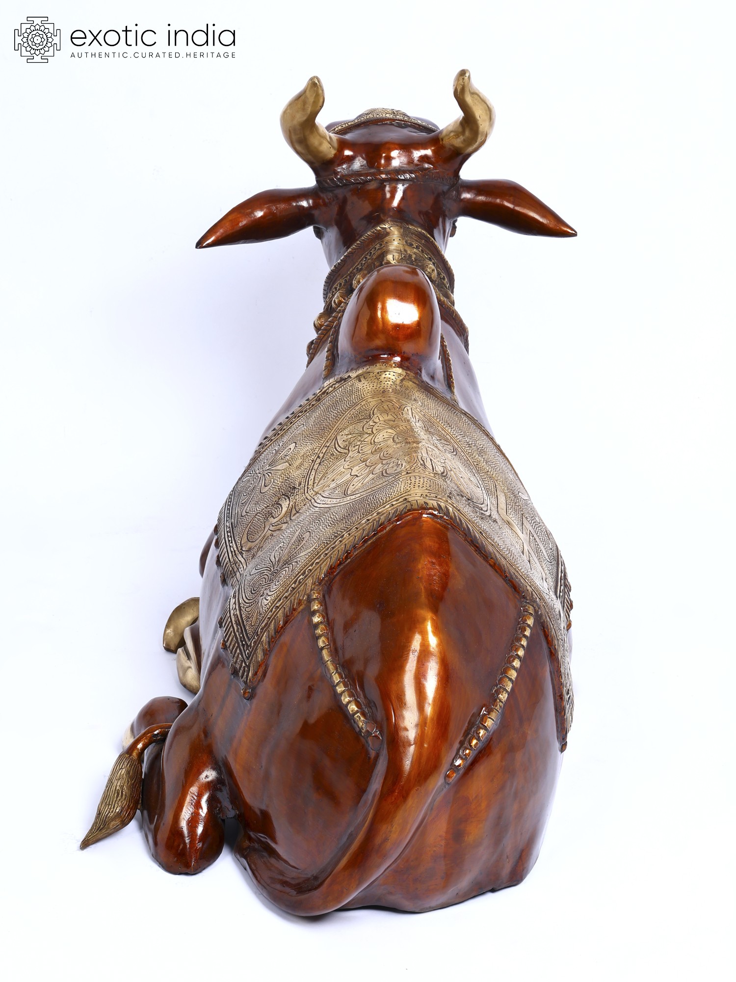 Gleaming divinely, Shiva’s devoted mount Nandi in this brass sculpture creates an atmosphere of devotion around him.