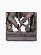 Kali's mythology is rich and varied, often associated with the fierce protection of her devotees and the annihilation of demons who threaten cosmic order. One of the most famous tales involves her emergence from the forehead of Durga to defeat the demon Mahishasura, a feat that showcased her untamed power and her role as the ultimate Shakti. Her dance, known as the Tandava, is said to be so powerful that it can shake the very foundations of the universe. This sculpture, with its dynamic pose and commanding presence, evokes that primal energy. The artistry displayed in this piece is a testament to the traditional craftsmanship of South India, a region renowned for its devotional art. The wood has been expertly carved to bring forth the powerful musculature, the flowing garments, and the symbolic elements associated with the Goddess. The weathered finish adds a sense of antiquity and reverence, suggesting that this is not merely an object of art but a conduit for spiritual connection. The smaller figure at the base, often a representation of a devotee or a subjugated demon, further adds to the narrative depth of the sculpture, grounding the divine in a relatable context. This is an ideal piece for those seeking to bring a powerful spiritual presence and a touch of ancient artistry into their homes or sacred spaces.