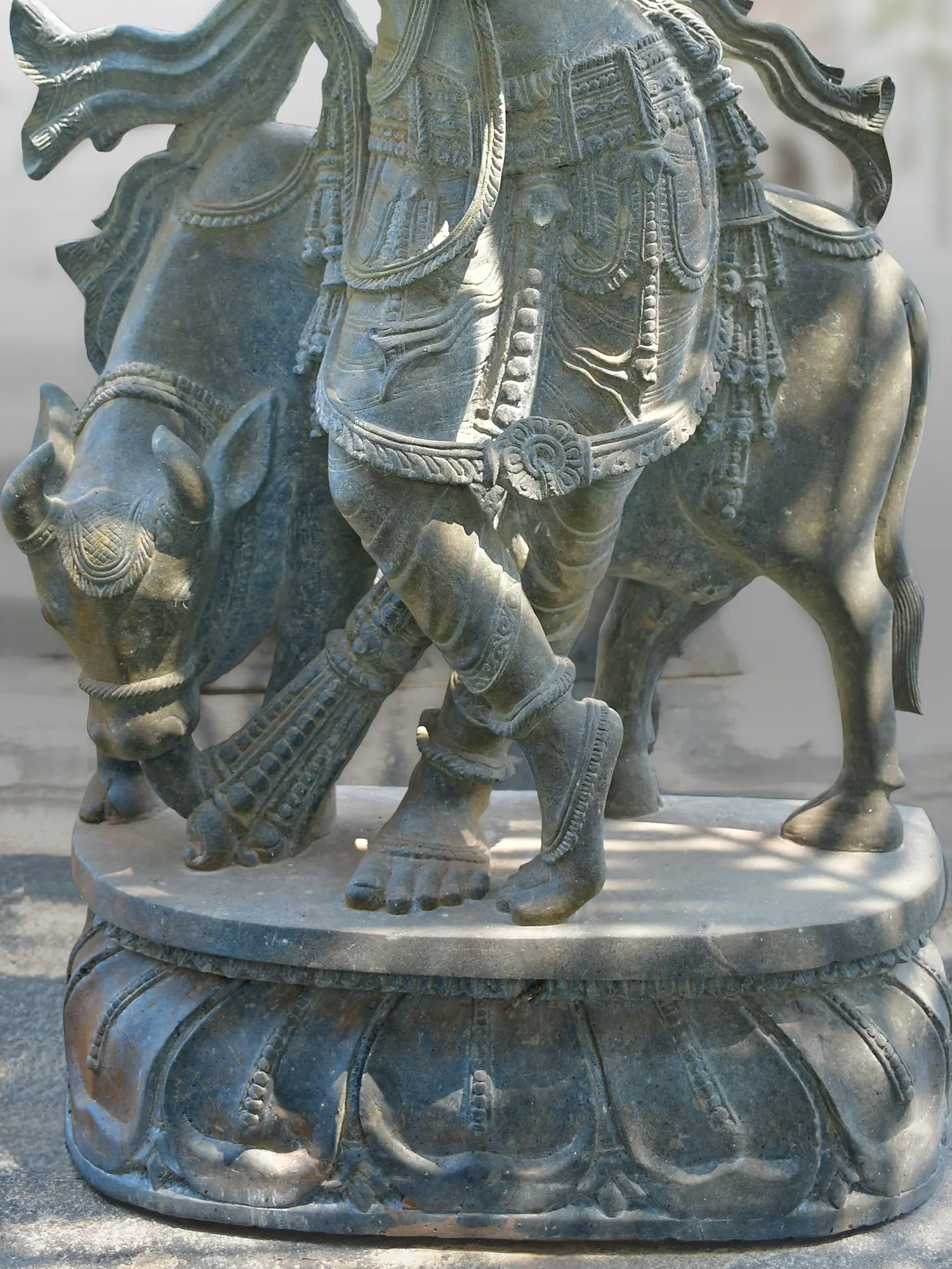 Carved from the finest Orissa stone, each curve and detail of this piece is a testament to the artist's dedication and profound understanding of form. Artisans meticulously shaped the unyielding stone, imbuing it with lifelike grace and spiritual resonance. The textural variations and subtle patina speak to the hand-finished nature, ensuring that your acquisition is a singular work of art, born from generations of tradition.