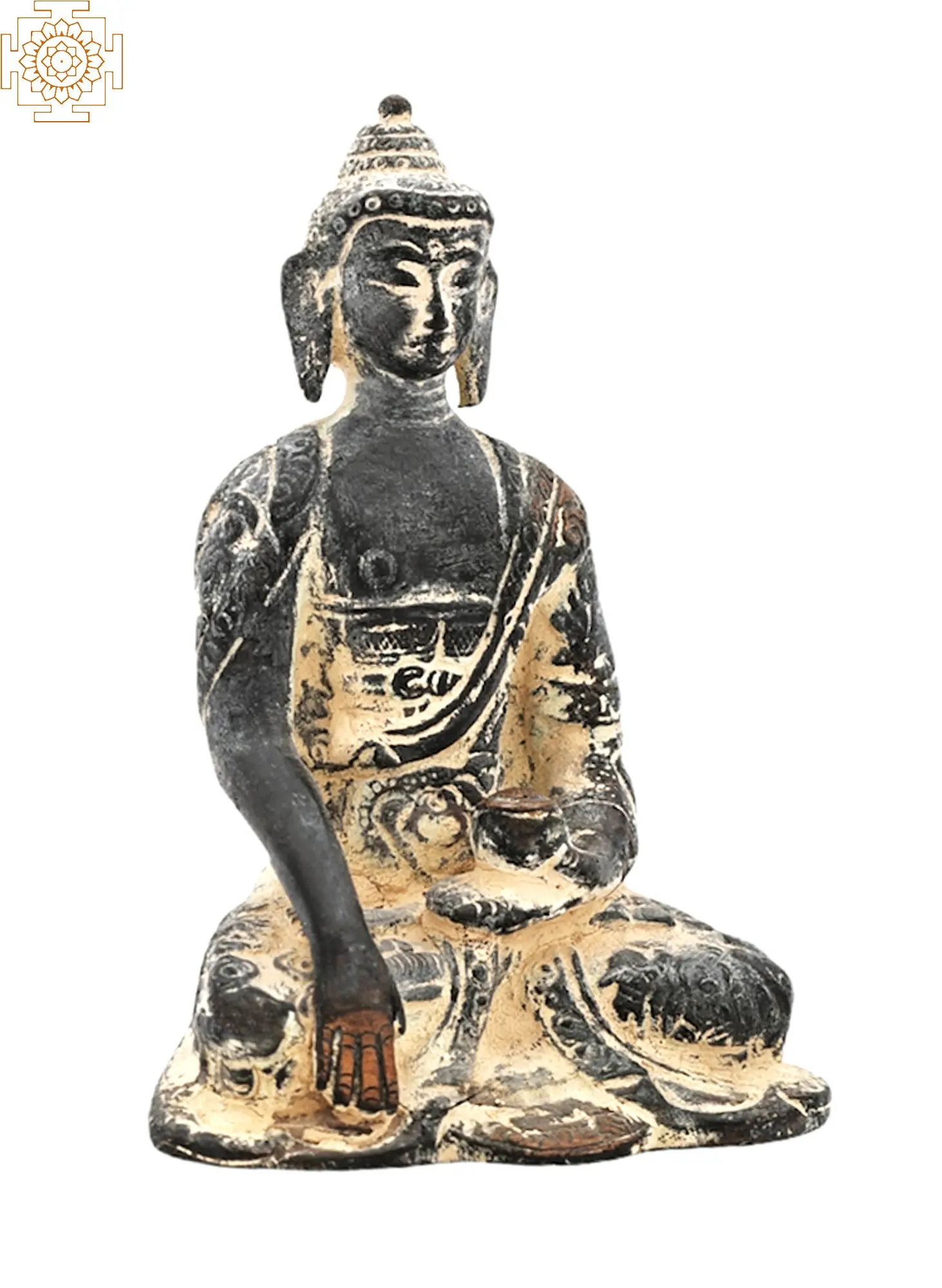 With one hand touching the earth and the other holding an “alms bowl”, Shakyamuni Buddha (the Awakened One) epitomises his connection to the cosmos and compassion for all beings. This gesture, depicting the moment He overcame temptation, signifies the triumph of wisdom over ignorance. The alms bowl embodies his renunciation of material desires and his commitment to simplicity. Crafted in brass with meticulous attention, this portrayal of the revered sage emanates tranquillity and wisdom.