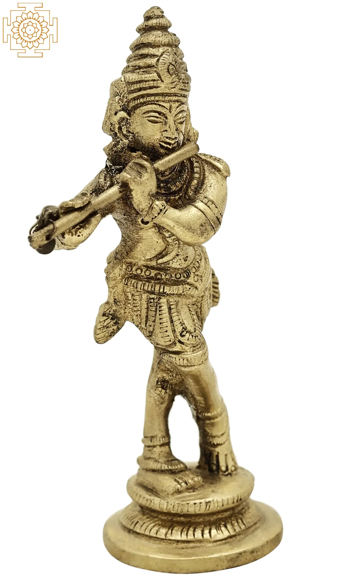 Depicted as a young child with a mesmerising flute, Lord Krishna captivates hearts with his endearing innocence and enchanting melodies. Through his playful exploits and teachings, Lord Krishna inspires a profound connection with spirituality, reminding humanity of the eternal pursuit of love and enlightenment. Whether as a focal point in your Meditation Corner or a cherished addition to your decor collection, this sacred brass artwork beautifully embodies the eternal charm of “Lord Murli Krishna”, creating an atmosphere of tranquillity and reverence.