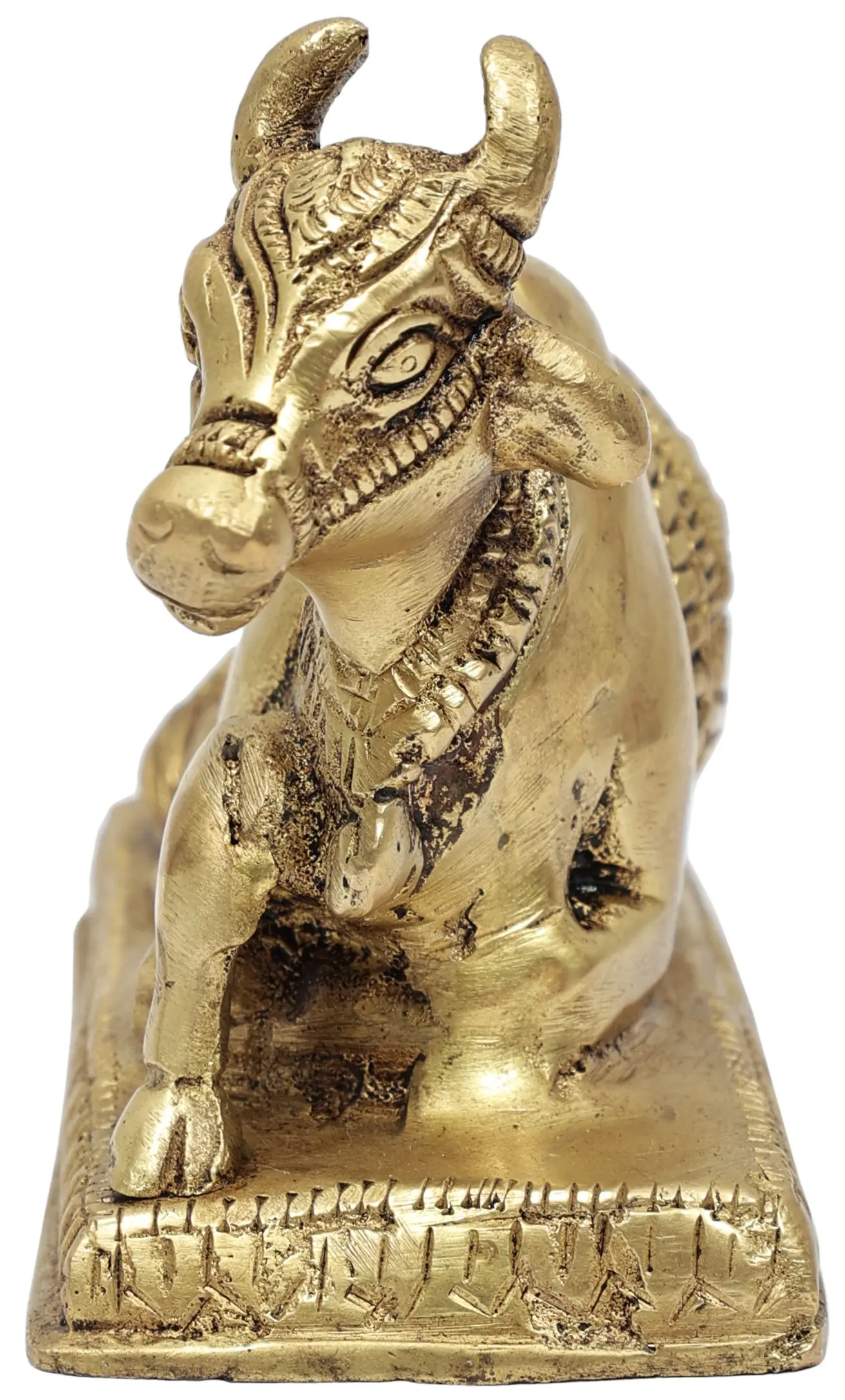 In Hindu tradition, “Nandi”, also known as “Nandikeshvara” or “Nandideva”, serves as the loyal and devoted vehicle (Vahan) of “Lord Shiva”. As Shiva’s steadfast companion, Nandi symbolises unwavering loyalty, strength, and righteousness. Often depicted as a majestic bull with a serene demeanour, Nandi is the guardian of Shiva’s abode, “Mount Kailash”. Devotees believe that seeking Nandi’s blessings can grant access to Lord Shiva’s divine presence. Crafted with intricate detail, this brass depiction of “Nandi” represents loyalty and guardianship.