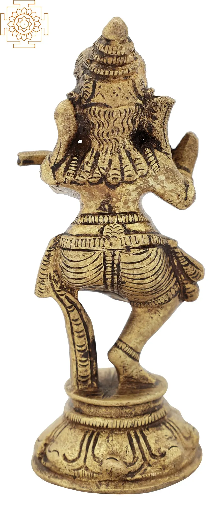 In Hinduism, Dancing Ganesha, also known as “Nritya Ganapati”, is an enchanting form of Lord Ganesha in a graceful and rhythmic dance posture. As the Lord of Arts and Remover of Obstacles, Nritya Ganapati symbolises the harmonious balance between creative expression and overcoming challenges. His right hand is in the gesture of blessing, symbolising the granting of wishes and bestowing boons upon his devotees. Meticulously crafted in brass, this statue is a cherished addition to any sacred space, invoking prosperity, happiness, and fulfilment.