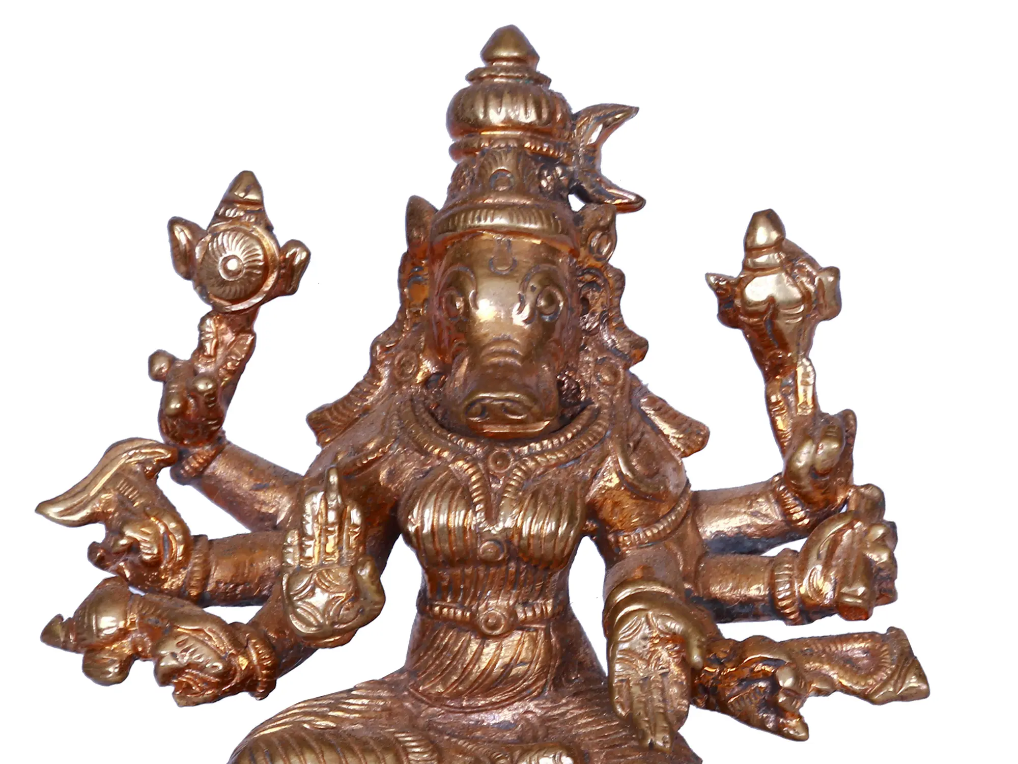 7" Sitting Eight Armed Goddess Varahi | Bronze Statue