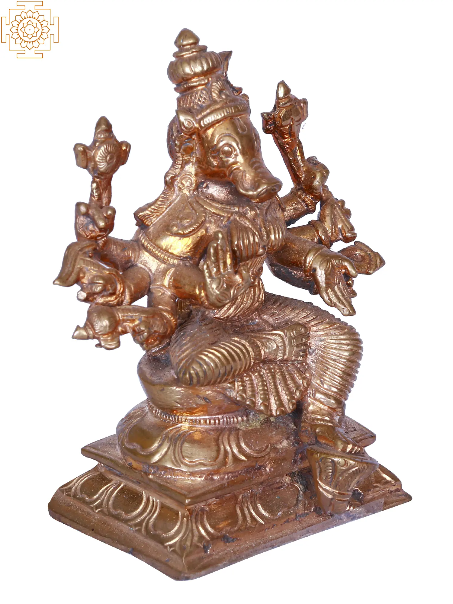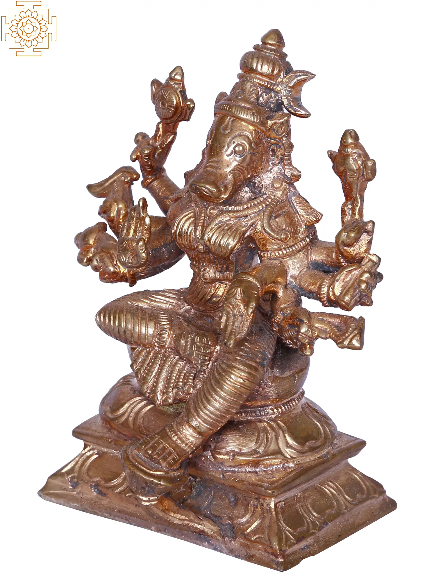 5" Blessing Goddess Varahi Seated on Kirtimukha Throne | Bronze Statue