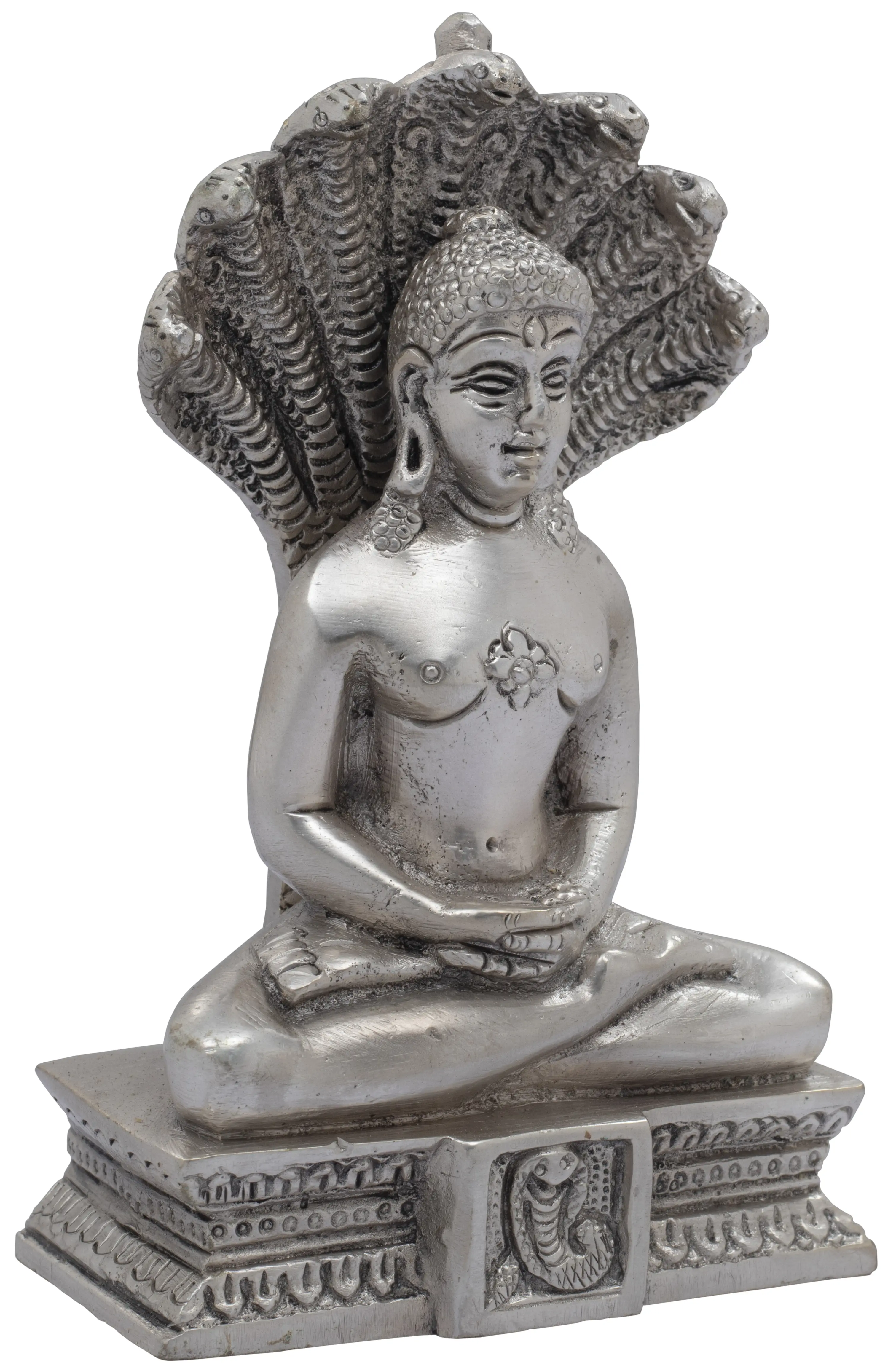 Handcrafted with devotion, the brass sculpture portrays Rishabha Deva, the first Jain Tirthankara. His serene gaze reflects inner realization. His hair, matted due to ascetic practices, signifies detachment from worldly desires. The elongated ears symbolize his profound wisdom. The three-tiered umbrella above represents spiritual protection. His hands, in the Varada Mudra, signify his bestowal of blessings. Rishabha Deva's presence is a testament to the path of renunciation and enlightenment, inspiring seekers to tread the sacred journey toward liberation.
