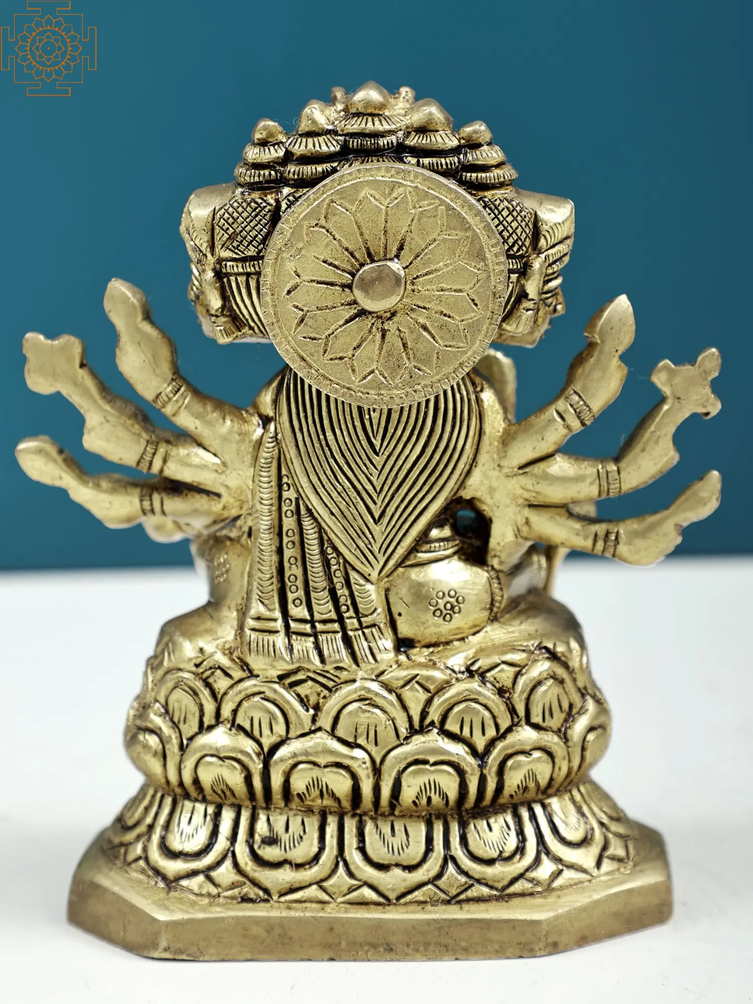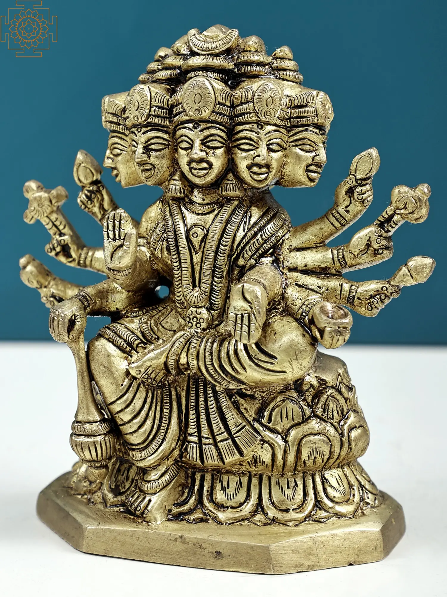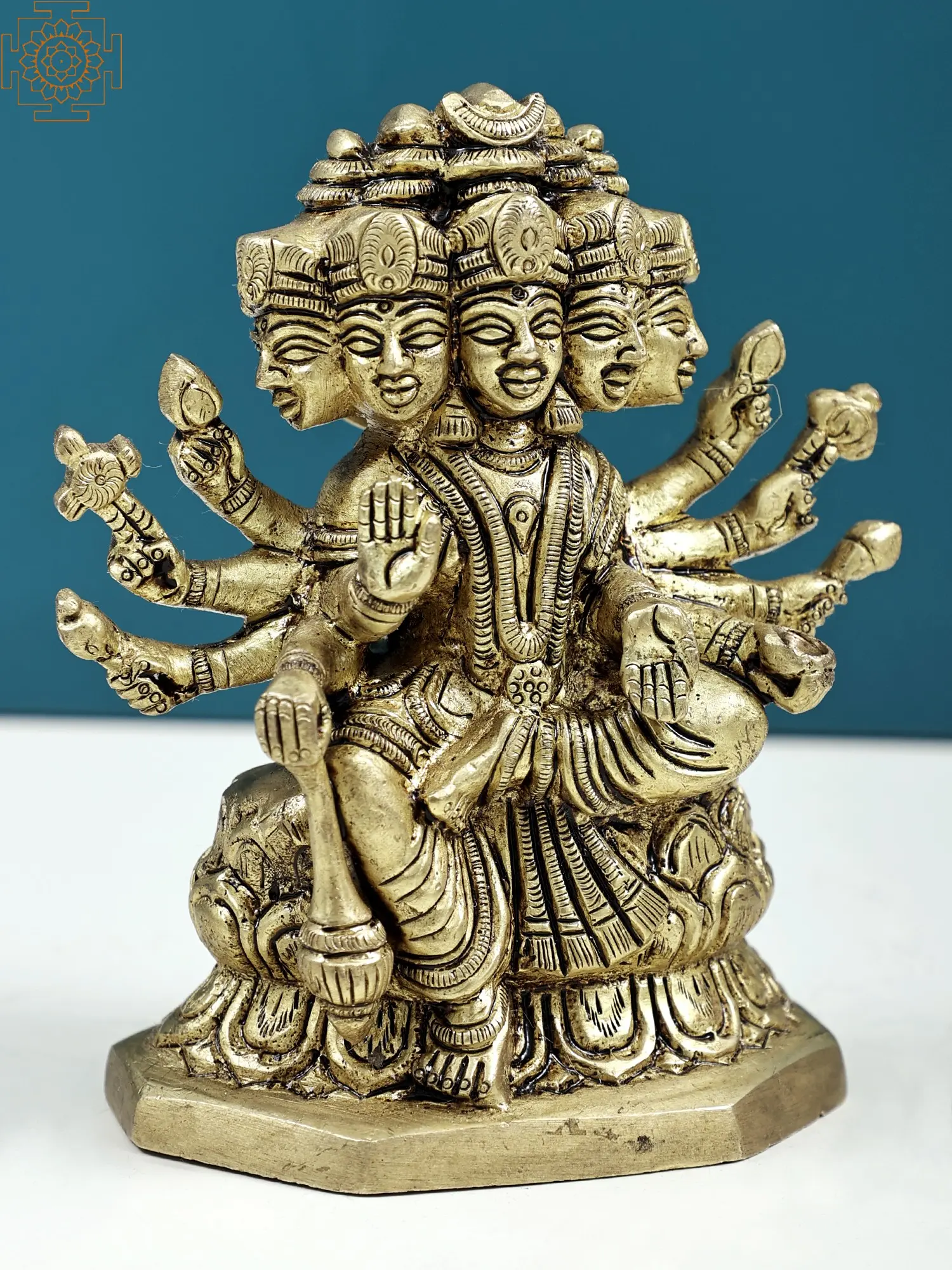 Elevate your spiritual space with the divine presence of Goddess Gayatri, a true embodiment of cosmic energies. This exquisite portrayal showcases her with five faces, each representing the vital life forces and the fundamental elements of the universe - earth, water, fire, air, and sky.