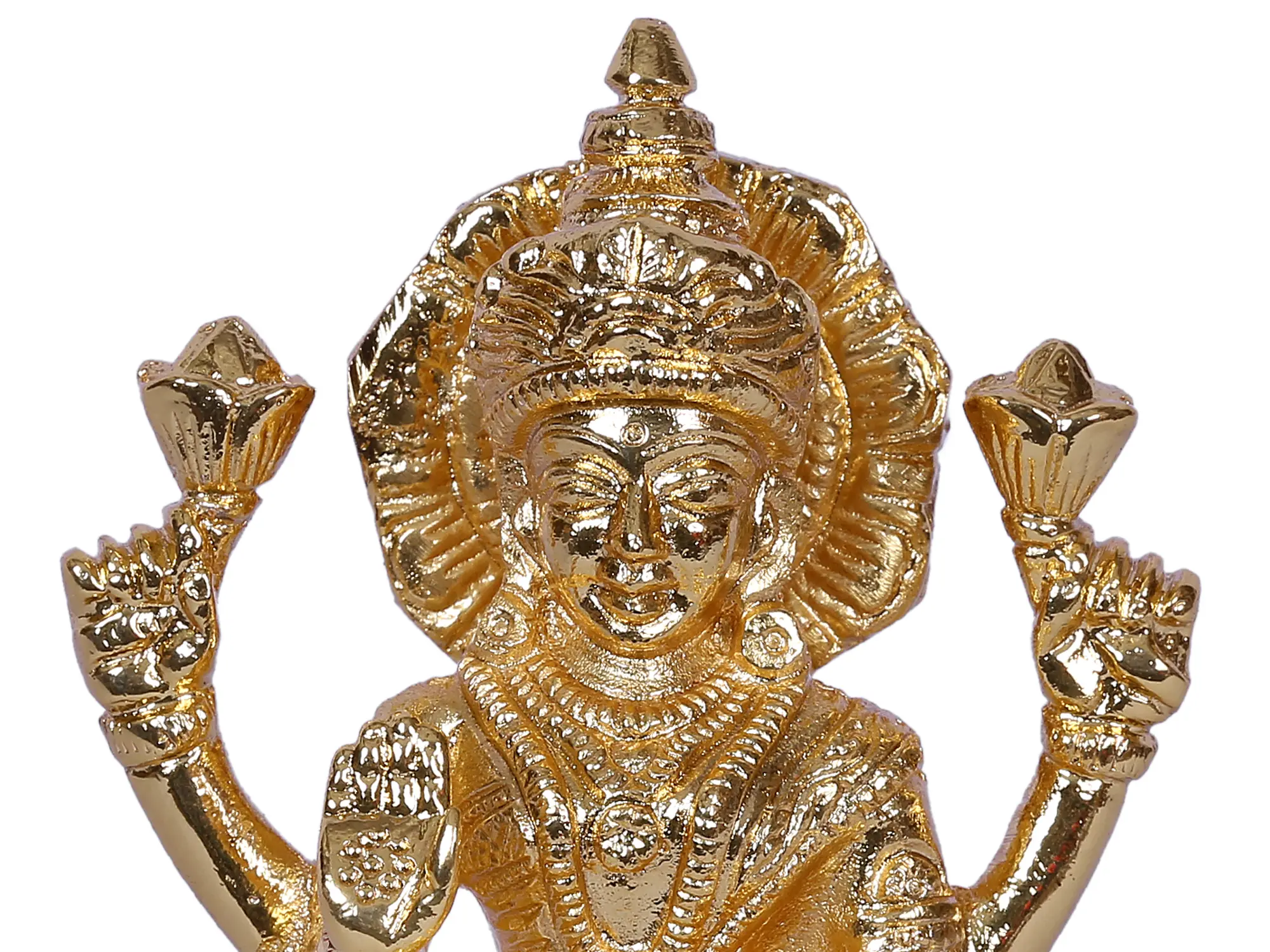 Invite the divine blessings of Goddess Lakshmi, the revered Hindu deity of wealth, fortune, and prosperity, into your home with this exquisite brass statue. Crafted with meticulous attention to detail, this radiant representation captures the essence of abundance and good luck, making it a perfect addition to any sacred space or as a cherished centerpiece.