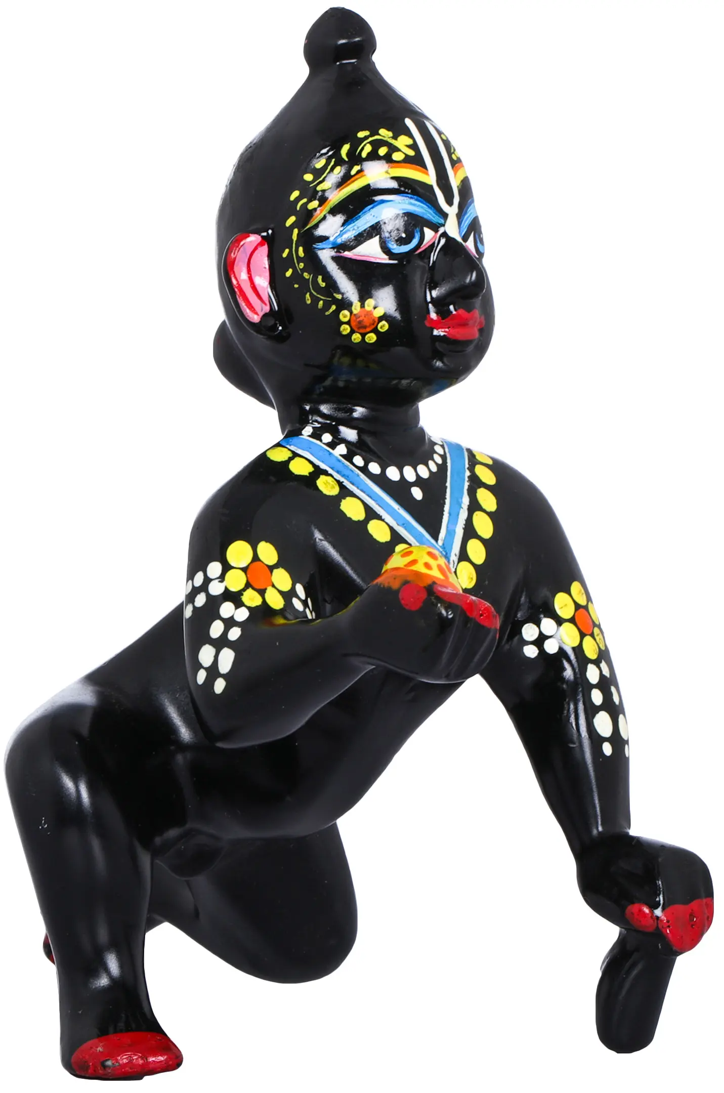 Laddoo Gopal, the childhood form of Hindu god Sri Krishna is perhaps the most loved form of the deity. Krishna is shown as a toddler, holding a laddoo (Indian sweet) in his hand, crawling on the floor. Pleasing to behold and immensely loveable, Krishna as Laddoo Gopal is a revered and adored member of the family of the devotee, treated with affection and esteem.