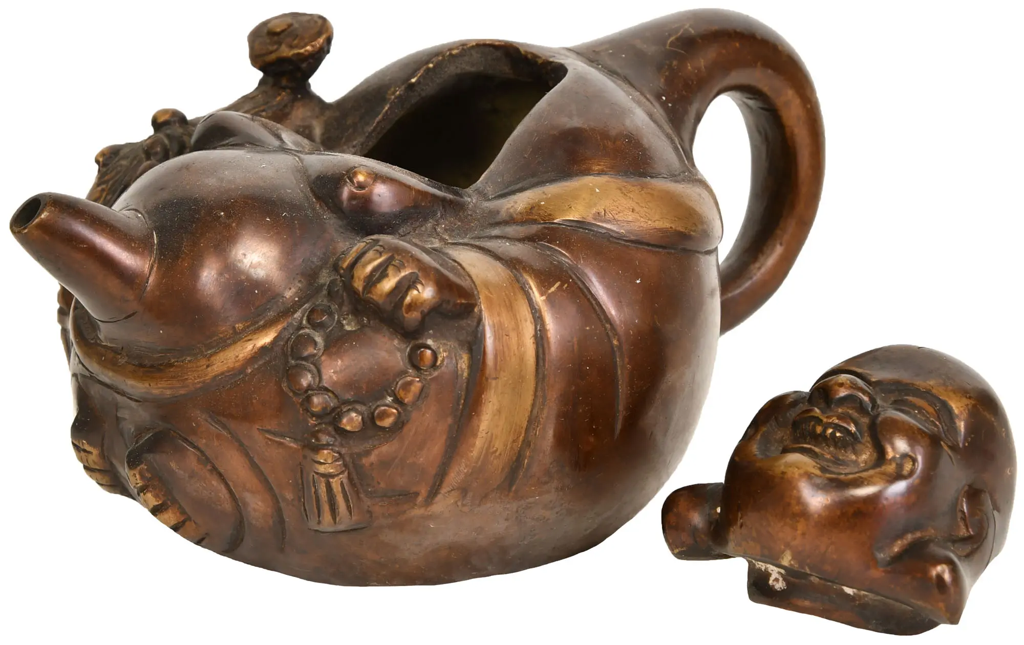 This brass kettle embodies the essence of the Laughing Buddha's contagious laughter and benevolent spirit. The belly of the kettle showcases the jovial countenance of the Laughing Buddha, his mirthful eyes and joyful smile radiating positivity and abundance. As steam rises from the kettle, it's as if the Buddha's laughter itself is infused into the very act of brewing. The coffee/copper brown hue of the brass adds a touch of regal charm, making it not just a functional piece, but also a piece of art that graces your space with its presence.