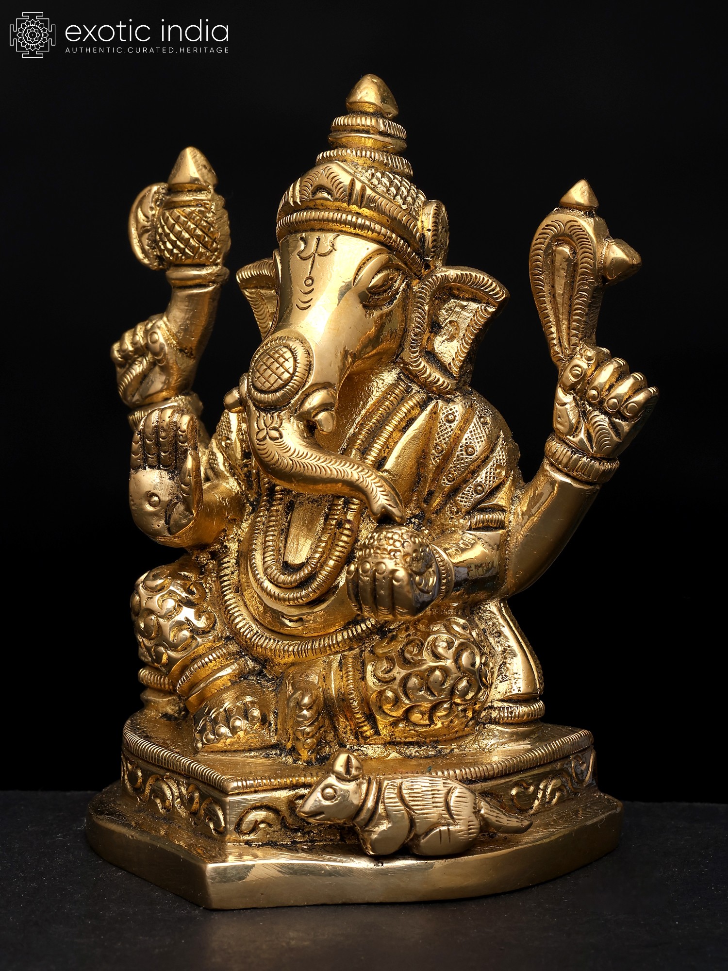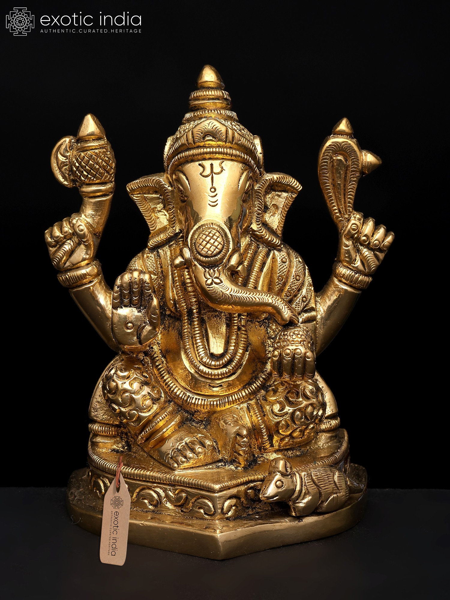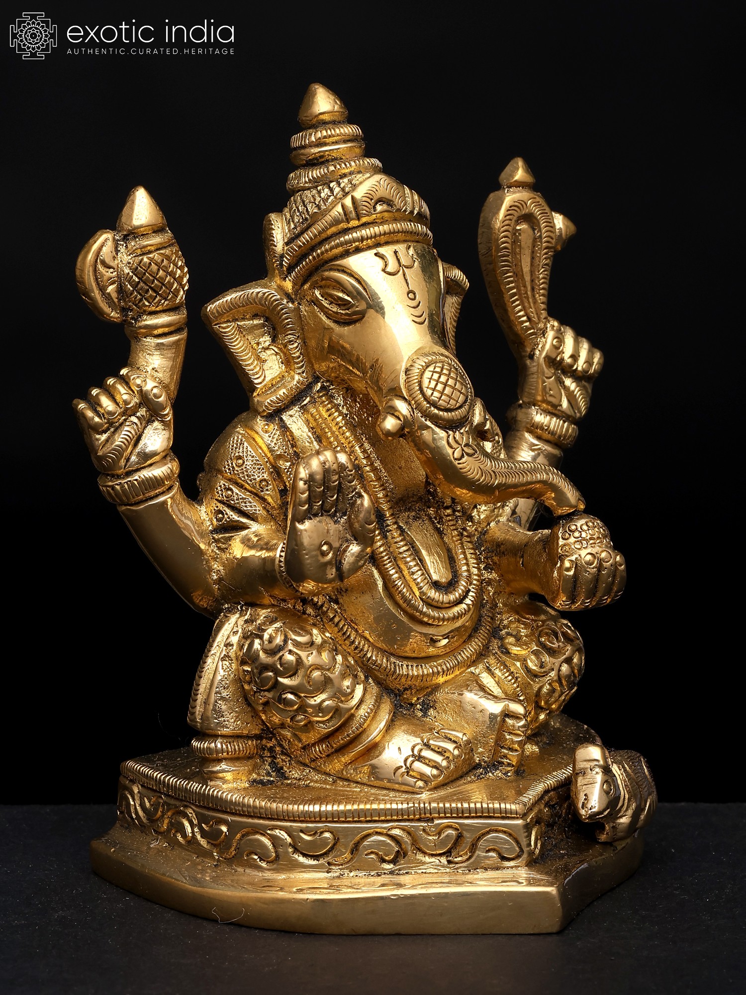 18" Lord Ganesha Statue on a Swing with Kirtimukha atop in Brass | Handmade | Made in India