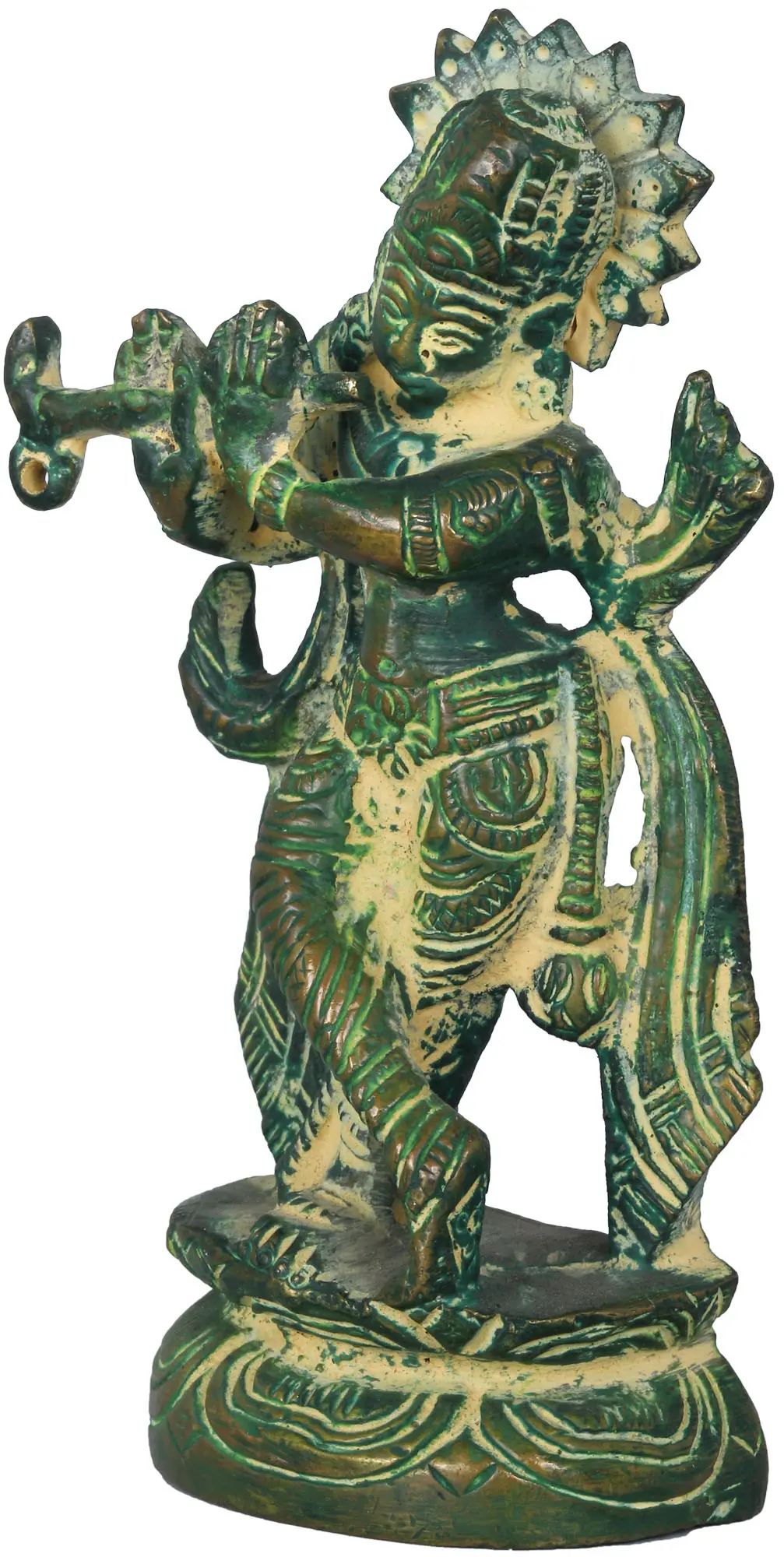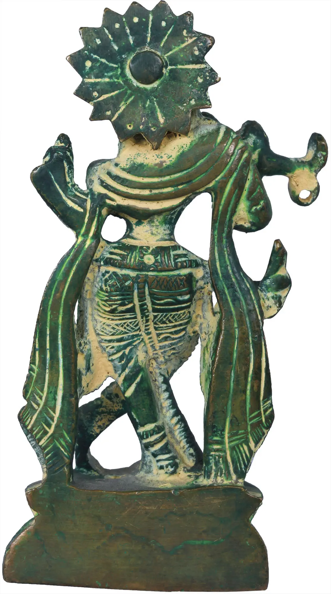 In Hindu scriptures, Lord Krishna is a revered deity. Known as the eighth avatar of Lord Vishnu, he is regarded as a divine incarnation and a symbol of love, compassion, and wisdom. Krishna’s enchanting persona captivates devotees with his playful nature, melodious flute, evoking a sense of Love and devotion. Crafted with intricate artistry, every contour and curve of the deity’s form exudes ethereal beauty. This magnificent work of art reveals the transcendental realm, where ecstasy and devotion happily coexist, inspiring an enduring resonance in the very core of your soul. With its all-encompassing aura of tranquilly and spirituality, this stunning work of art is the perfect addition to your home or altar.