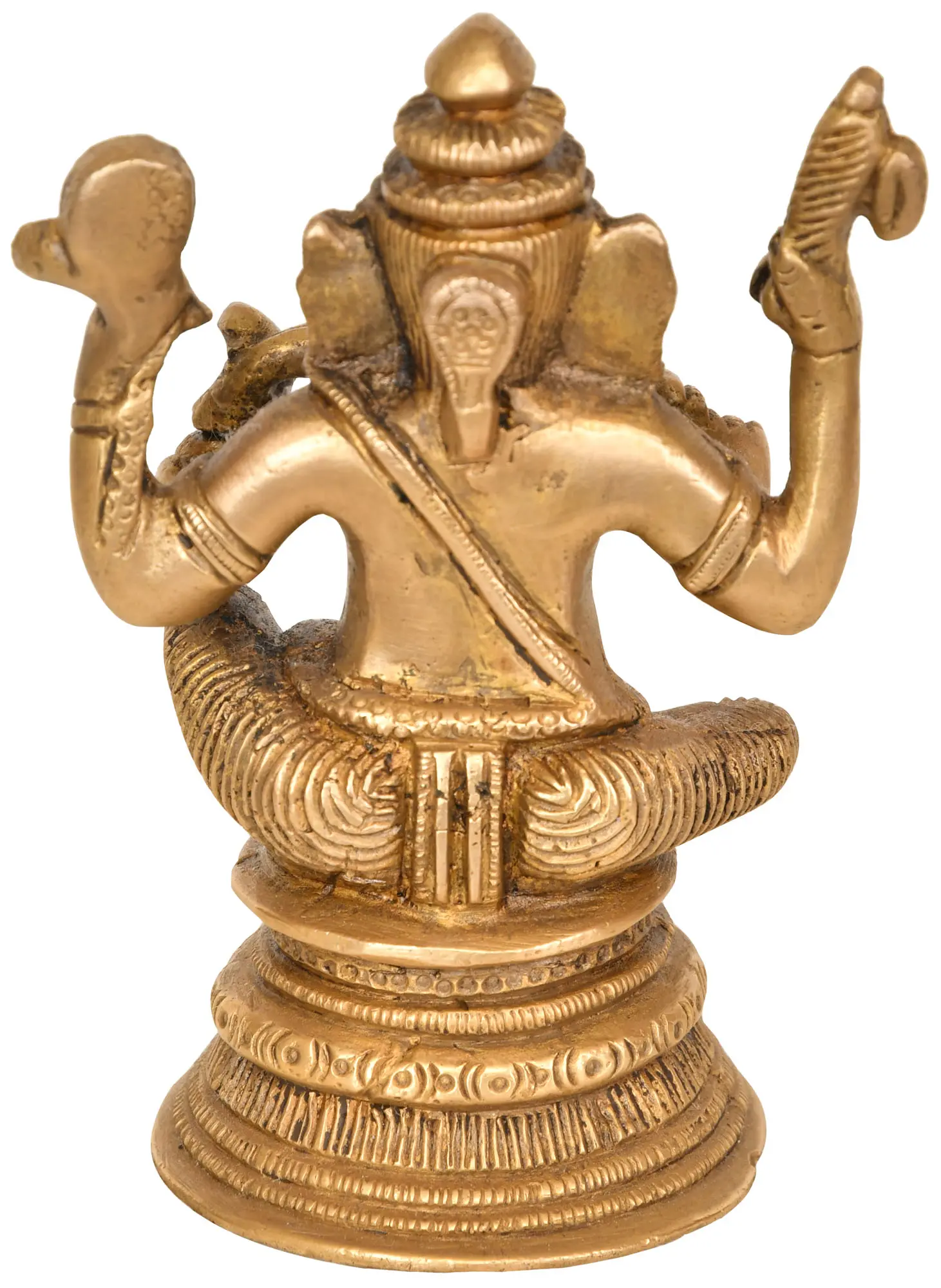 In this brass rendition, Lord Ganesha, “the harbinger of Good Luck”, sits enthroned in the “Utkutakasana posture” on a grand podium. His presence is an enchanting blend of majesty and benevolence. With his upper hands, He wields a goad and a noose, symbols of control over desires and obstacles. His broken tusk, a testament to sacrifice, tells tales of his unwavering devotion. The divine elephant god indulges in the sacred Modak, embodying sweetness and wisdom. Adorned in regal attire, his form exudes divine elegance. Worshipping Ganesha invokes wisdom, protection, and success, while his presence embodies the grace of overcoming challenges with charm and humility.