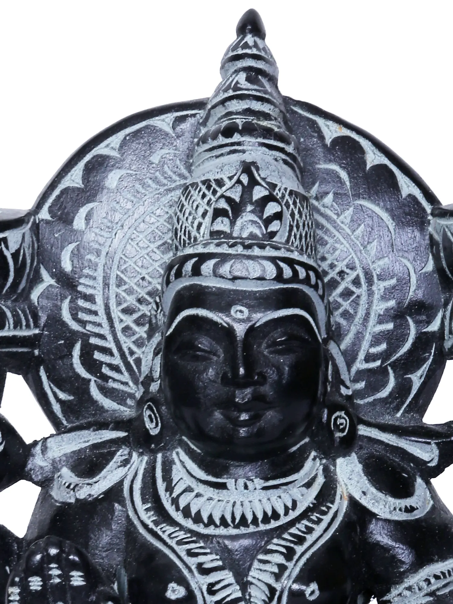5" Beautiful Statue Of Seated Ganesha With Wood Carving