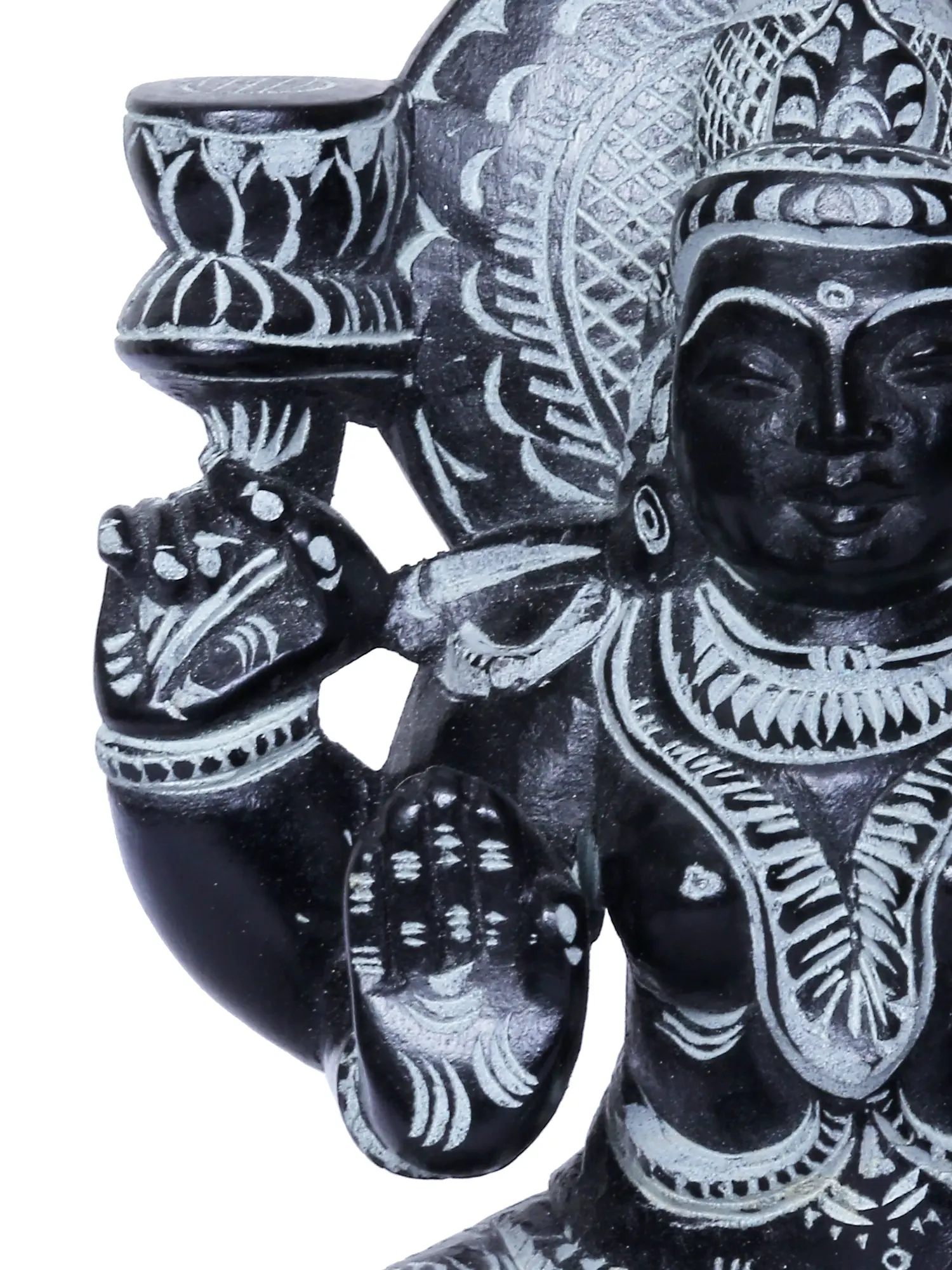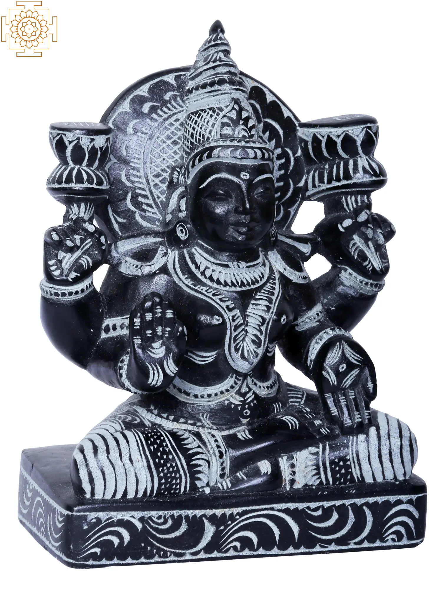 Silver Goddess Lakshmi Idol Sitting on Black Agate Pedestal with Gift Box