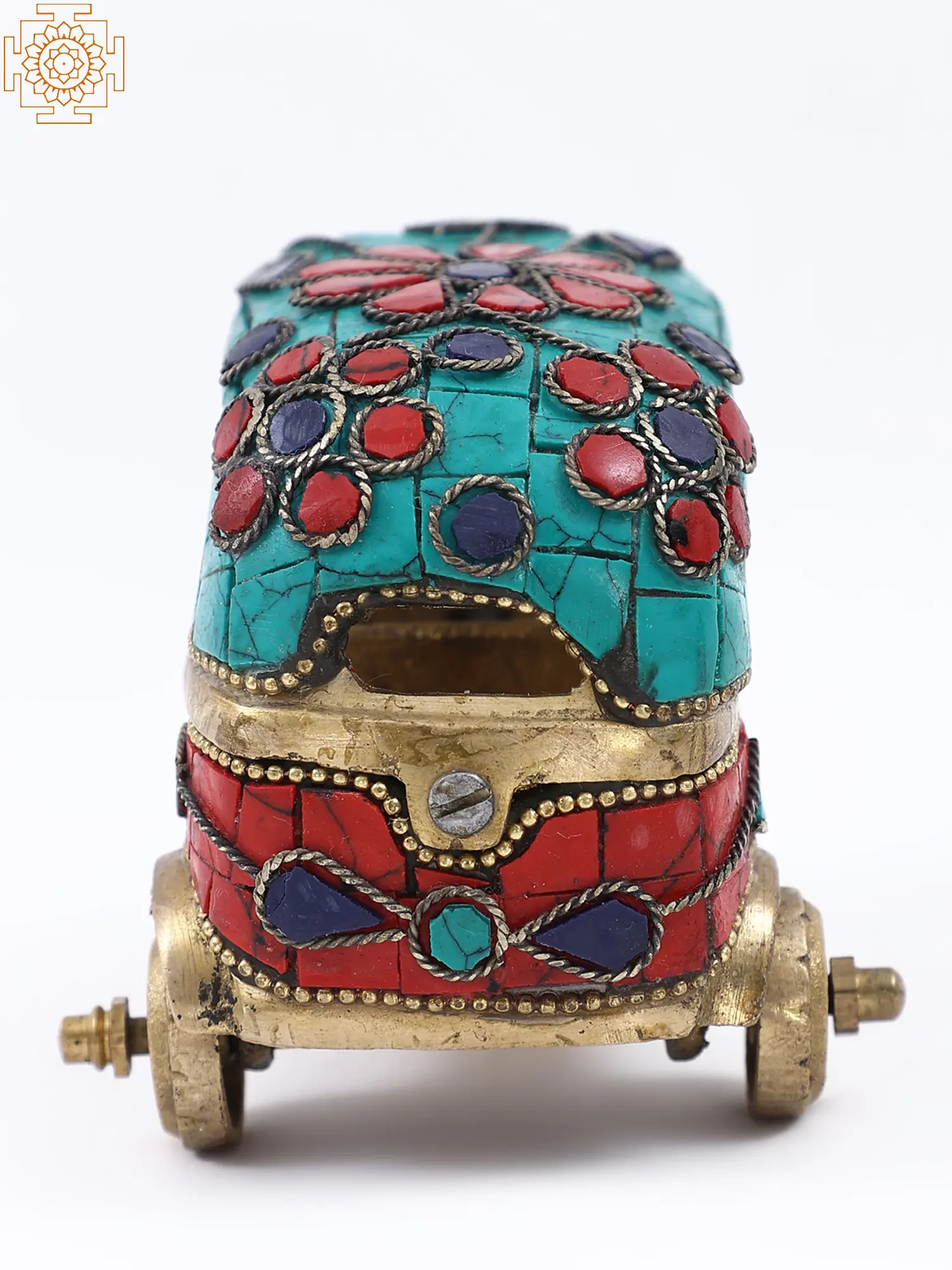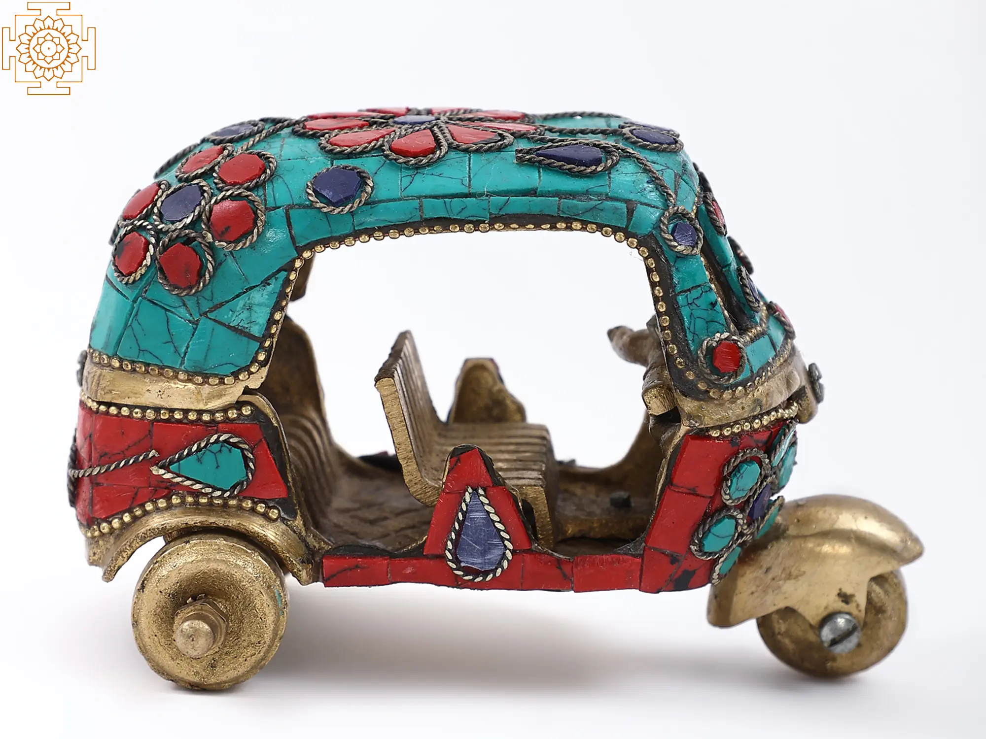 4" Small Brass Auto-Rickshaw with Inlay Work