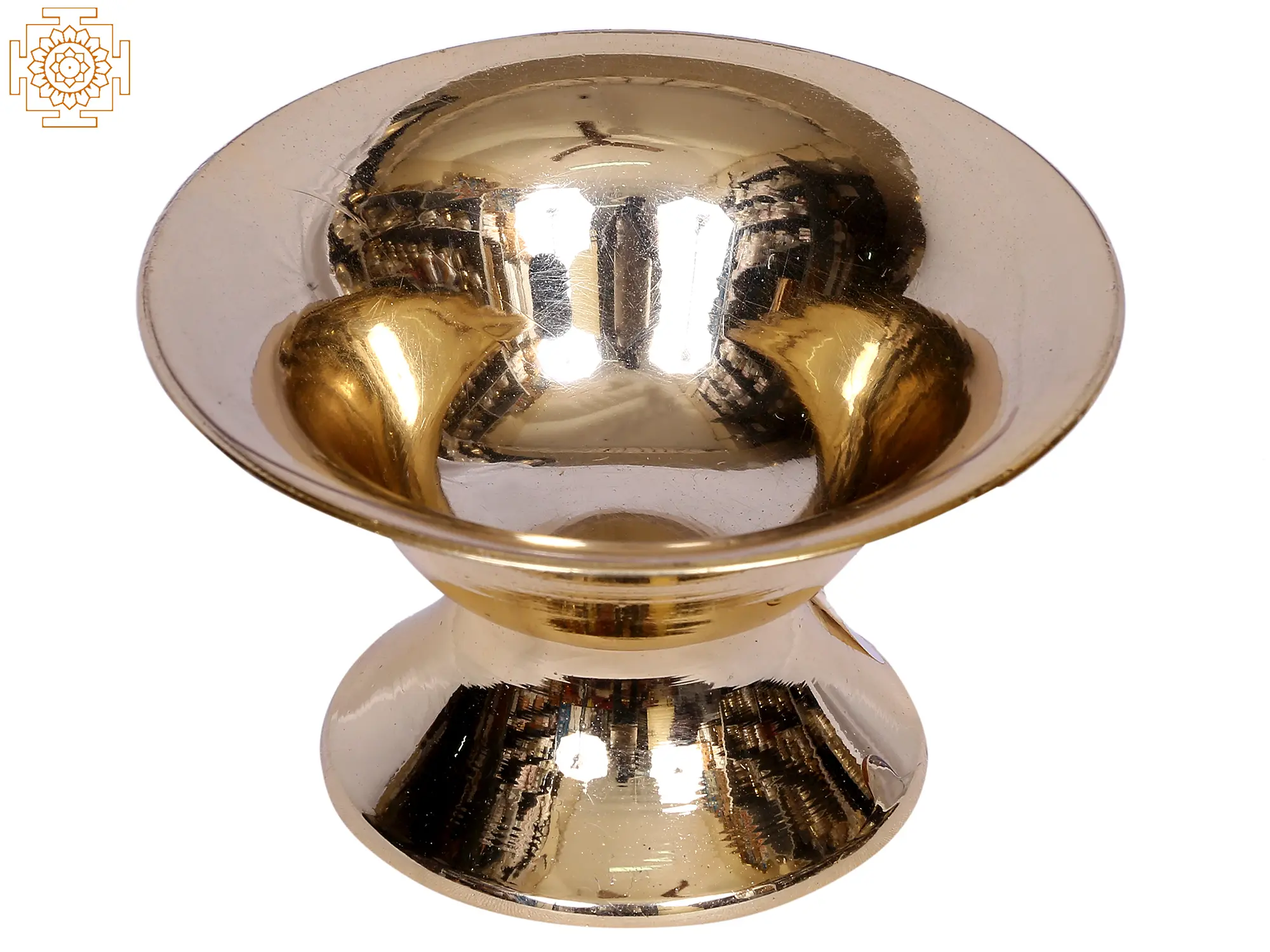 The subtle curves and balanced proportions of this brass vessel highlight the skill of its artisans. The smooth, polished surface is a joy to behold, inviting touch and contemplation. The gentle flare of the rim ensures that offerings are contained securely, while the sturdy, pedestal base provides stability and elevates the vessel, giving it a distinguished presence. This piece is designed to be both functional and aesthetically pleasing, seamlessly integrating into the sacred ambiance of a puja ceremony or personal spiritual practice. Its enduring material ensures that it will be a cherished part of your devotional journey for years to come, gathering resonance and becoming an even more cherished heirloom with each use. It serves as a constant reminder of the sanctity of ritual and the beauty of devotion.