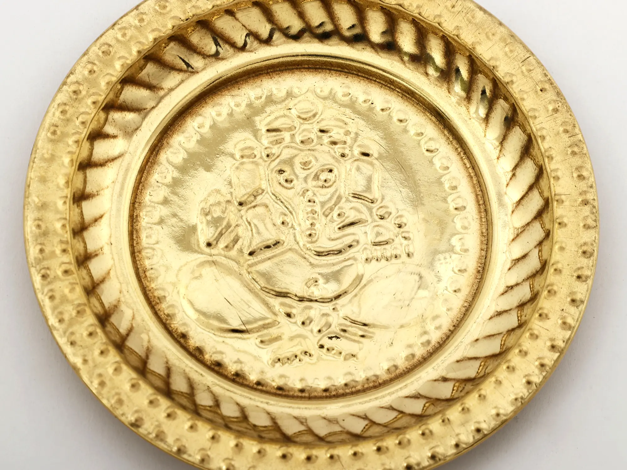 The Small Brass Ganesha Design Plate holds profound significance. It serves as a sacred canvas, bridging the earthly and the divine realms. The presence of Lord Ganesha in its design is a symbol of removing obstacles and bestowing blessings upon your offerings. As you place your prayers and offerings upon this plate, it becomes a conduit for your heartfelt sincerity, connecting you with the divine in a deeply meaningful way.