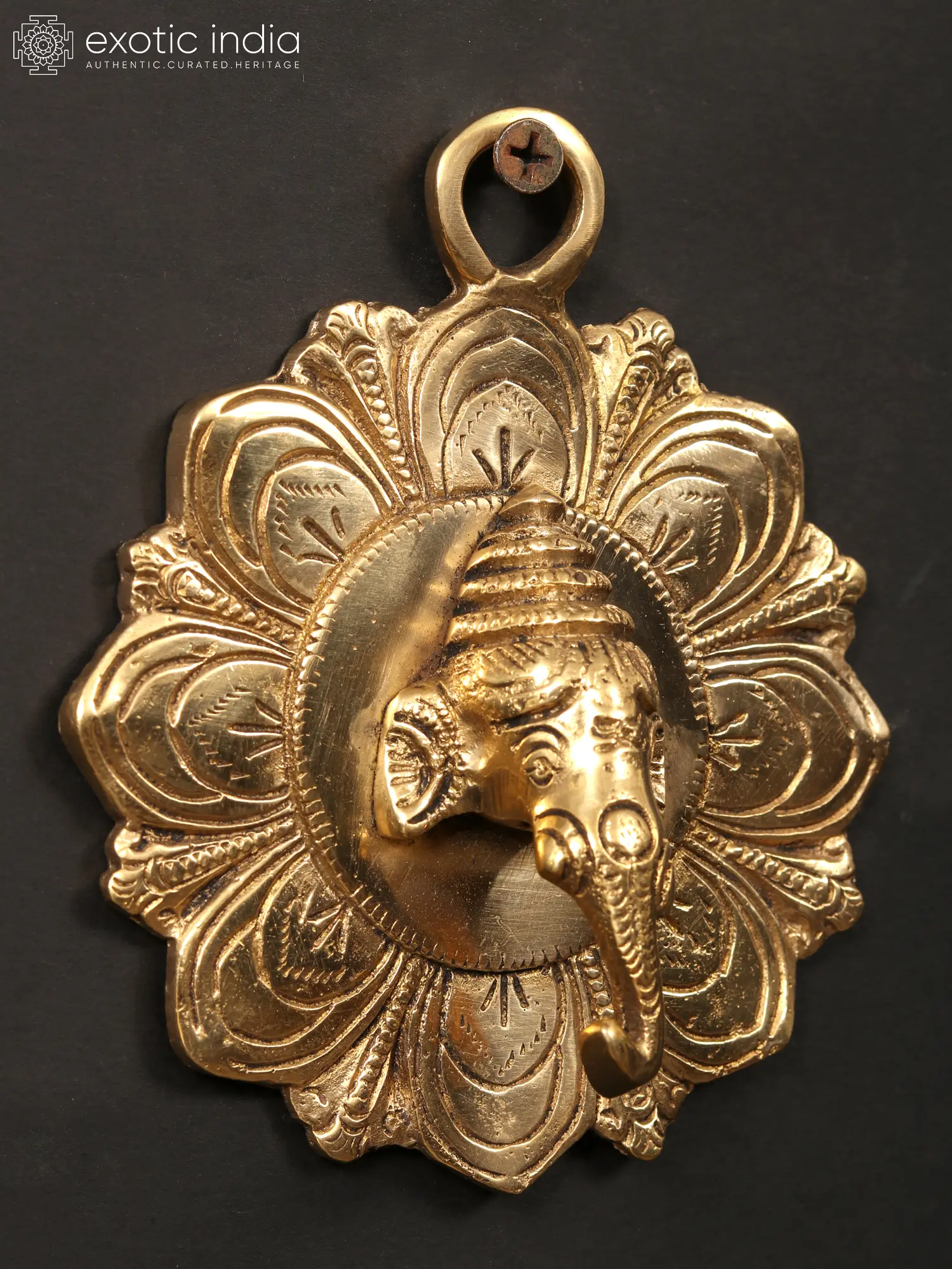 This Small Brass Ganesha Face Wall Hanging ingeniously intertwines the divine image of Lord Ganesha within the delicate petals of a blooming flower, symbolizing his omnipresence in nature's beauty and the blossoming of auspicious beginnings. The radiant shine of the brass piece illuminates the Agnikanta Ganesha, likening his brilliance to the radiant flames of fire, signifying wisdom and enlightenment.