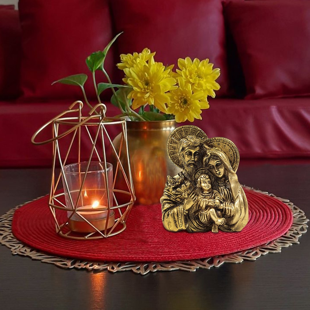 Joseph and Mother Mary cradle “Baby Jesus” with boundless love and devotion. Their faith and strength shine as they protect the infant, destined to bring salvation. Mary’s tender care envelops Jesus, the embodiment of hope, while Joseph, a steadfast guardian, shields them from adversity. This sculpture conveys the message of God’s incarnation in human form, emphasizing the importance of family values, and belief. Their unity, forged by faith and devotion, shines as a beacon of spiritual grace. Crafted in brass with devotion, this mesmerizing artwork reminds you of the enduring power of faith, and love.