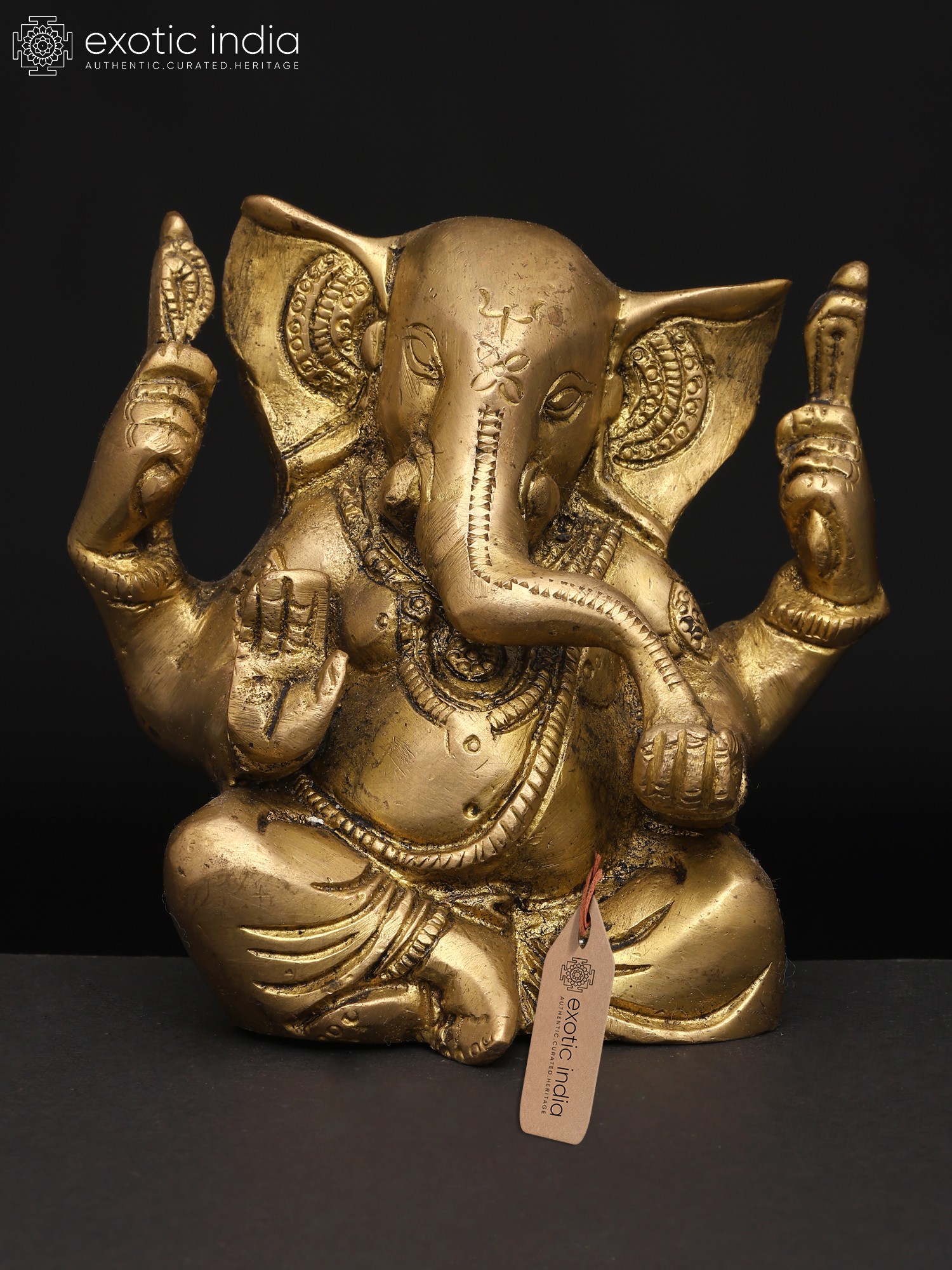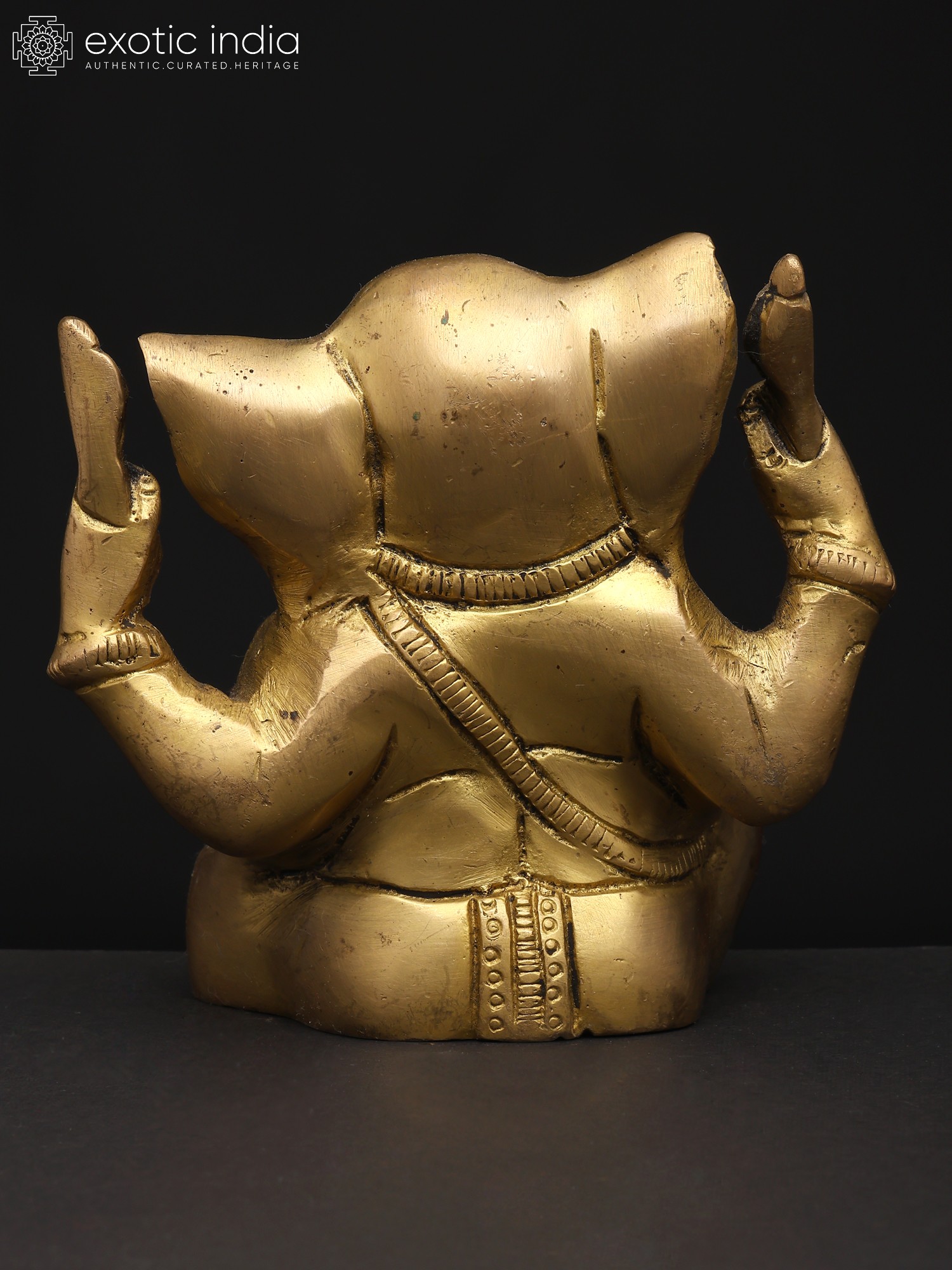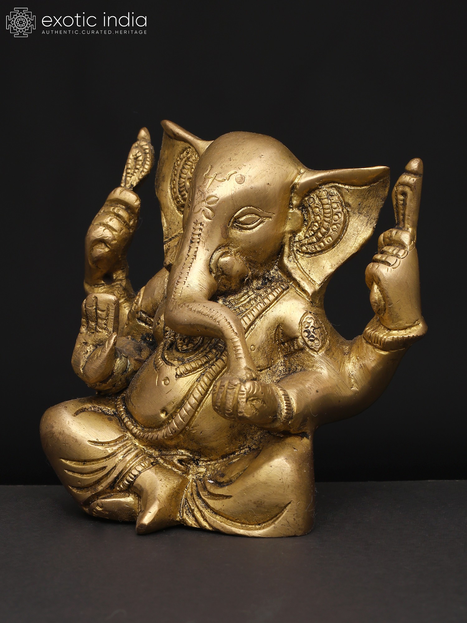 Invite divine blessings and auspiciousness into your life with this exquisite brass idol of Lord Ganesha. Standing at a modest 4 inches, this compact representation of the beloved elephant-headed deity is crafted from high-quality brass, ensuring its enduring beauty and spiritual resonance. The intricate detailing and lustrous finish of the brass capture the divine essence of Ganesha, making this idol a truly captivating piece for your home or sacred space.