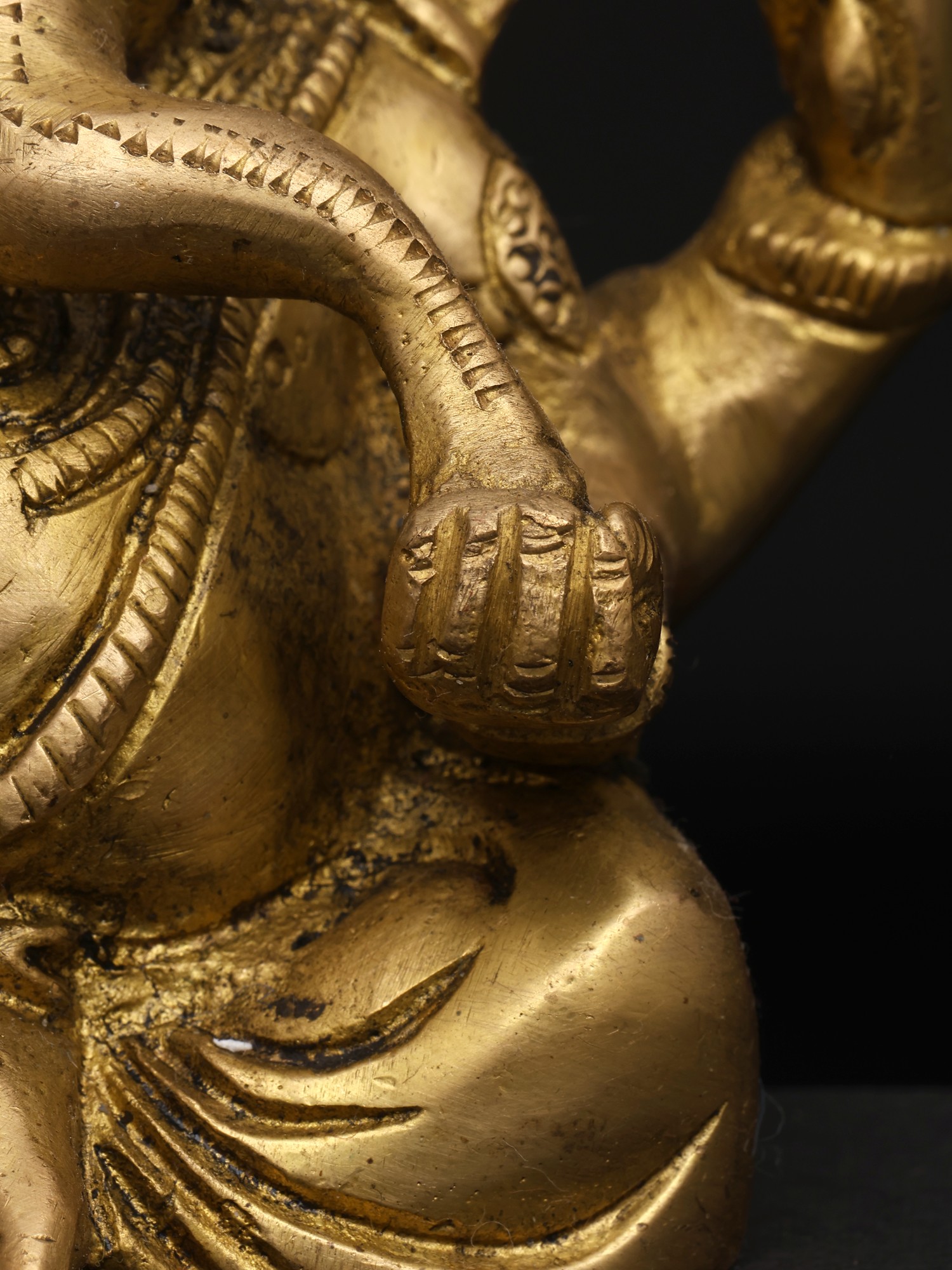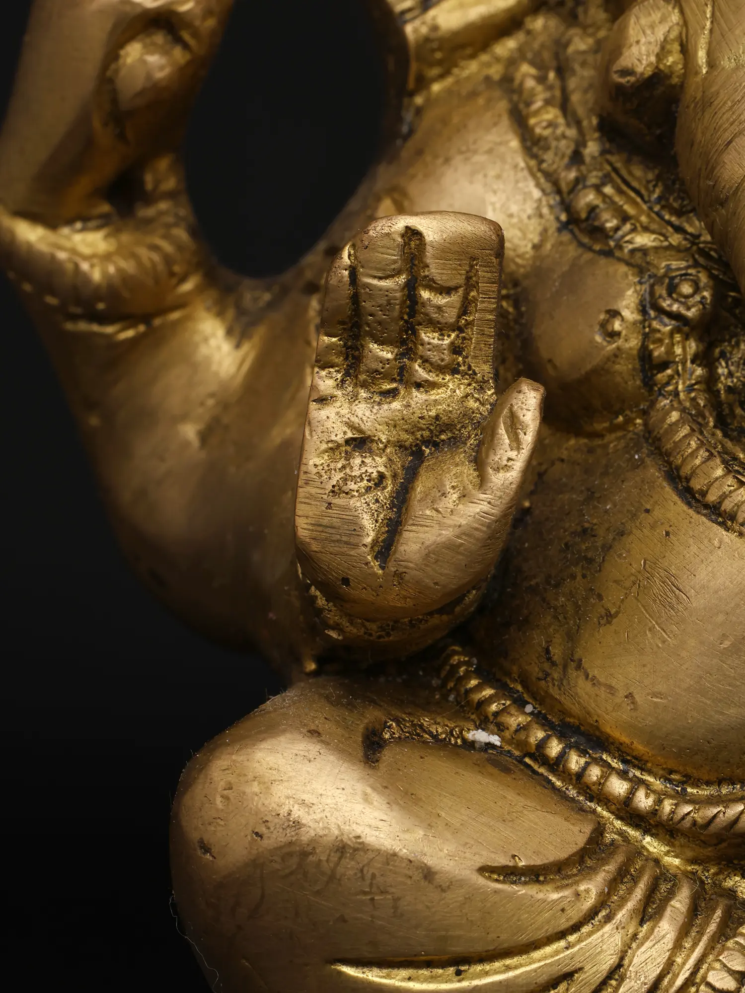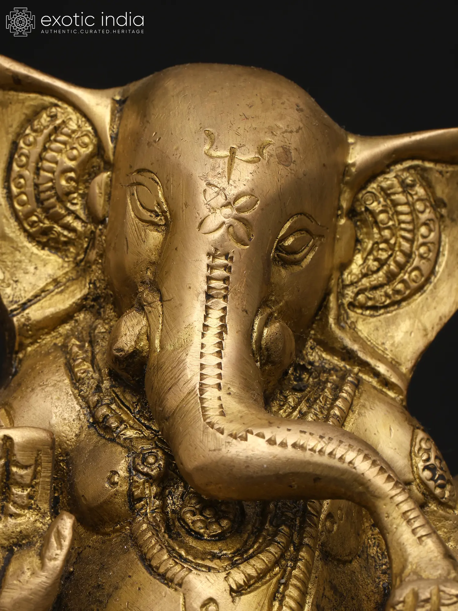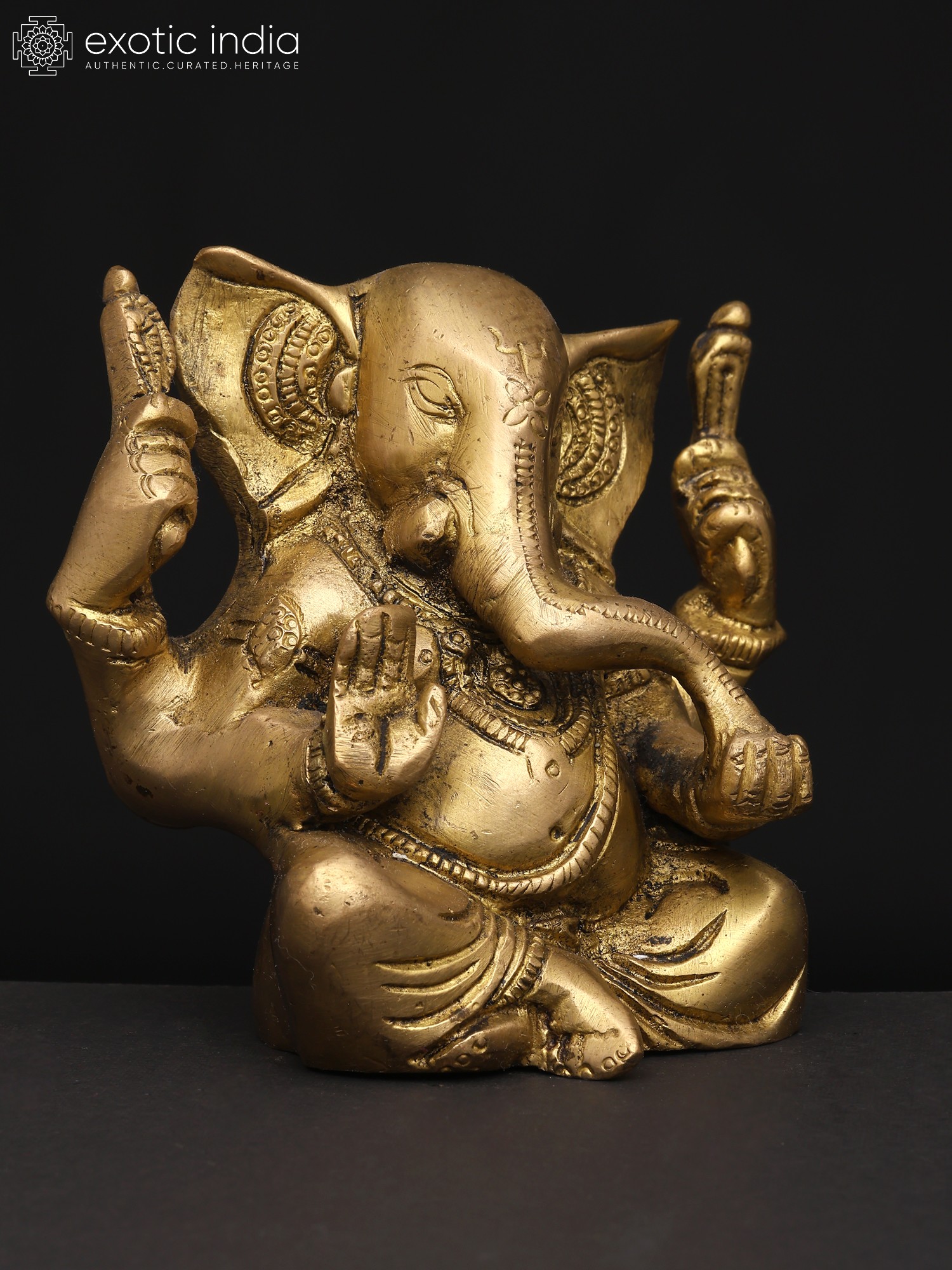 Invite divine blessings and auspiciousness into your life with this exquisite brass idol of Lord Ganesha. Standing at a modest 4 inches, this compact representation of the beloved elephant-headed deity is crafted from high-quality brass, ensuring its enduring beauty and spiritual resonance. The intricate detailing and lustrous finish of the brass capture the divine essence of Ganesha, making this idol a truly captivating piece for your home or sacred space.