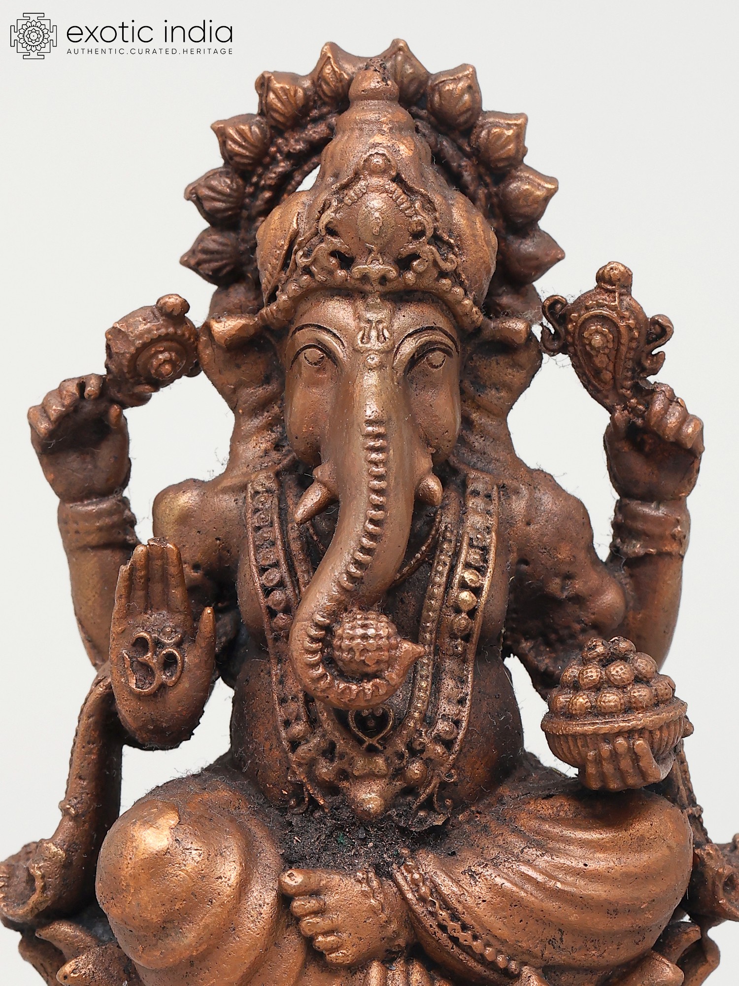 2" Small Chaturbhuja Lord Ganesha | Copper Statue