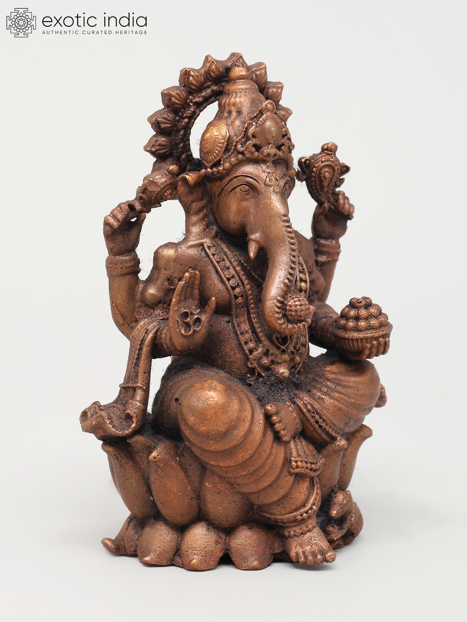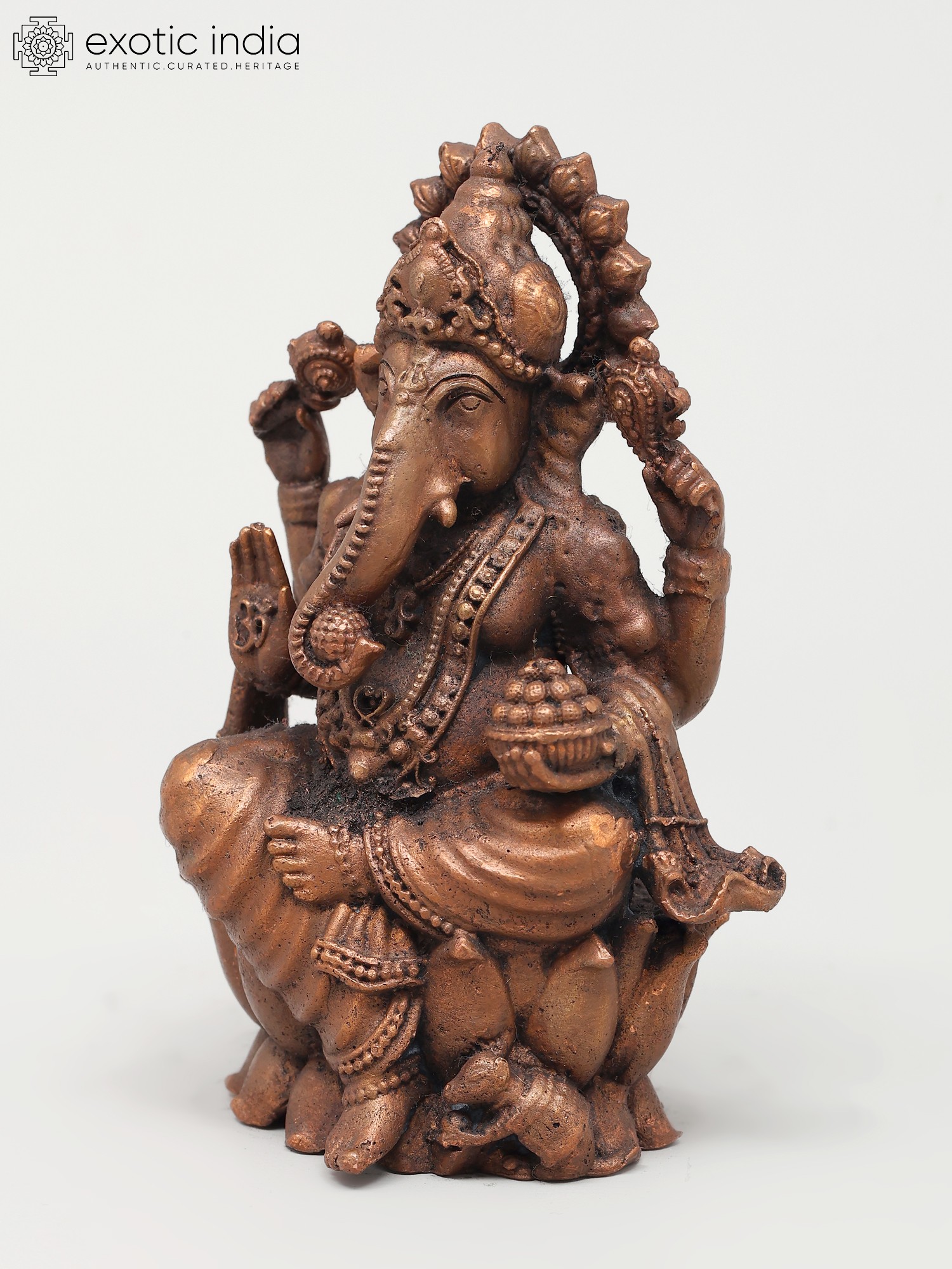 4" Small Sitting Lord Ganapati with Mushak | Copper Statue