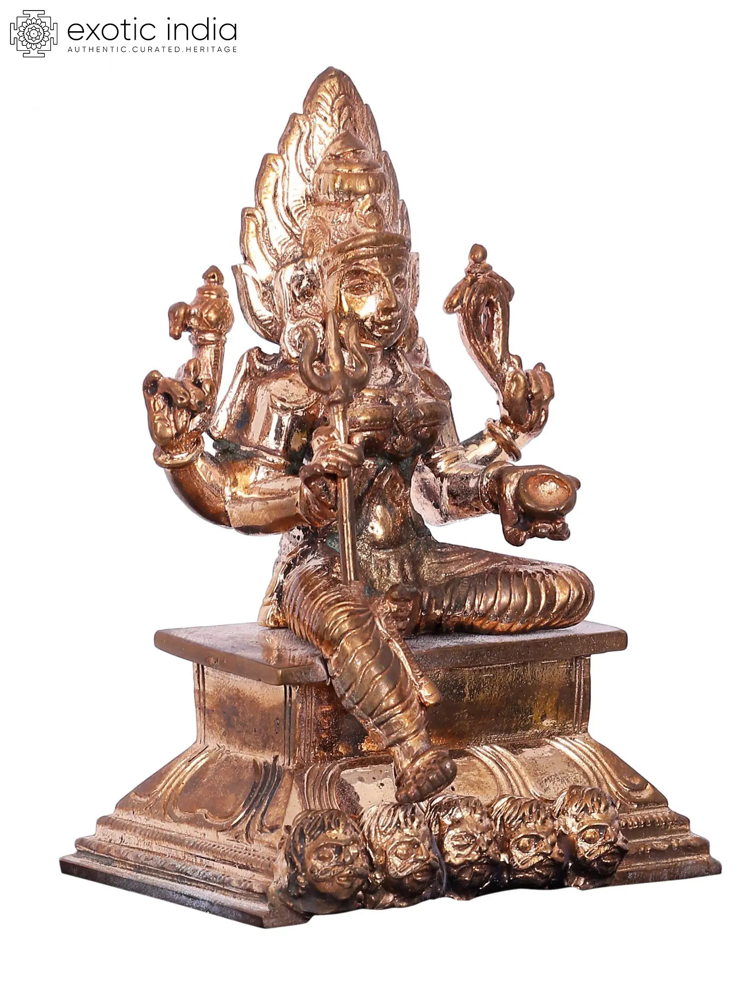 The Small Goddess Mariamman is a powerful Panchaloha bronze sculpture that represents the Hindu goddess of rain and fertility. Mariamman is revered for her ability to bring life-giving rains and prosperity to the land. This sculpture captures her divine essence and protective nature. The sculpture depicts the cyclical nature of life, where destruction is followed by regeneration. Goddess Mariamman's presence inspires us to embrace change and find strength in times of adversity. She symbolizes the promise of new beginnings and the transformative power of resilience and hope.