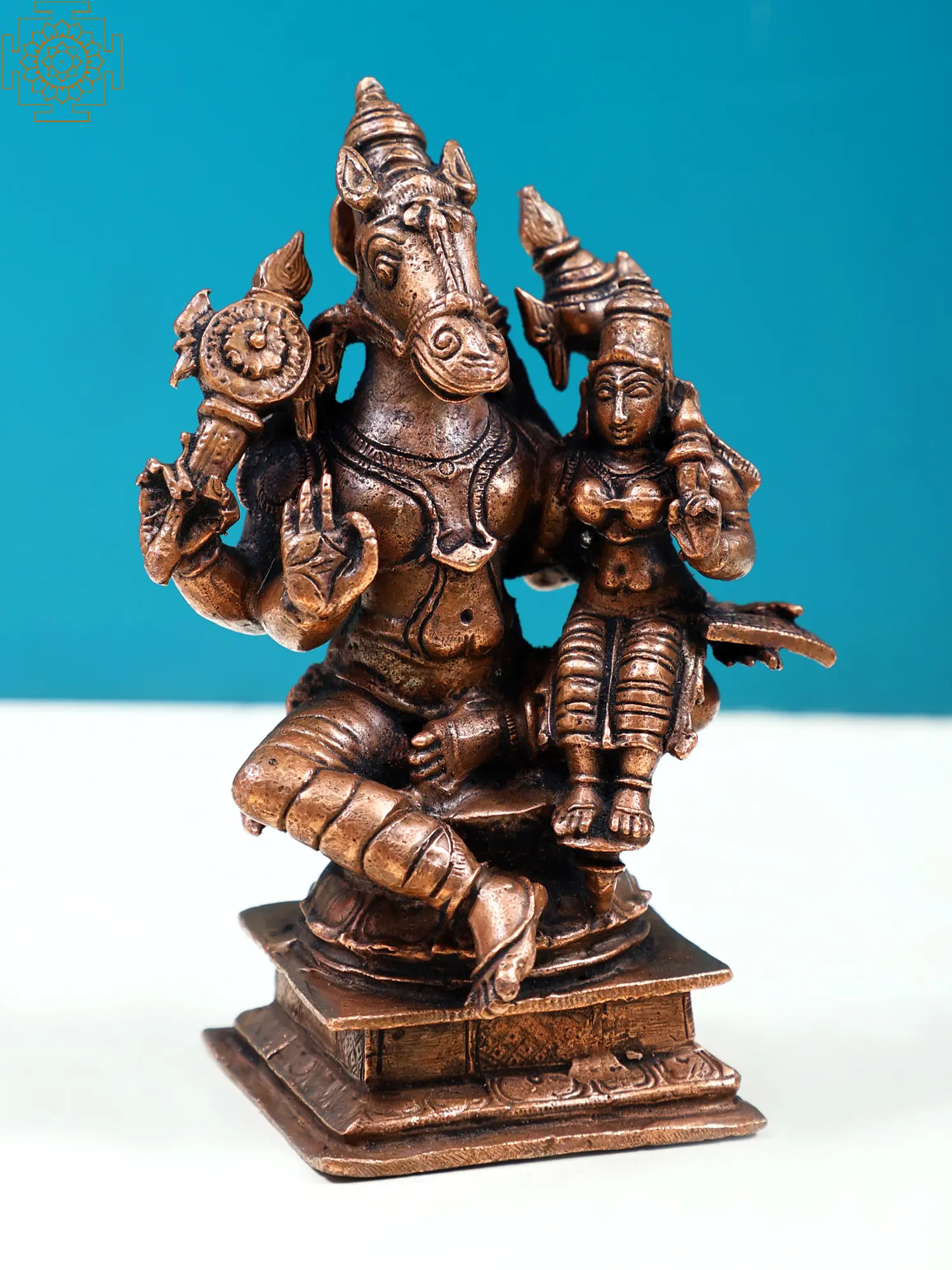 3" Small Lord Hayagriva Bronze Statue with Devi Lakshmi