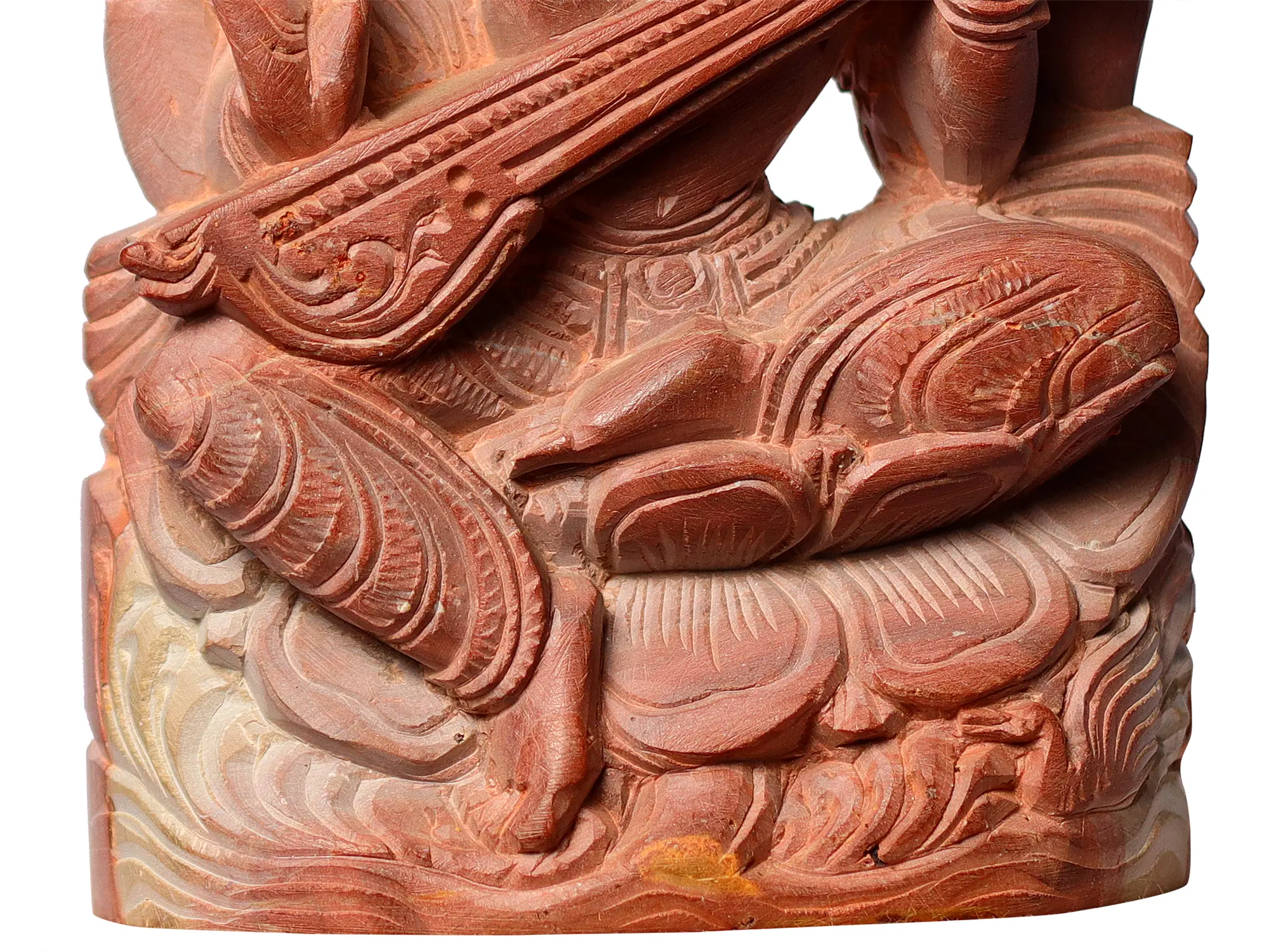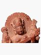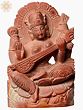 8" Goddess Saraswati Holding Veena | Red Stone Statue | Hand Carved