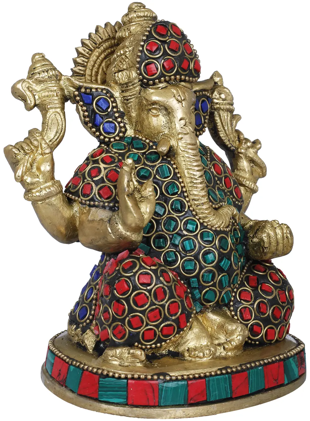 Lord Ganesha, also known as “Ganpati”, and “Vinayaka”, embodies wisdom, auspiciousness, and benevolence. With his right raised in “Abhaya Mudra”, Ganesha emanates reassurance and protection. With his benevolent presence, Ganesha holds a goad and noose, symbolising his authority over desires and challenges. His endearing, large trunk signifies adaptability and wisdom, while his ample belly embodies cosmic abundance. As the remover of obstacles, he guides devotees towards success and inner growth. Intricately crafted using a meticulous inlay technique, this sacred brass artwork is a source of inspiration and blessings.