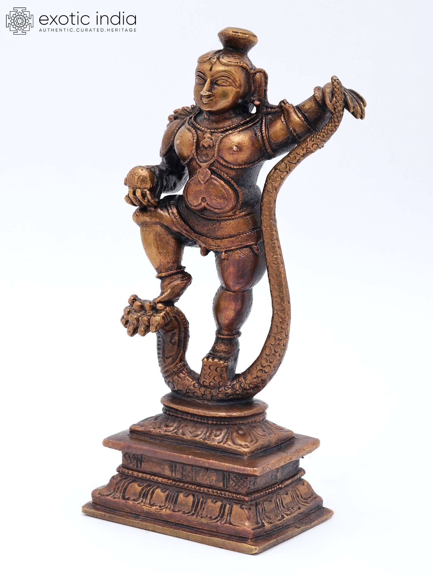 4" Small Kaliya Mardan Krishna | Copper Statue