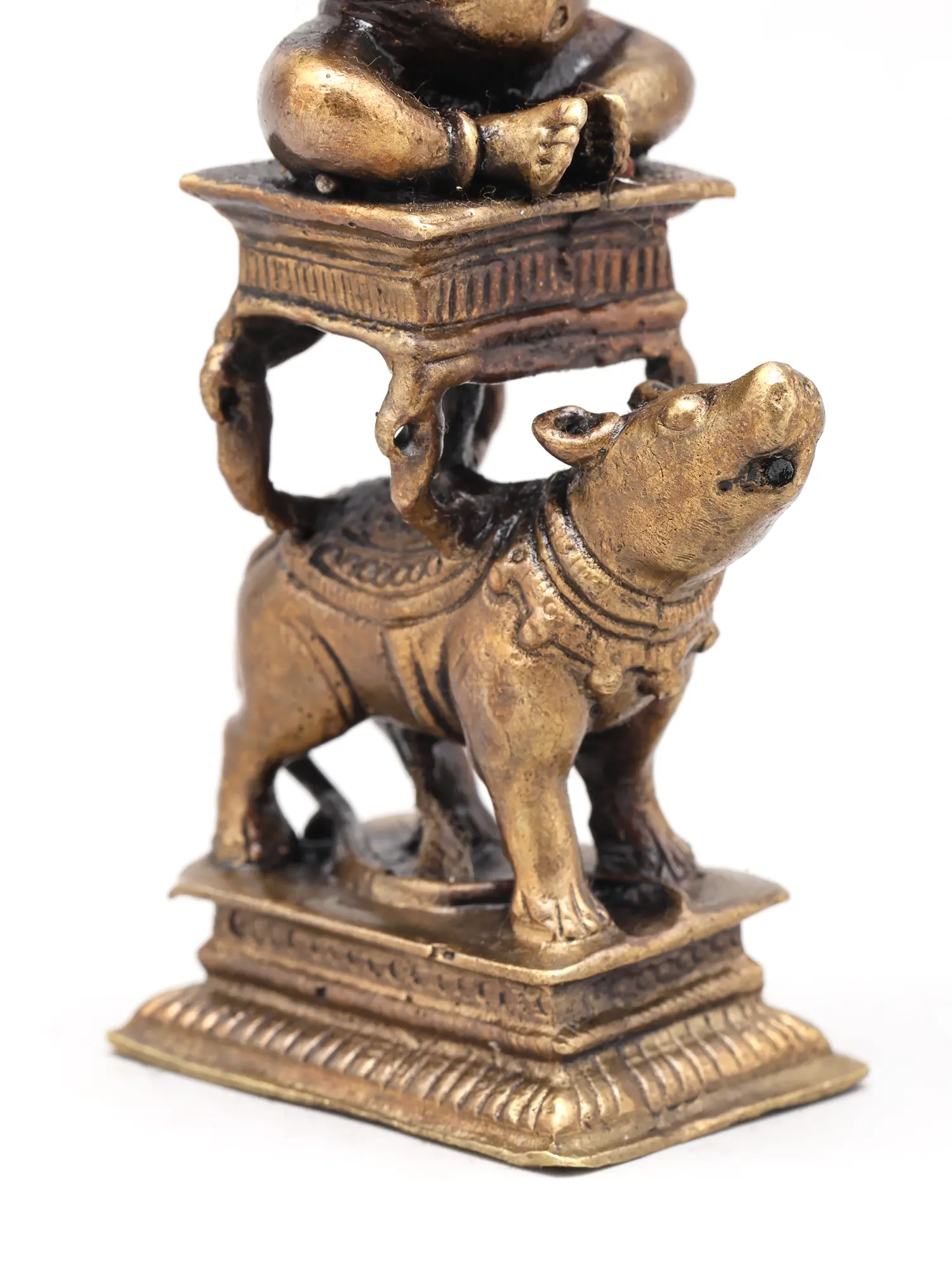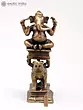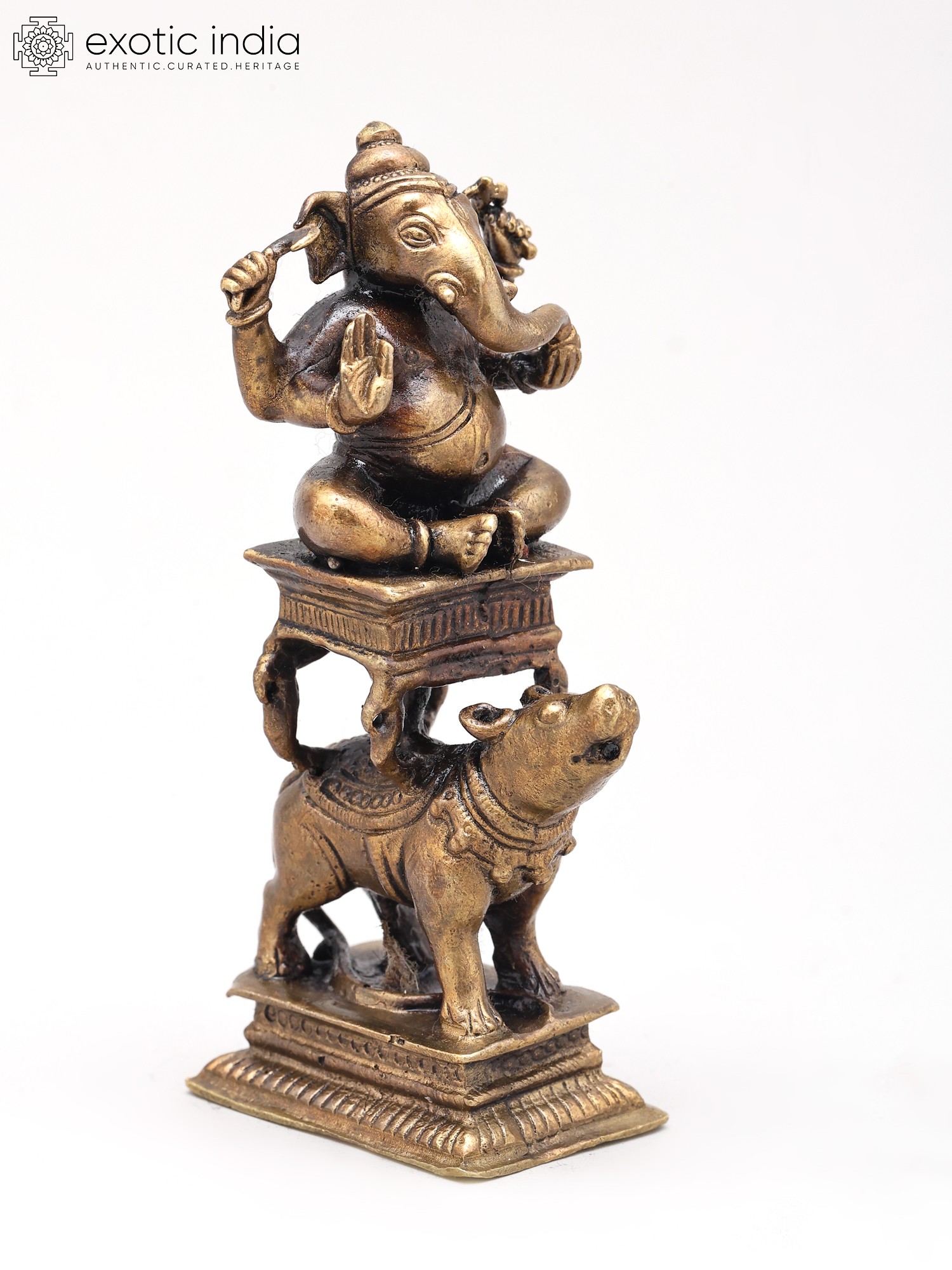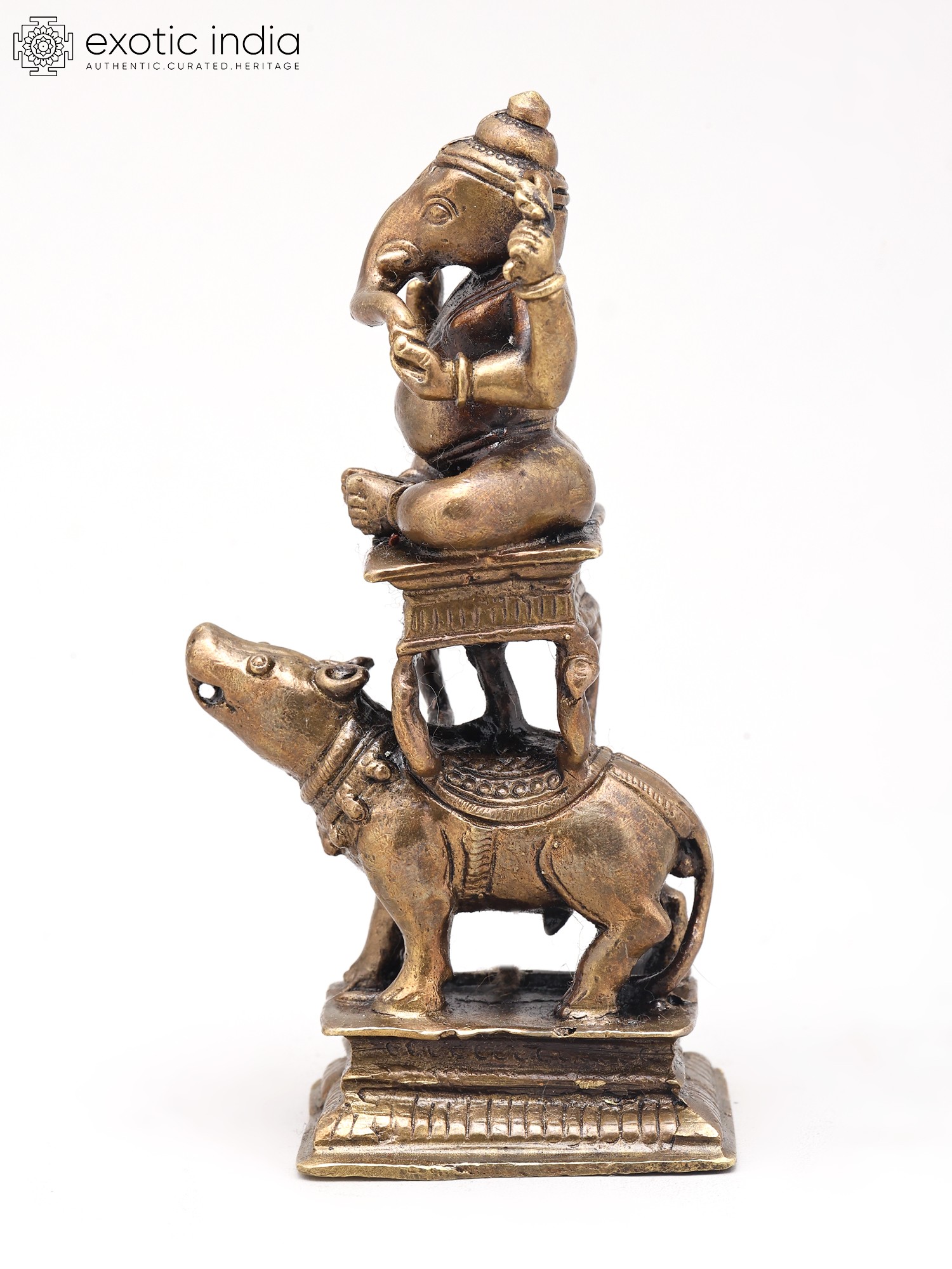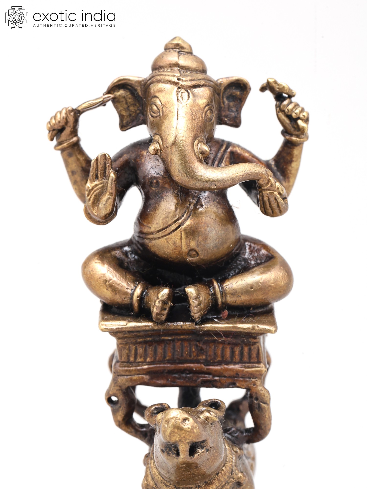 2" Small Lord Ganapati Seated on Lotus with Mushak Vahana | Copper Statue | Made in India