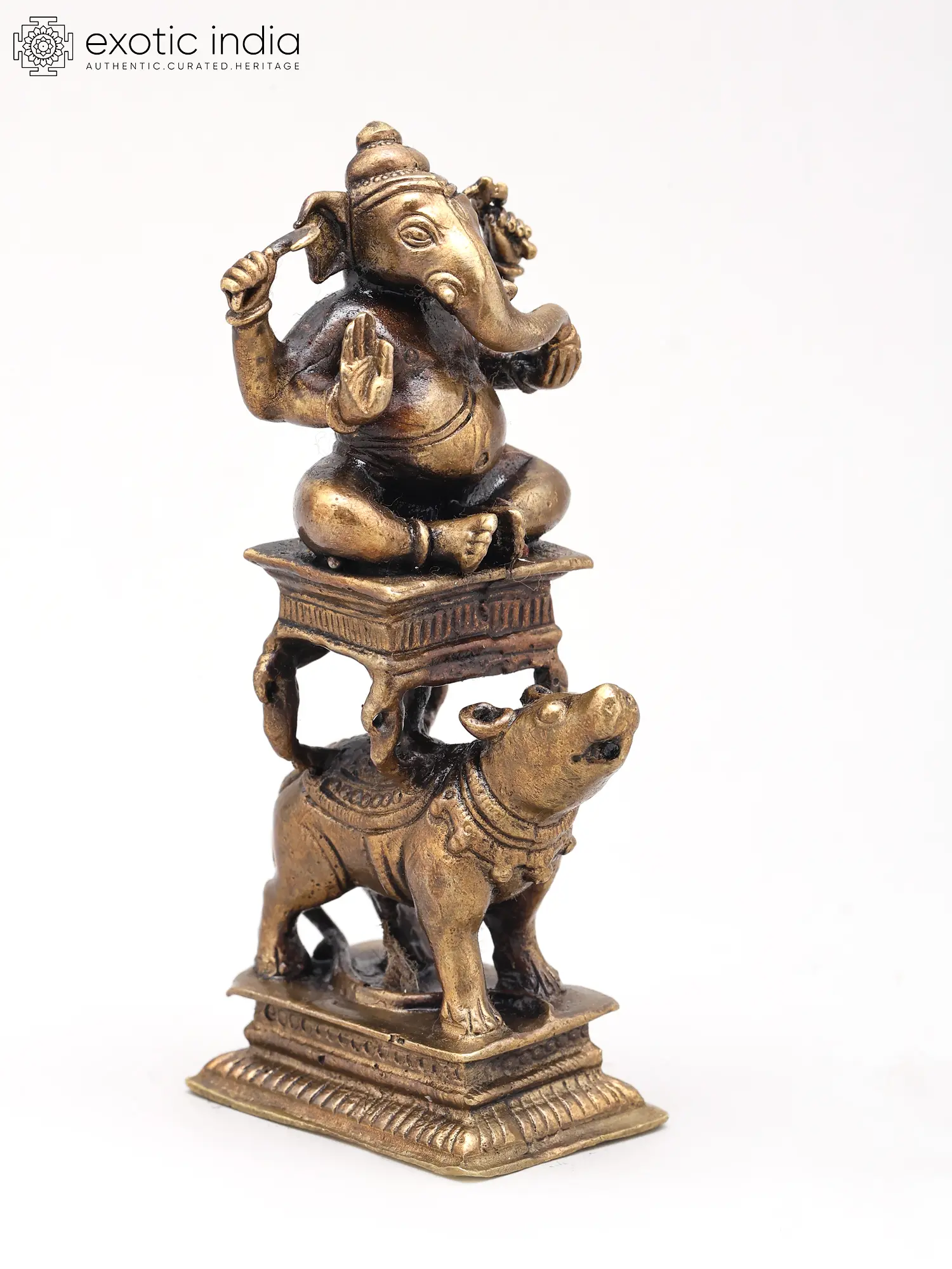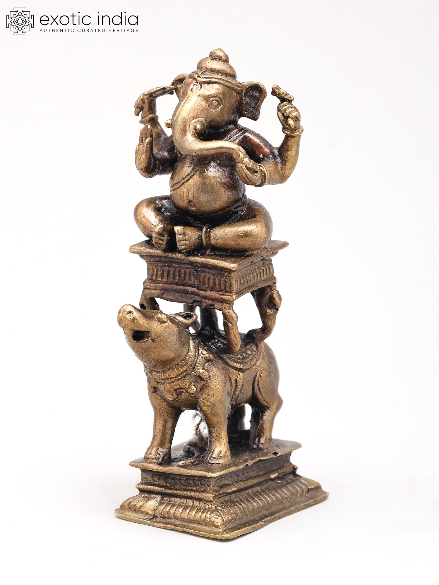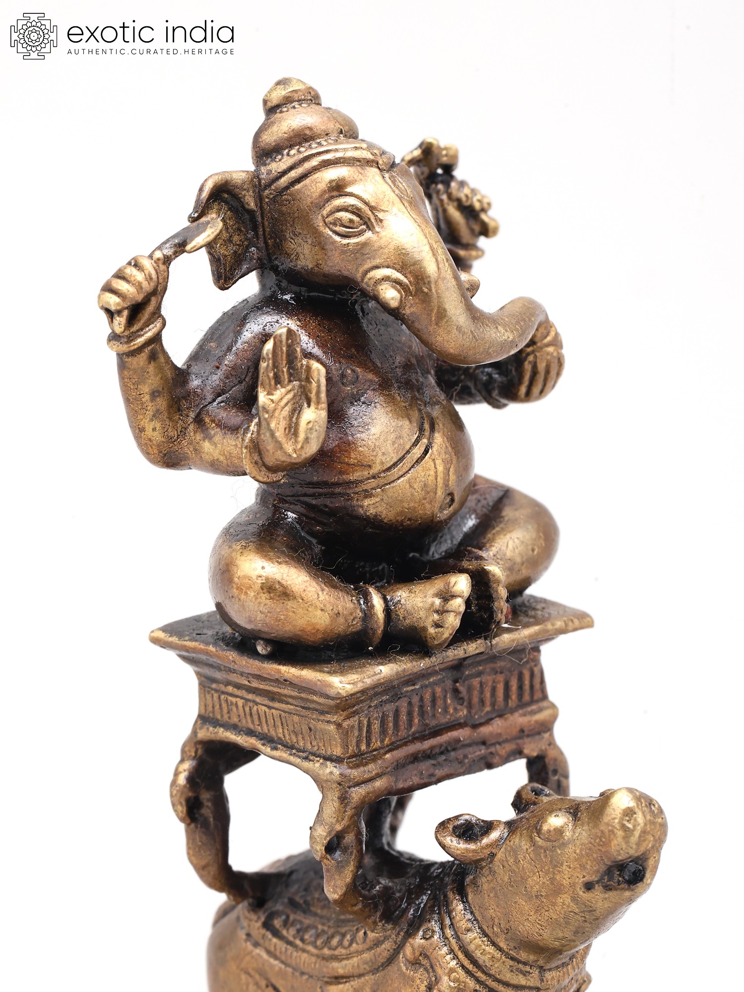 4" Small Sitting Lord Ganapati with Mushak | Copper Statue